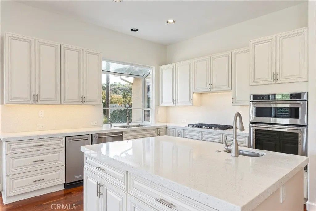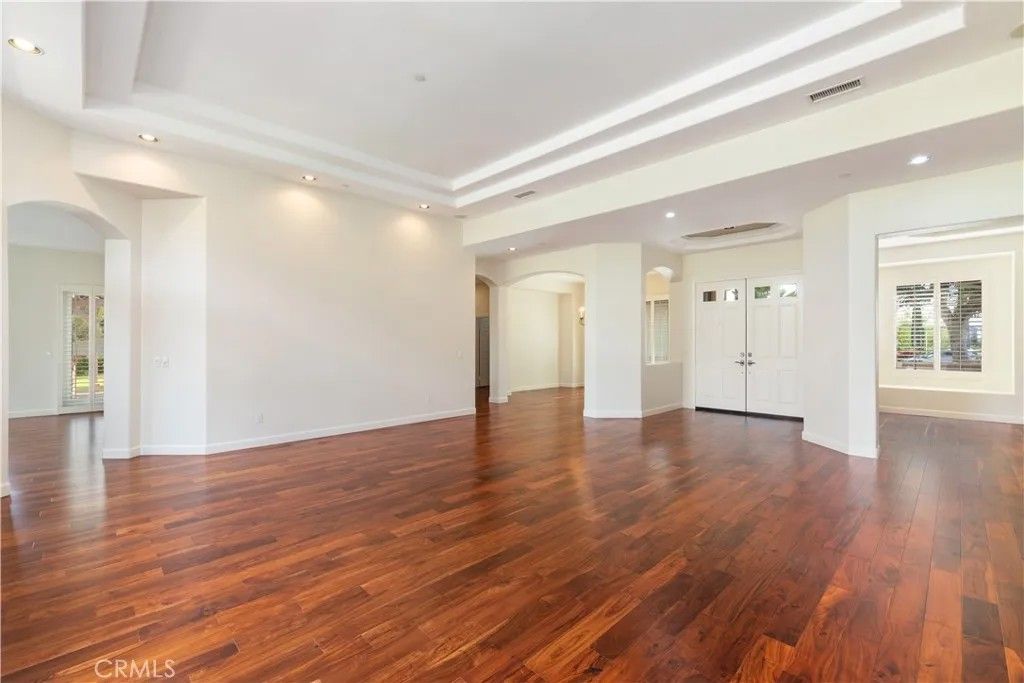 Check out this sprawling single level on over one-half of an acre in Sycamore Ranch, a community set around The Golf Club of California golf course. The Community of Sycamore Ranch has low turnover, large single stories on private, large lots. There is no HOA or Mello Roos This home features timeless, high-end finishes such as engineered hardwood, a gorgeous remodeled kitchen with light colored shaker cabinets, quartz countertops, pot drawers, a vegetable sink in the island and KitchenAide appliances. The flowing floor plan offers a formal living room with huge windows showcasing the back of the property and the views. The separate family room with fireplace offers two different sliding glass doors to two separate patios. One patio at the back has a gas fire pit to sit around on chilly nights. The large side patio provides a built-in-grill and mini-refrigerator, fireplace and bar for seating. There is also a putting green just off the patio. The primary suite with fireplace has direct sliding door access to the back patio, two walk-in closets, a custom tile-shower, and large makeup vanity between the separate vanities with sinks. Two secondary bedrooms are separated from both the primary and each other. Every bedroom offers privacy and the secondary bedrooms are well-located with a bathroom next to each. The laundry room with cabinets has both gas or electric hookups to the dryer. The three car garage with epoxy flooring has storage cabinets for all your seasonal decor, outdoor supplies and tools. The wide lot and big side yards offer distance between immediate neighbors and plenty of room for a pool and spa. One of the most convenient locations in Fallbrook with easy access to the 76 so you can head to the beach, the freeways, casinos, shopping without having to take time to get through town. Solar is owned so it will be a no-hassle transfer. One of the few homes with fire sprinklers which can benefit with homeowner's insurance. Call today for private tour.