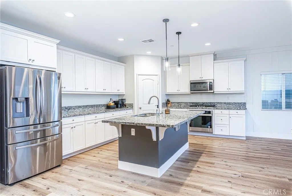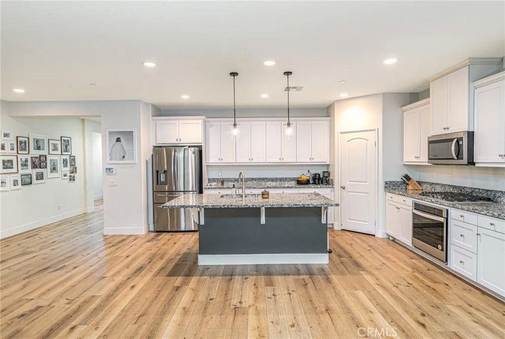 Check out this beautiful and spacious single story gem located in Menifee's most desirable master planned community...Audie Murphy Ranch. Located on a quiet cul-de-sac, you'll enter your new home via a covered front patio into a lovely large foyer entry. Inside you'll be taken in by the extra high ceilings, gorgeous luxury laminate plank flooring, upgraded millwork and contemporary fixtures throughout. To the right of the foyer you'll find a hallway leading to the 3 secondary bedrooms, that are spacious and offer plenty of room for all your people, or stuff. To the left of the entry is a 4th mini-primary suite with its own private en-suite bathroom. An additional large bathroom is located in the hall. Continue through the entry you'll enter the massive kitchen/great room/dining area which is the showcase of the large, open concept, floor plan. The gourmet kitchen features lovely white cabinetry, slab granite countertops, loads and loads of counter space and storage along with high quality stainless steel appliances. The kitchen opens up into the rest of this wide open space with custom accent wall in the dining area and is ideal for entertaining with plenty of room for your furniture. Adjacent to the great room you'll find access to the master suite which features an attached en-suite bathroom with large shower, tub and loads of closet space. The current owner installed a large concrete patio area in a backyard wrapped in high-end vinyl fencing. Audie Murphy Ranch offer pools, spa, sports courts, hiking and biking trails, club house, meeting and banquet rooms, skate park, tennis, bocce ball and basketball. The community is home to the award winning Taawila Elementary School. Located just minutes from Temecula Wine Country, the desert, mountain resorts and only one hour to LA and San Diego, this community is located right in the heart of Southern California. Hurry, you'll not want to miss this opportunity!