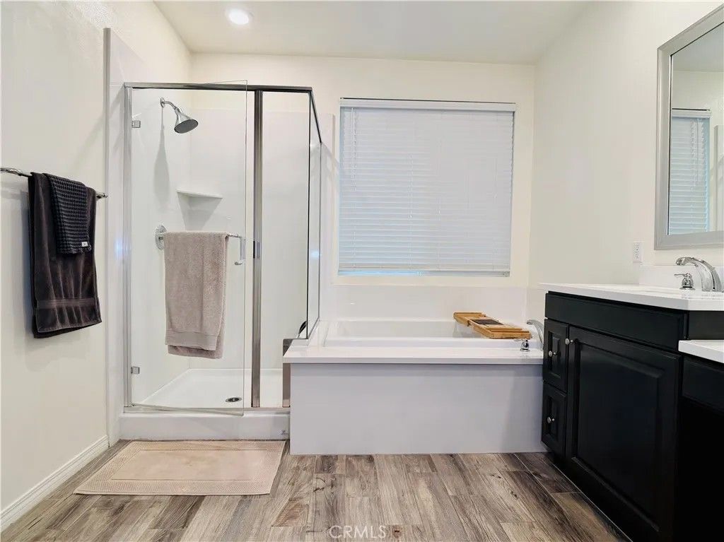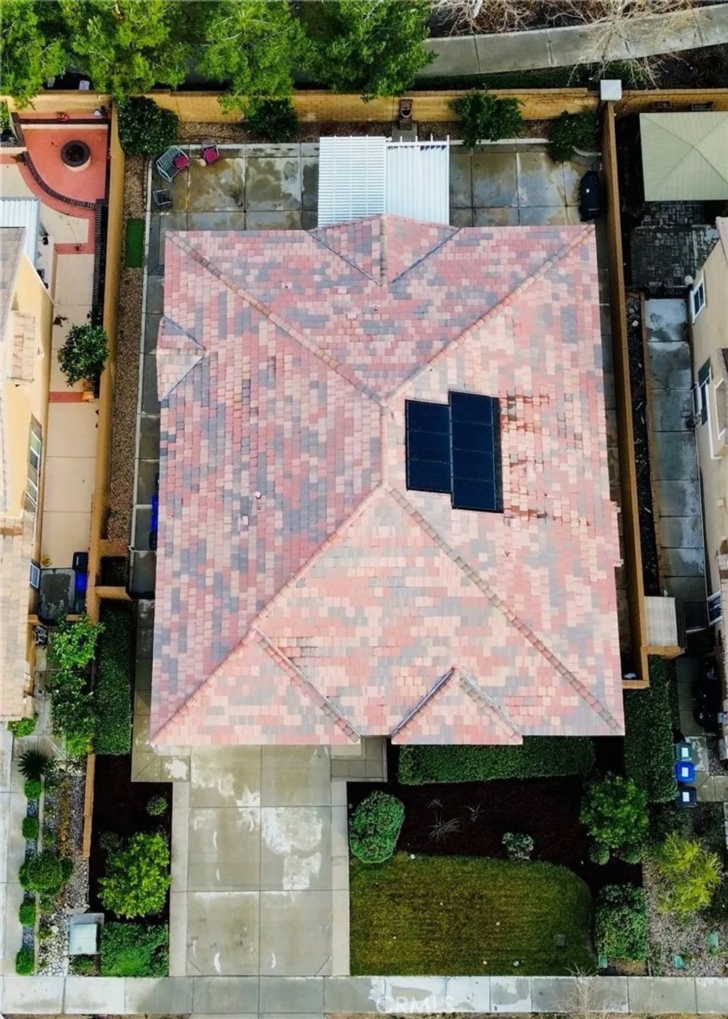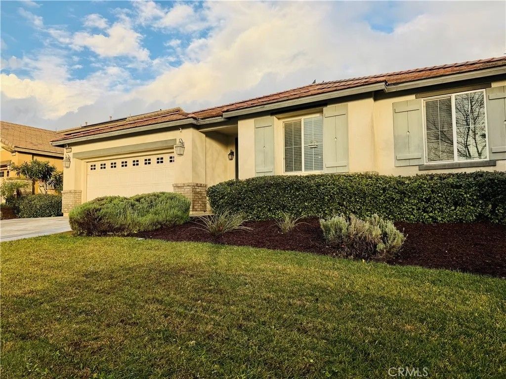 STUNNING single-story in the private, gated neighborhood of Shady Trails. Generous floor plan with the primary bedroom nestled in the back of the home and the three secondary bedrooms located off a different wing. Huge chef's kitchen open to the dining and family room. High ceilings and ceramic tile throughout. Hardscaping throughout the backyard, with an Alumawood patio cover, makes the yard VERY low-maintenance. Producing fruit trees and a working fountain provide shade and ambiance in the backyard. The fully finished garage with rack systems, sink, and epoxy floor is a dream. A tankless hot water heater, solar panels (leased), and a smart thermostat are all on site and provide tremendous efficiency. Shady Trails is part of a fantastic master-planned community with the following features, among others: multiple pools/spas, fitness center, game rooms, business center, events, rentals, sports, and security. This home has been lovingly cared for and maintained. Hurry before it's gone!