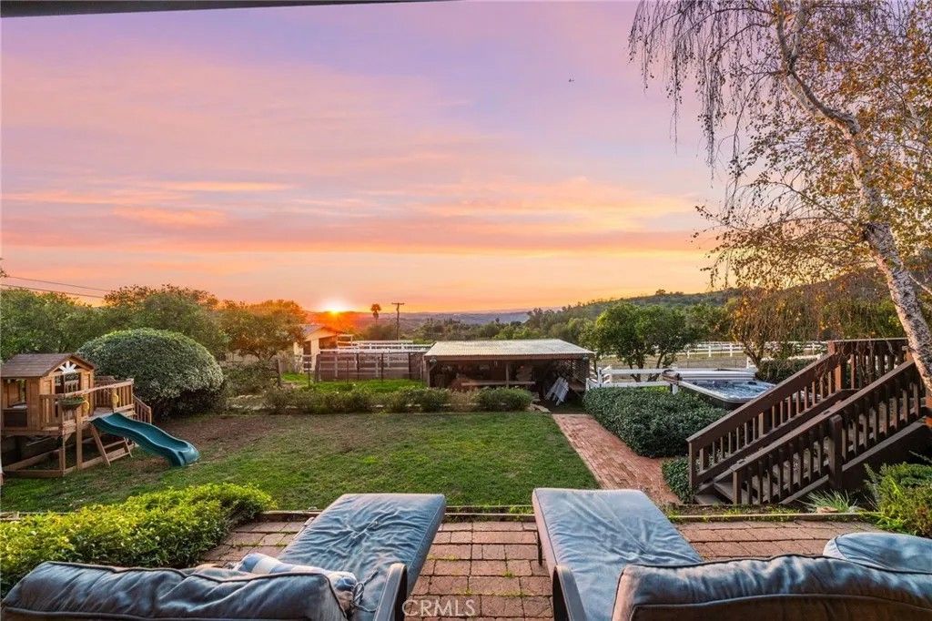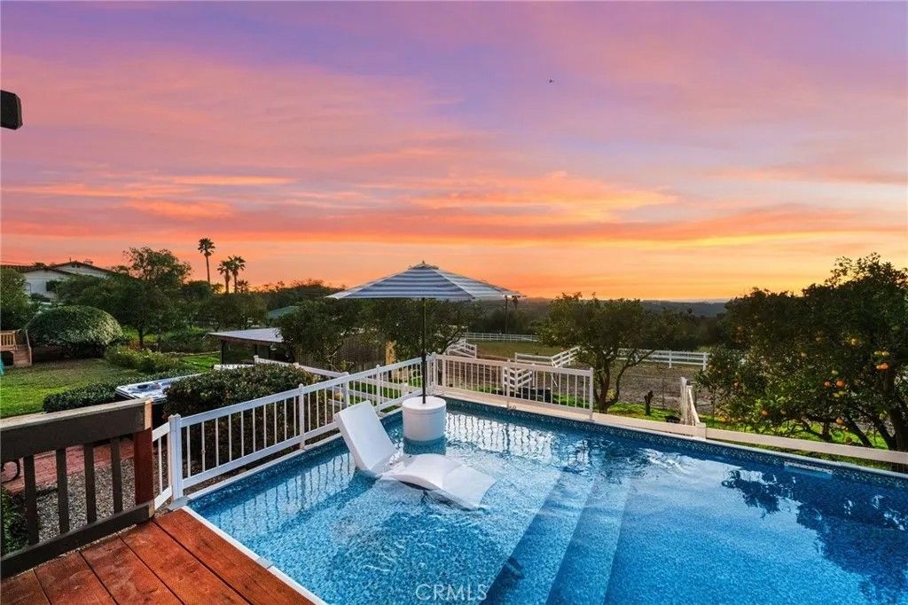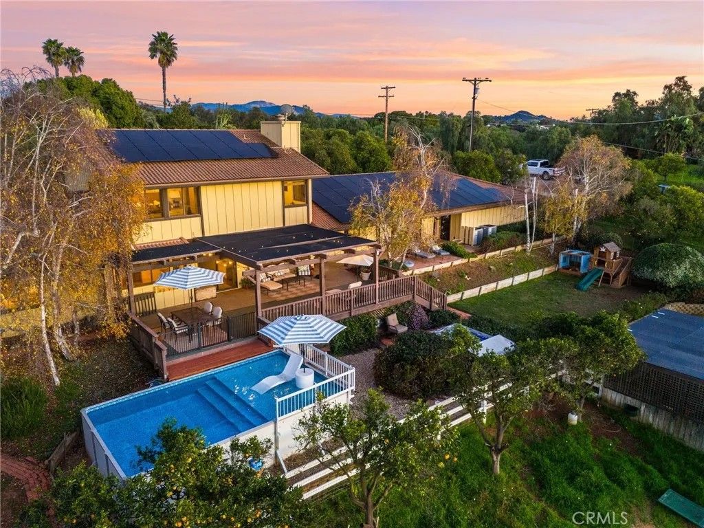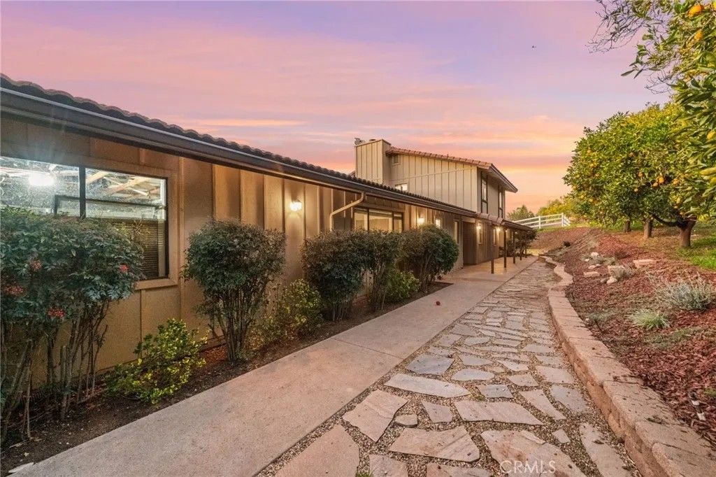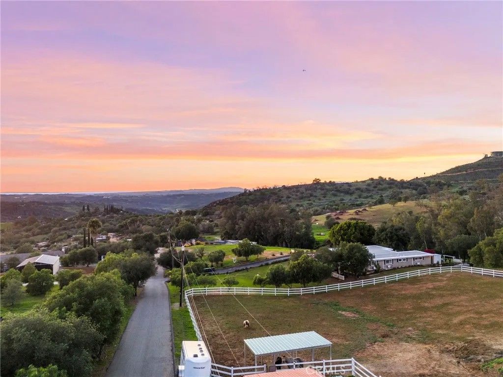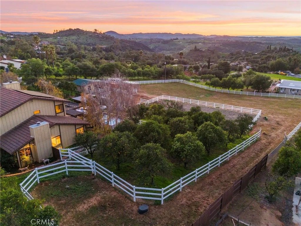 Welcome to this beautifully upgraded 5-bedroom, 4-bath home set on 2.64 acres in the highly sought-after community of Valley Center, California. Offering the perfect blend of modern finishes and country-style privacy, this property is ideal for those seeking space, comfort, and lifestyle freedomcomplete with no HOA, low taxes, fully paid-off solar, and two Tesla batteries that provide backup power during outages to keep the home running seamlessly. The manicured orange orchard and welcoming faade set the tone from the moment you arrive. Inside, a spacious front room provides the perfect setting for entertaining family and friends. The open, thoughtfully designed floor plan flows seamlessly, creating an inviting atmosphere for gatherings both indoors and out. The kitchen features warm honey-maple cabinetry paired with granite countertops and ample storage, while the adjacent formal dining area is generously sizedperfect for hosting memorable dinners and celebrations. The main residence offers four well-appointed bedrooms, each providing comfort and space. The first floor includes a bedroom and full bathroom with a shower, ideal for guests, multi-generational living, or a private suite. The primary retreat serves as a true sanctuary, complete with a luxurious en-suite bathroom designed for relaxation. Adding exceptional versatility, the property includes an attached guest house with one bedroom and one bathroomperfect for extended family, visiting guests, or added flexibility. Step outside to an expansive backyard that will impress any equestrian enthusiast, featuring a horse arena with built-in drainage, a fully maintained barn, and Buckley fencing designed specifically for horses. Beyond its equestrian appeal, the outdoor space also serves as a private oasisideal for family barbecues, outdoor games, or simply enjoying the Southern California sunshine in your pool. Multiple access points provide easy road access and convenient connectivity to nearby horse trails. With its strong sense of community, well-kept surroundings, and meticulously considered details, this property seamlessly blends comfort, functionality, and the joys of both family living and an equestrian lifestyle. Dont miss this extraordinary opportunityschedule your private showing today.