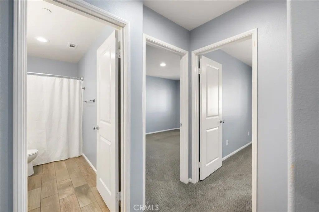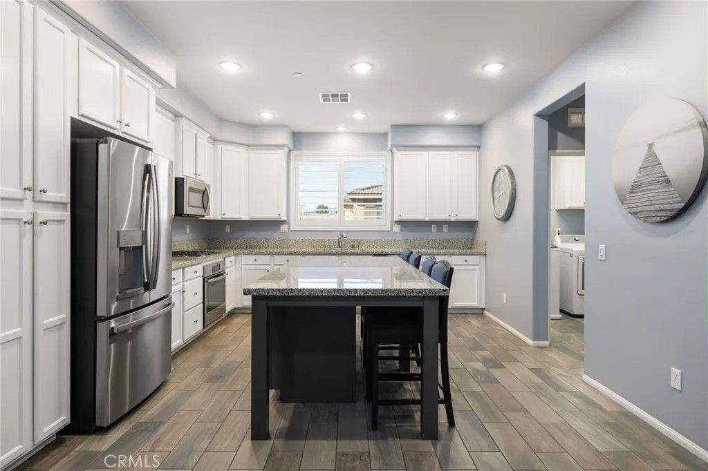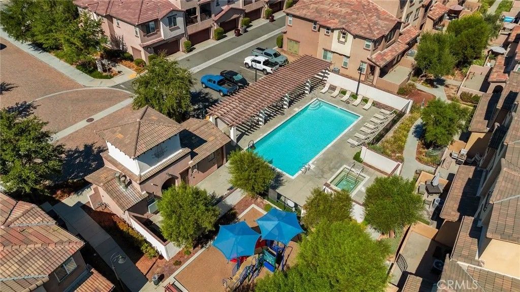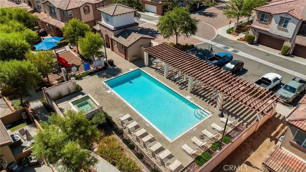 This amazing tri-level condo is a rare find and offers 4 bedrooms, 4 baths and a 3-car tandem garage! The Ridge at Cal Oaks condominium complex is highly sought after and located in the heart of Murrieta within walking distance to the Reading Cinemas Movie theatre, the infamous dog park and minutes to the historic downtown Murrieta main street. The 2200 sqft home greets you with a courtyard perfect for BBQing and entertaining which leads the way to the first floor. The main entrance is on the bottom floor and once inside you are greeted by tile floors, recessed lighting, custom paint and a main floor bedroom and bath featuring less than a year-old upgraded carpet, plantation shutters, a walk-in closet and the attached bath boasting a walk-in shower. The main floor also offers a loft area that would be perfect for an office or built-in storage, with access to the 3-car tandem garage boasting epoxy floors, EV charging capability and storage. The second floor, the main living area, greets you with tall ceilings, recessed lighting, custom paint, tile floors and an open concept floor plan. The large Great Room boasts an industrial ceiling fan, large windows allowing tons of natural light, an outdoor balcony with screen for breezy days and is open to the chefs kitchen. The kitchen is upgraded with granite counters, stainless steel appliances, an eat-up island and white cabinets. Also on this floor is a powder bath and laundry room. The 3rd story offers tons of storage and two secondary bedrooms and the primary suite. One of the two secondary bedrooms features a walk-in closet, and both rooms share the secondary bath featuring a dual vanity and shower tub combo. The primary bedroom boasts a large walk-in closet, and attached bath featuring tile floors, dual vanity, soaking tub and standing shower. The home also features an in-wall pest control service. The community offers a pool, spa, BBQ area, and tot lot, which are all located just steps from this unit. This location is centrally located in Murrieta and part of the Murrieta USD with easy access to the 15 freeway, tons of shopping and entertainment, including the Temecula wineries which are 15 minutes away, 45 minutes to San Diego and just an hour to the closet beaches. This is a home you don't want to miss!