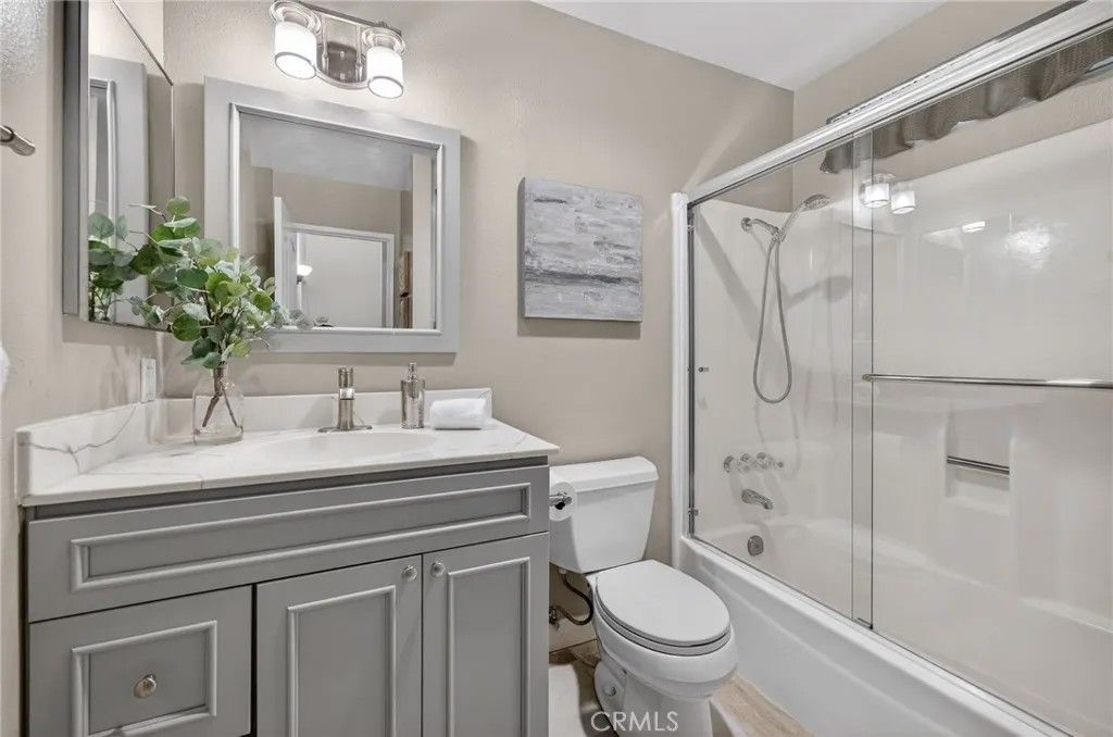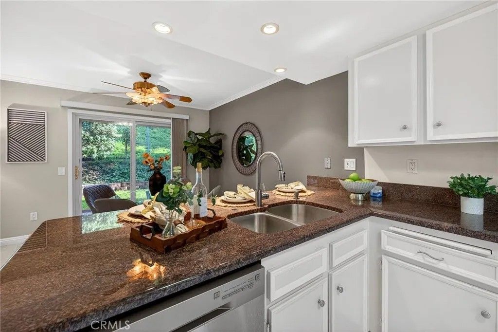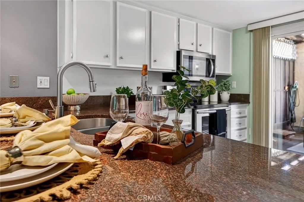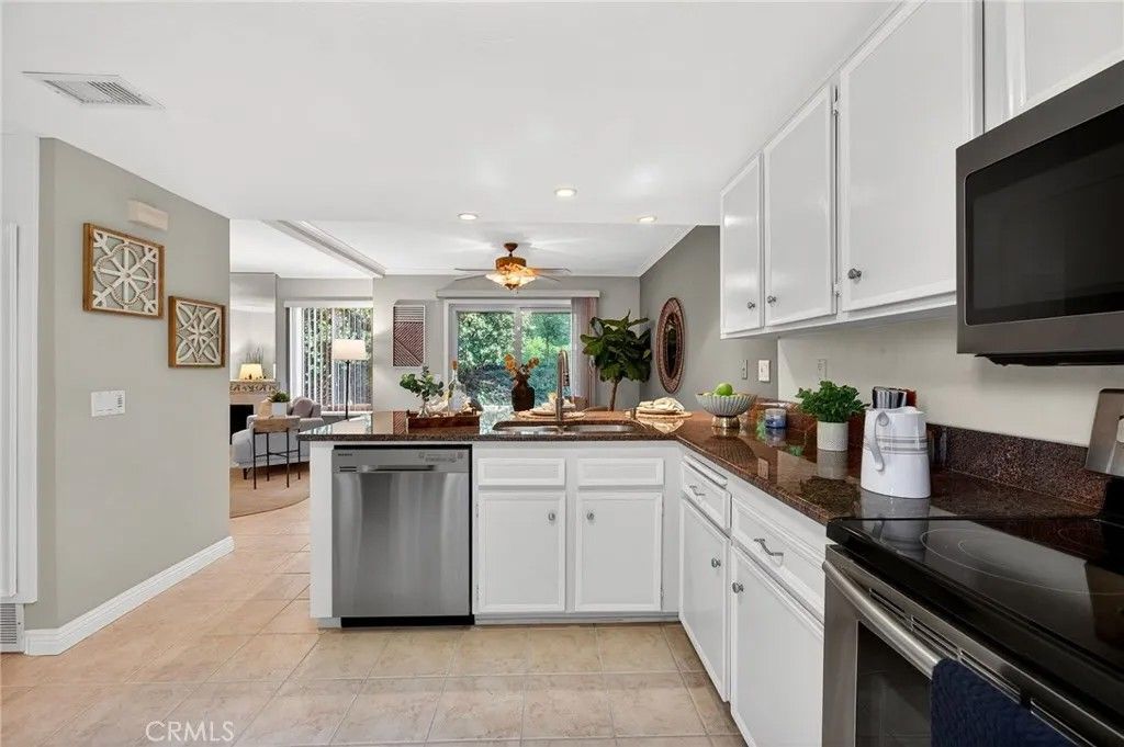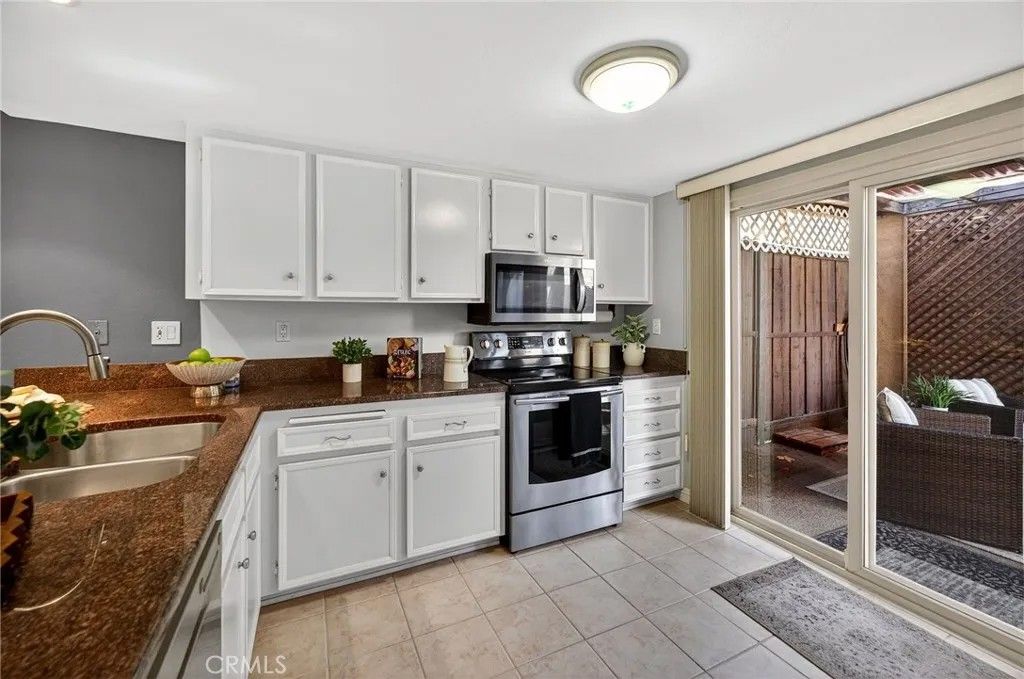 Located in the quiet Skylark Terrace community, this 1,184-square-foot townhome has been extensively updated to offer a modern, open-concept living experience. The main level features brand-new tile flooring and a remodeled kitchen with granite countertops that flows seamlessly into the dining and living areas. The living room is anchored by a refreshed tile fireplace and leads to a private outdoor retreat featuring a rock pebble patio, a permanent patio cover with an integrated fan, and new front and rear gutters. Security and efficiency are prioritized throughout the home with a new front door, vinyl double-pane windows, and security screen doors on both the front and rear entrances. The upper level consists of two spacious bedrooms and two full bathrooms, both of which feature brand-new vanities. This layout provides a clear separation between the social downstairs and the private living quarters. Residents of Skylark Terrace benefit from low HOA fees that cover essential utilities like water and trash, while providing access to premium amenities including a community pool, spa, and clubhouse. The propertys location is exceptional for both commuters and locals, situated in North Escondido with immediate access to the I-15 and Highway 78. It is positioned within walking distance of Escondido High School and is just minutes away from the vibrant dining, shopping, and entertainment of Historic Downtown Escondido. This home offers a rare combination of structural upgrades, modern interior finishes, and a highly accessible location. This home has been lovingly owned and occupied by it's owner for over 27 years. Available now, but not for long...schedule your showing today.