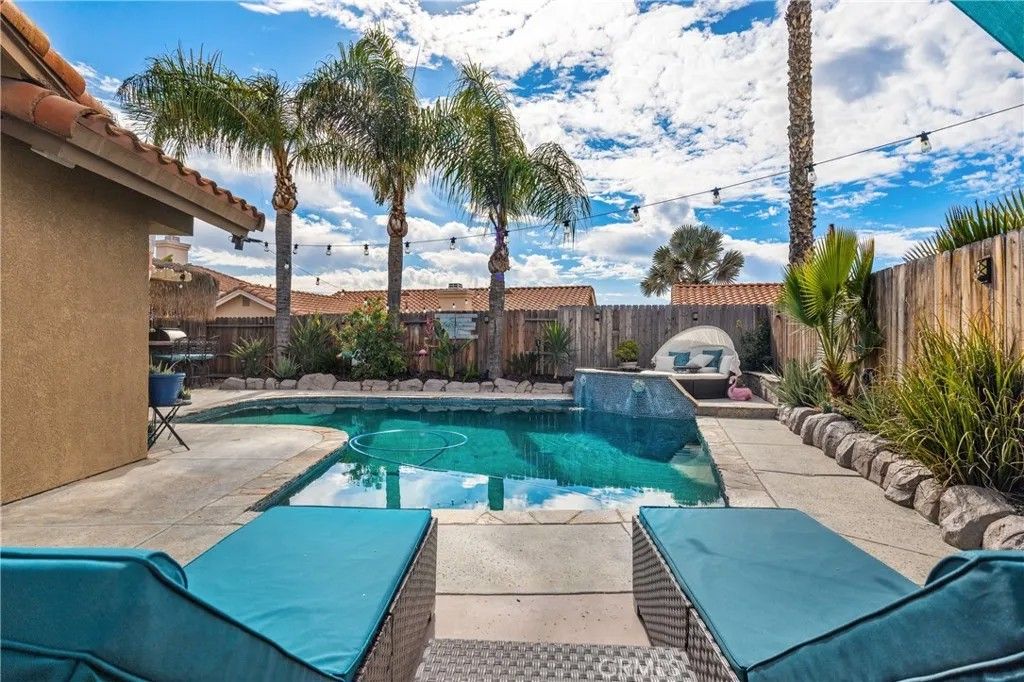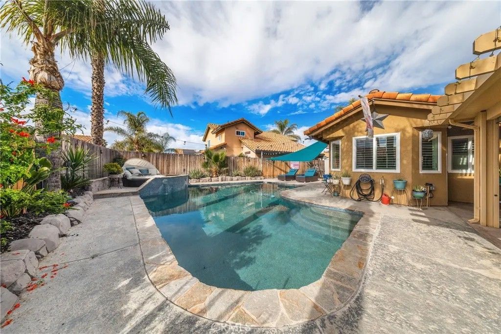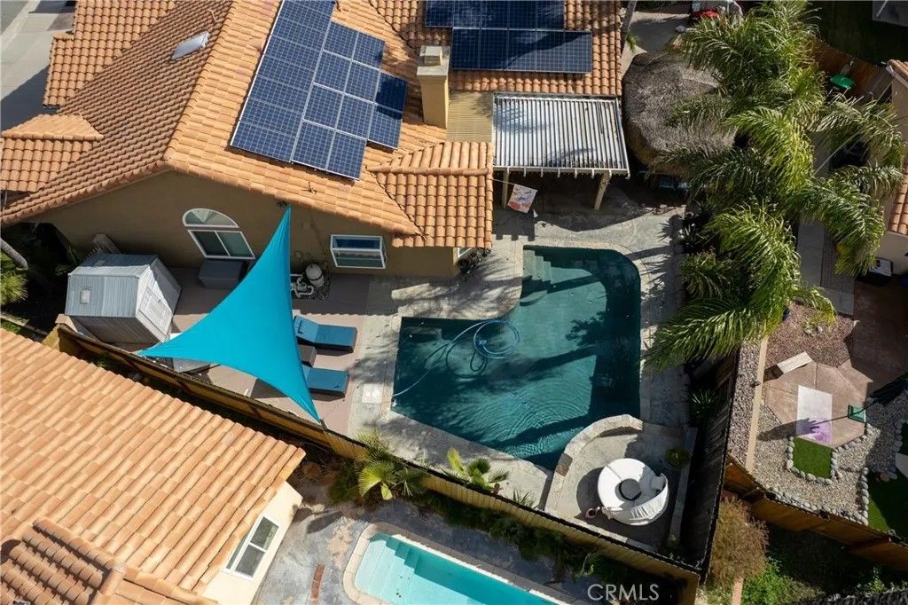 Welcome to this beautifully upgraded POOL HOME with NO HOA, SOLAR and LOW TAXES. Step into your own private oasis featuring a sparkling pool, a vibrant tiki bar, and a built-in BBQ area - the perfect setup for gatherings, weekend parties and unforgettable celebrations. Inside the home continues to impress with a warm, upscale atmosphere. When entering you will notice plantation shutters throughout, high ceilings and an open concept layout flowing into the living room, family room and kitchen area creating a bright ; inviting space for everyday comfort. The chef inspired kitchen showcases a stunning waterfall island, new soft close cabinets, and plenty of space for entertaining. Primary bedroom has three closets, and an amazing, upgraded bathroom which includes a separate bathtub and shower, for pure relaxation. The fourth bedroom has been converted into a walk-in closet/retreat, but could be easily re-converted into a fourth bedroom. There is a solar lease that runs about $227 per month. With thoughtful upgrades throughout and a layout designed for connection this home is the perfect blend of elegance and entertainment.