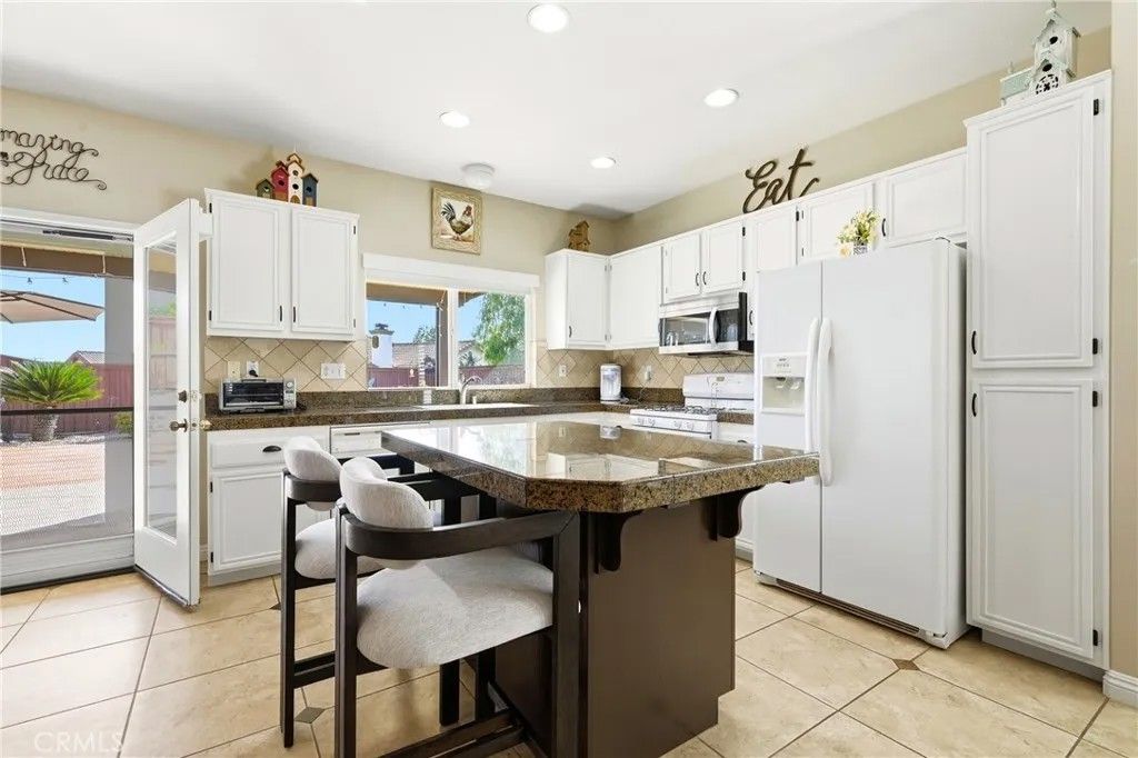 Welcome home to this beautiful 4-bedroom, 2.5-bath, 2,200 sq ft two-story residence located on a quiet cul-de-sac. Move-in ready and truly turnkey, this home offers newer paint and carpet, plantation shutters, ceiling fans throughout, and a tile roof with gutters for easy maintenance. The spacious kitchen features granite countertops, a large center island, and plenty of cabinetryperfect for everyday living and entertaining. The family room is warm and inviting with a cozy fireplace, while the upstairs individual laundry room adds everyday convenience. Retreat to the generous primary suite with a large bath and walk-in shower. Step outside to enjoy the beautifully landscaped 7,800 sq ft lot complete with a covered Alumawood patioideal for relaxing or hosting gatherings. RV parking on the side of the home adds valuable flexibility for toys, trailers, or extra vehicles. Additional highlights include a quiet street location, expansive backyard space, and thoughtful upgrades throughout. This is a fantastic opportunity to own a well-maintained home in a desirable settingready for you to move right in and enjoy.
