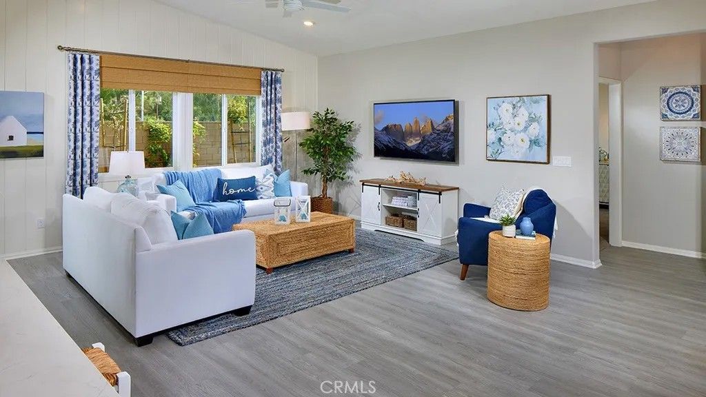 This spacious 1,898 square foot single-story home on a large cul-de-sac lot with a California Traditional exterior facade has 4 bedrooms and 3 full bathrooms. The home has an open concept floor plan with vaulted ceiling in the great room and dining area. The island kitchen has stainless-steel appliances, Quartz counter tops, and a pantry closet. There is white shaker style cabinetry throughout. This home utilizes America's Smart Home technology, Home is Connected, which provides smart home features, all conveniently controlled through one application to stay connected to your home around the clock, with solar panels installed, and a 3-car garage pre-plumbed for an electric car. The home is also fully irrigated and landscaped in the front yard. We anticipate the home will be ready for move in the end of May 2026.