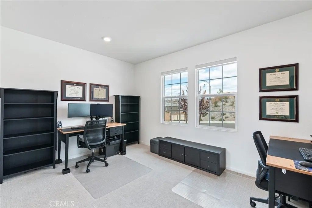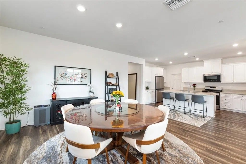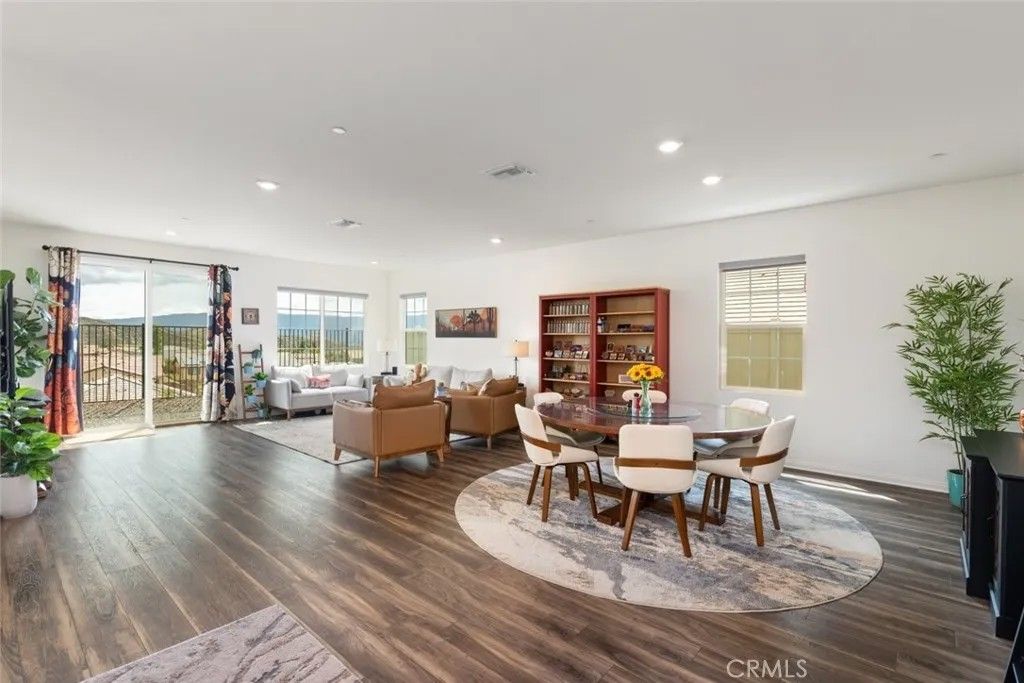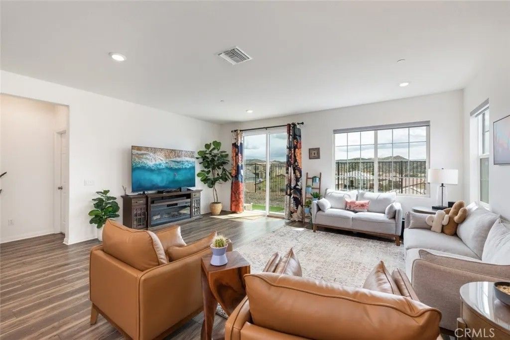 Beautiful Rosetta Canyon single-story home featuring 4 bedrooms, 2 bathrooms, PAID OFF SOLAR, and a premium view lot with stunning panoramic views and 9-foot ceilings throughout! This thoughtfully designed home offers an ideal blend of comfort, functionality, and privacy with a unique split-bedroom floor plan. As you enter, you are welcomed by a formal entry and luxury LVP flooring that flows seamlessly through the main living areas, creating a clean and modern feel. The spacious kitchen is perfectly positioned at the heart of the home and opens to both the dining area and family room, creating a desirable great room layout ideal for everyday living and entertaining. Features include Corian countertops with seamless integrated sinks, stainless steel appliances, a walk-in pantry, dedicated coffee bar area, and ample cabinetry for storage. The adjoining family room offers a light and bright atmosphere with plenty of windows to capture the surrounding views and natural light. The primary suite is privately located on its own wing of the home, offering a peaceful retreat with generous space, a large walk-in closet, dual sinks with a dedicated vanity area, and a walk-in shower. On the opposite side of the home, three additional bedrooms are all generously sized and share a well-appointed hallway bathroom with a shower/tub combo and additional storage. Additional highlights include a large indoor laundry room with extra storage space, a finished 2-car garage equipped with a tankless water heater and EV charging capability, and energy-efficient solar that is fully paid off. The front yard is designed for low maintenance, while the backyard offers a blank canvas ready for your personal touchperfect for creating an outdoor living space, garden, or entertaining area that takes full advantage of the incredible views and peaceful surroundings. Conveniently located near shopping, dining, schools, Lake Elsinore recreation, and easy access to the 15 freeway, this home offers both comfort and convenience in one of the areas most desirable communities. Dont miss this opportunity to own a move-in ready home with views, efficiency, and an ideal layout!