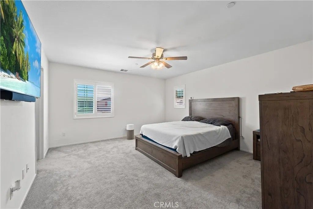 *** Welcome Home! *** This beautiful 2-story home is perfect for anyone wanting to purchase as a first-time home buyer or as an investment opportunity. Featuring 3 spacious bedrooms + a Bonus Room downstairs, 2.5 baths, and a huge primary bedroom, this gem is perfect for a family of any size. It offers many upgrades throughout including a gorgeous kitchen with stylish and spacious cabinets, stainless steel appliances including french door refrigerator, solar panels, ceiling fans in every room, custom motorized window blinds, recessed lights throughout, a tankless water heater, Samsung washer and dryer, and much more. You are going to absolutely fall in love with the inviting floor plan of this home. The open-concept layout seamlessly connects the living room and kitchen areas, creating an inclusive environment for all your family gatherings and social interactions. The backyard of this house is perfect for gatherings of any type, featuring concrete throughout, a great size alumawood patio cover with ceiling fans, + a large gazebo, and lots of yard space for your whole family to enjoy. This is a must see. Call us today for more details!