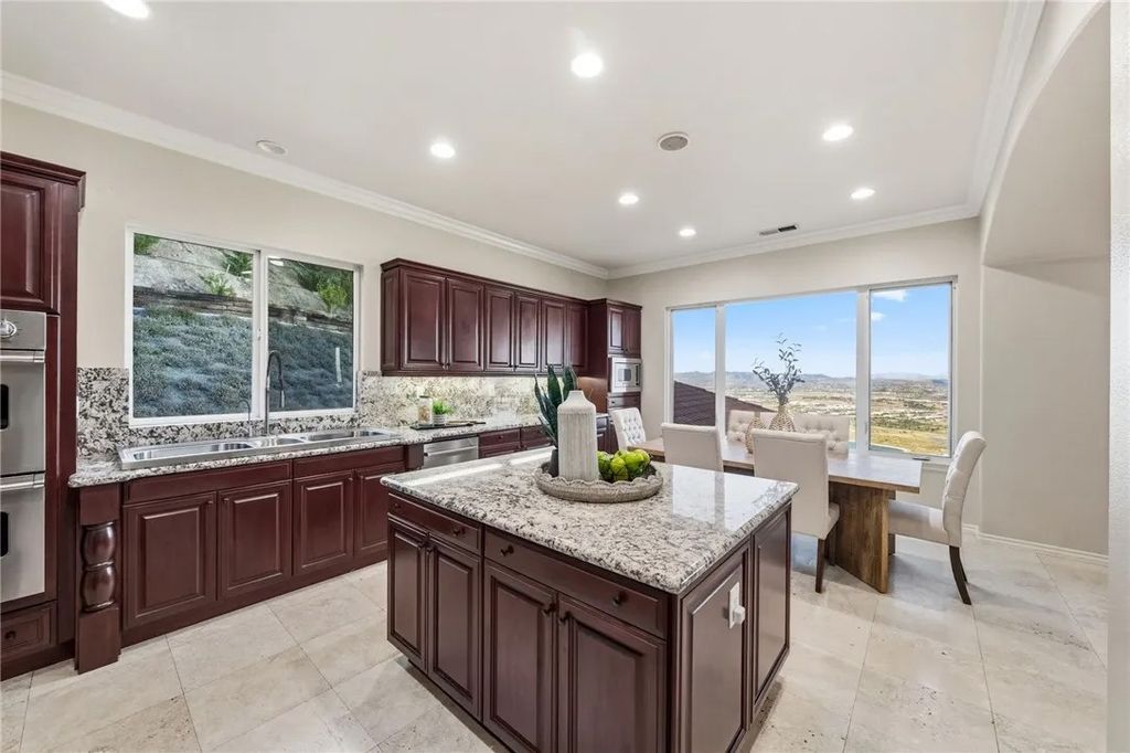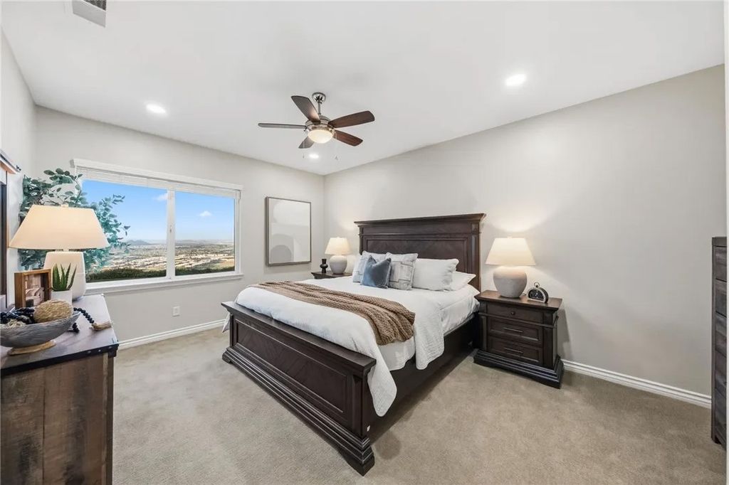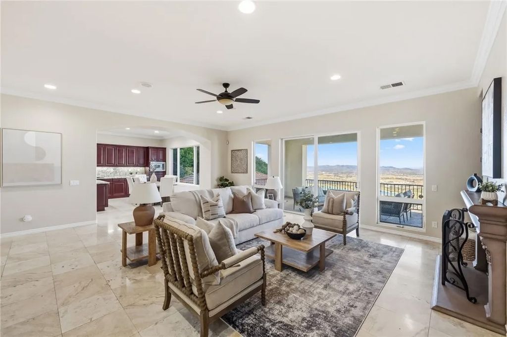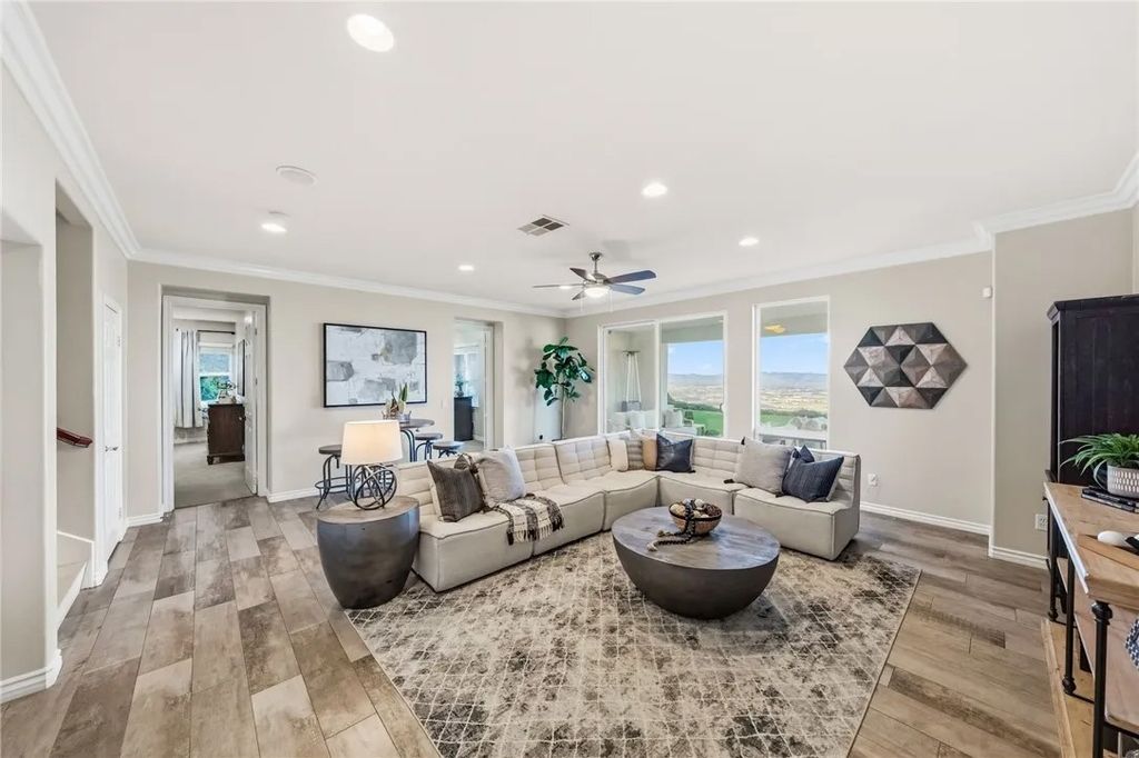 The best location in De Luz, Temecula.. Perfectly situated in a gated community, just five minutes from the freeway, shopping, and dining, while overlooking the entire Temecula Valley. This stunning residence is truly one of a kind. Thoughtfully designed as a two story home that lives like a single story, the primary suite is ideally located on the main level, featuring a spacious bedroom and luxurious bathroom retreat. From the moment you enter through the formal entry, you are welcomed by elegant living spaces including a formal living room, formal dining room, and an inviting family room. At the heart of the home is a chefs kitchen outfitted with premium Viking appliances, a generous layout, and an adjoining dining area perfect for both everyday living and entertaining. The home offers 4 bedrooms and 4.5 bathrooms, with three bedrooms featuring en suite full baths, and the fourth conveniently located near its own full bathroom. The lower level expands the homes versatility with an additional family room/bonus room and a flexible space that can be used as an office, game room, or even a potential casita kitchen setup. Spanning approximately 4,381 square feet, the home features a beautiful open floor plan filled with natural light and mesmerizing views from nearly every window. Additional highlights include paid off solar and an oversized 3 car garage. Step outside to your private backyard oasis, complete with low maintenance astro turf, a putting green, and lush, mature landscaping with a variety of fruit trees. The highly upgraded outdoor covered patio is designed for year round enjoyment, featuring an outdoor kitchen, pitched wood ceiling, ambient lighting, and a jacuzzi perfectly positioned to take in the stunning city views. Upstairs, a covered patio offers yet another vantage point to soak in the panoramic scenery. The expansive lot provides ample space and opportunity to add a pool and spa, further enhancing this incredible property. Located within one of the only gated enclaves in De Luz with just four homes, this property offers a rare combination of exclusivity, seclusion, and accessibility. Built in 2010 and barely lived in, the home is in immaculate, truly move in ready condition. Just minutes from town and among the first homes in De Luz, this exceptional property delivers luxury living, privacy, and unforgettable views in one of Temeculas most sought after locations. There is no HOA, low taxes, and no STR restrictions.