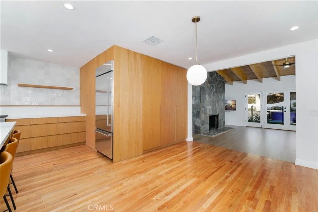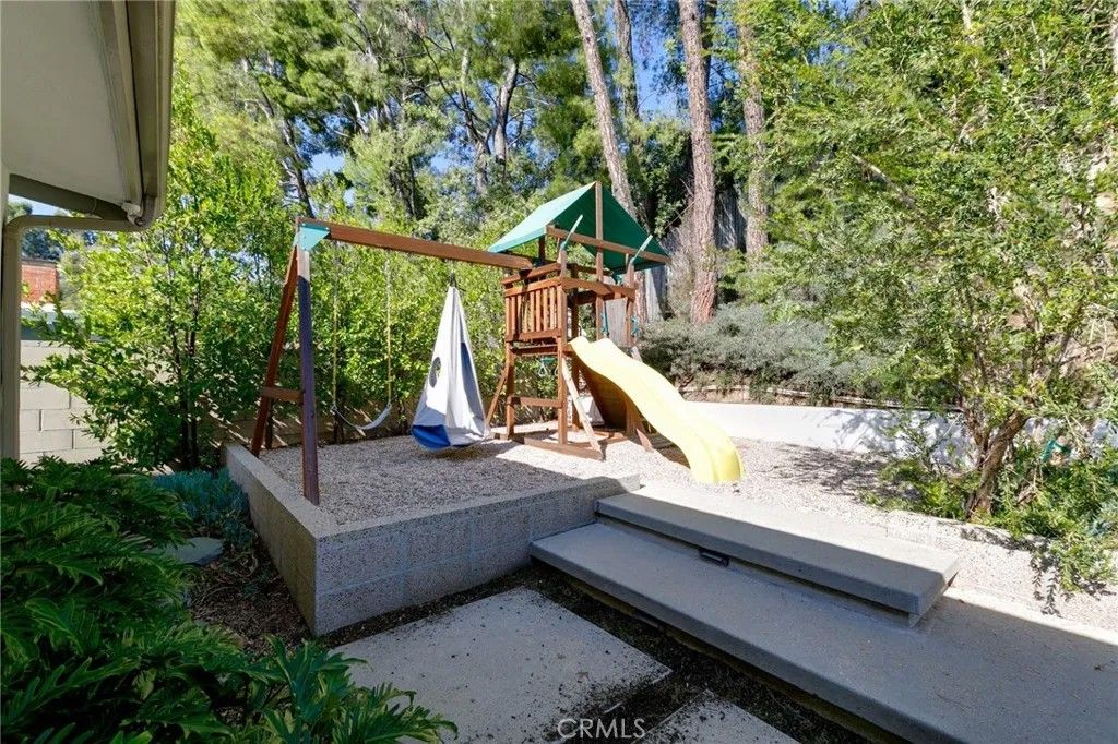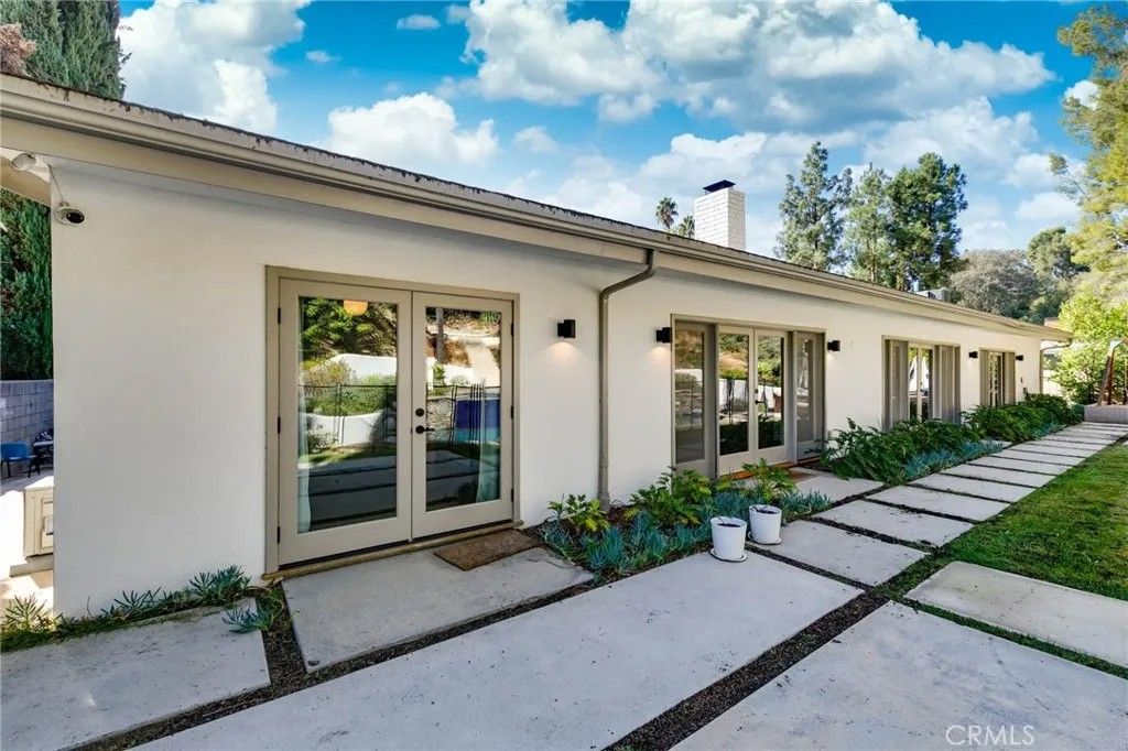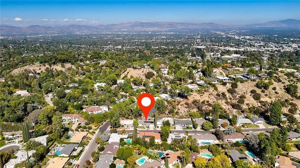 A rare offering in an unbeatable Tarzana location! Mid-century modern stunner designed by a renowned architect, nestled on tree-lined street south of the boulevard. This beautifully updated single-story residence offers the perfect blend of luxury, comfort, and California indoor-outdoor living. Set on nearly 15,000 sq ft of meticulously landscaped grounds, this 4-bedroom, 3.5-bathroom home spans 2,864 sq ft of light-filled living space. Clean modern lines and lush, drought-tolerant gardens frame the exterior, creating a peaceful, private retreat. A custom wood front door opens into a bright, expansive living area with concrete floors, exposed wood-beam ceilings, and a striking double-sided fieldstone fireplace. Walls of glass line the back of the home, opening to a resort-style backyard complete with a heated pool, hot tub, outdoor fireplace, view terrace, and playsetideal for year-round entertaining and family enjoyment. At the heart of the home is the remodeled gourmet kitchen featuring an eat-in island, breakfast bar, custom white oak cabinetry, and stainless steel appliancesperfect for both casual meals and entertaining. The luxurious primary suite is a true sanctuary, boasting spa-like bath with dual vanities and spacious walk-in closet. Three generously sized secondary bedrooms and updated bathrooms complete the interior layout. Additional highlights include owned solar panels, drip irrigation, and eco-conscious landscaping for effortless, sustainable living. Dont miss your chance to call this architectural gem home!