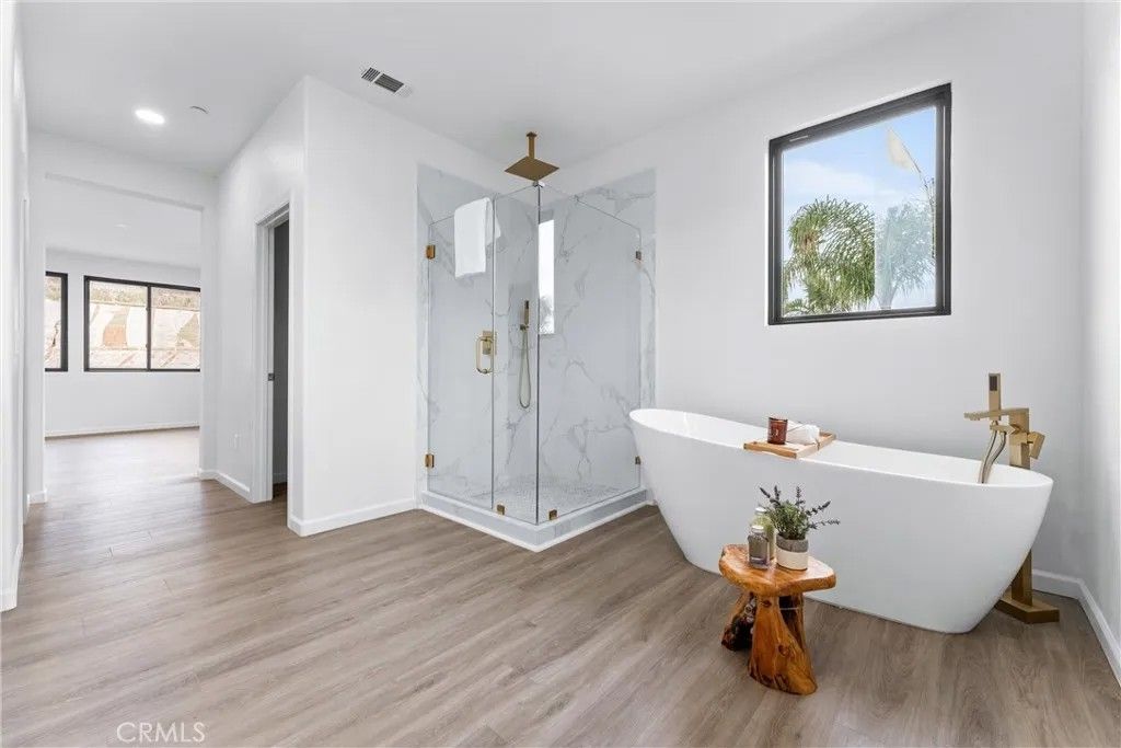 Brand New Construction in a Cul-de-Sac in a Wonderful Neighborhood Welcome to this stunning newly built home, featuring 5 bedrooms, 3 full bathrooms, and an expansive 2,931 square feet of thoughtfully designed living space. Nestled on over 1 acre of land in a serene cul-de-sac in a charming and highly desirable neighborhood. Imagine being the very first owner of this incredible property, which boasts exclusive access to a peaceful creeka true nature-lover's retreat. Features You'll Love: Spacious Layout: Designed with modern living in mind, this home offers expansive square footage and a seamless flow between spaces. Gourmet Kitchen: Beautiful quartz countertops provide ample space for cooking and entertaining, making this kitchen the heart of the home. Luxurious Master Suite: The master bedroom features two generous walk-in closets and an elegant en-suite bathroom. Relax in the free-standing modern bathtub or enjoy the spa-like experience of the glass-enclosed shower, complete with a waterfall feature and brass accents. Contemporary Design: Stylish glass stair railings create a sleek, open feel, complementing the home's airy architecture. High-Quality Finishes: Durable, premium vinyl flooring throughout ensures both beauty and easy maintenance. Indoor-Outdoor Living: Large folding glass doors connect the interior to the outdoor space, perfect for hosting gatherings or simply enjoying California's gorgeous weather. Additional Highlights: High-End Fixtures: Designer lighting and premium hardware enhance the home's functionality and luxurious aesthetic. Energy Efficiency: Equipped with state-of-the-art solar panels and energy-saving features to support a sustainable lifestyle. Ample Storage: Generously sized bedrooms and walk-in closets, as well as custom built-in shelving throughout the home. : Prewired for cutting-edge smart technology, making modern living effortless. Low-Maintenance Landscaping: Beautifully landscaped with lush natural grass and equipped with a smart irrigation system for water efficiency. Special Touches: Anderson black windows, a striking metal entrance door, and Bluetooth-operated exhaust fans add sleek, modern details. Additional conveniences include an RV-accessible side gate, offering flexibility for storage or recreational needs. Every detail in this property has been carefully considered to ensure comfort, style, and practicality. Dont miss the opportunity to make this dream home yours!