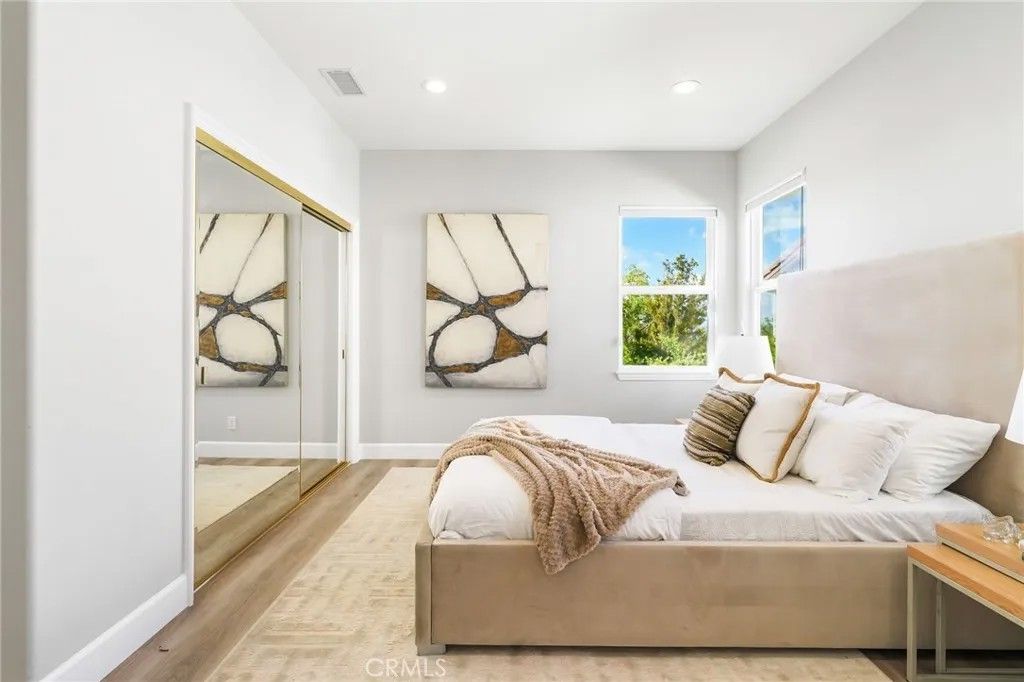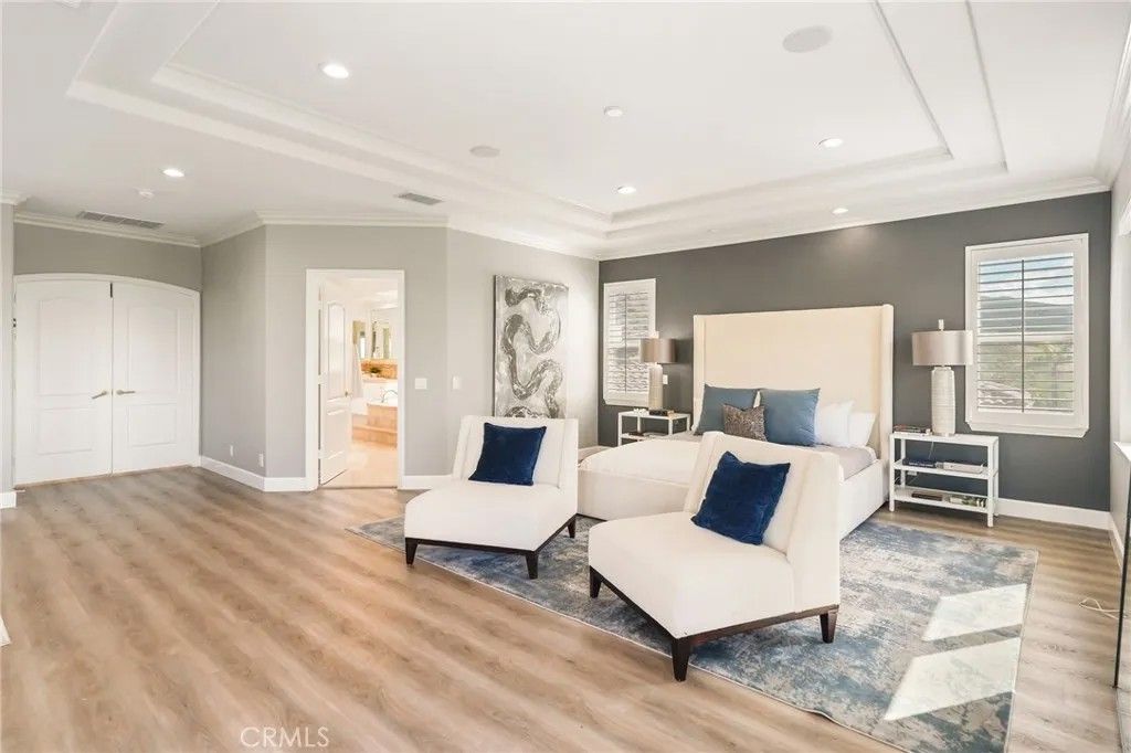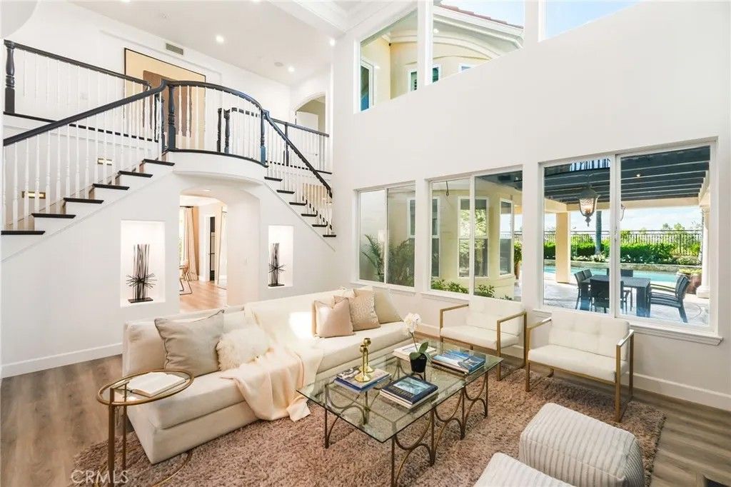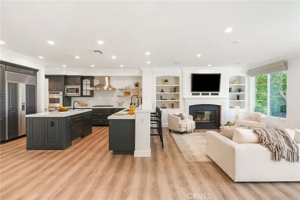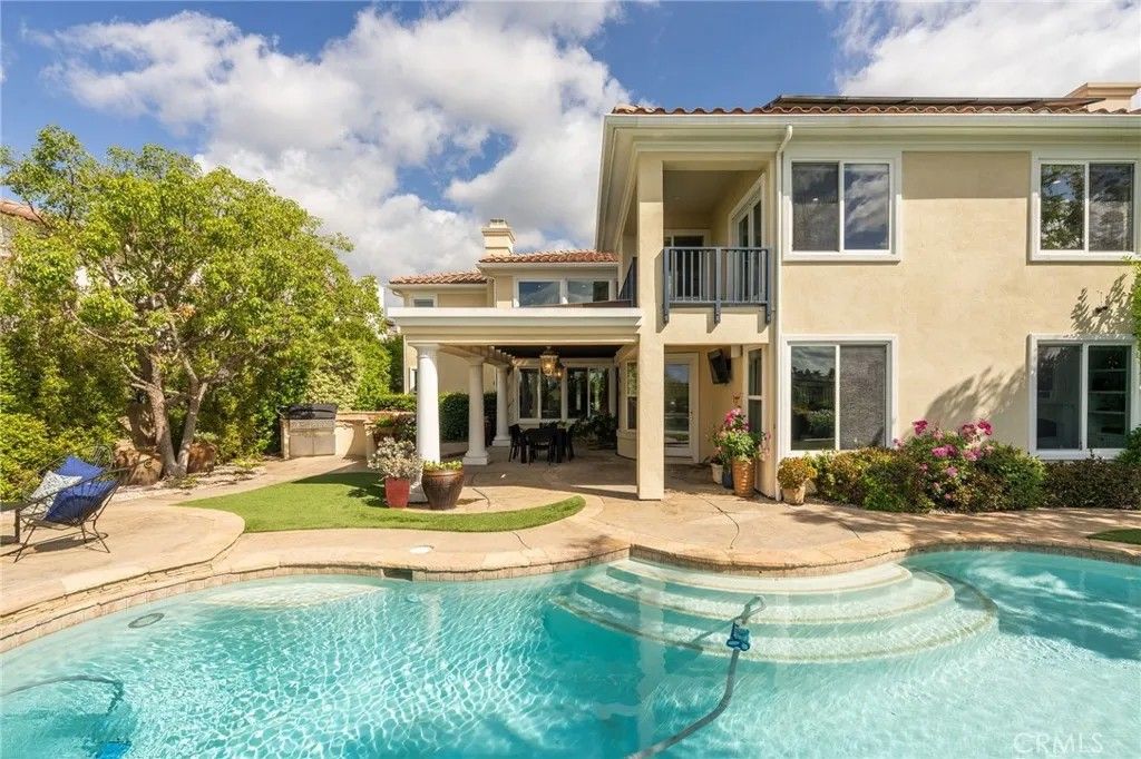 Welcome to this beautiful modern home in the heart of Porter Ranch located in the exclusive Renaissance community. The open floor plan seamlessly connects the kitchen, dining, and living areas. The designer kitchen features stainless steel appliances, built in refrigerator, custom oak shaker style cabinets, quartz countertops with enough barstool seating for 4. Adjacent to the dining room is a private room with wine fridge. Additional highlights include recessed lighting all throughout the home, paid off solar panels, security system and cameras, and 2nd-generation NEST thermostats. The massive primary suite offers a private balcony and an en-suite with beautifully laid tile, ample closet space, and a glass-enclosed shower. Each bedroom contains its own full sized bathroom. The backyard is built for gatherings with a pool, jacuzzi, BBQ pit, pergola covered patio for expansive seating, and nighttime views of the San Fernando Valley. Property is a short drive away from the The Vineyards at Porter Ranch, Porter Ranch Park and newly opened Jane and Bert Boeckmann Park. Priced to sell. Come see this home today!