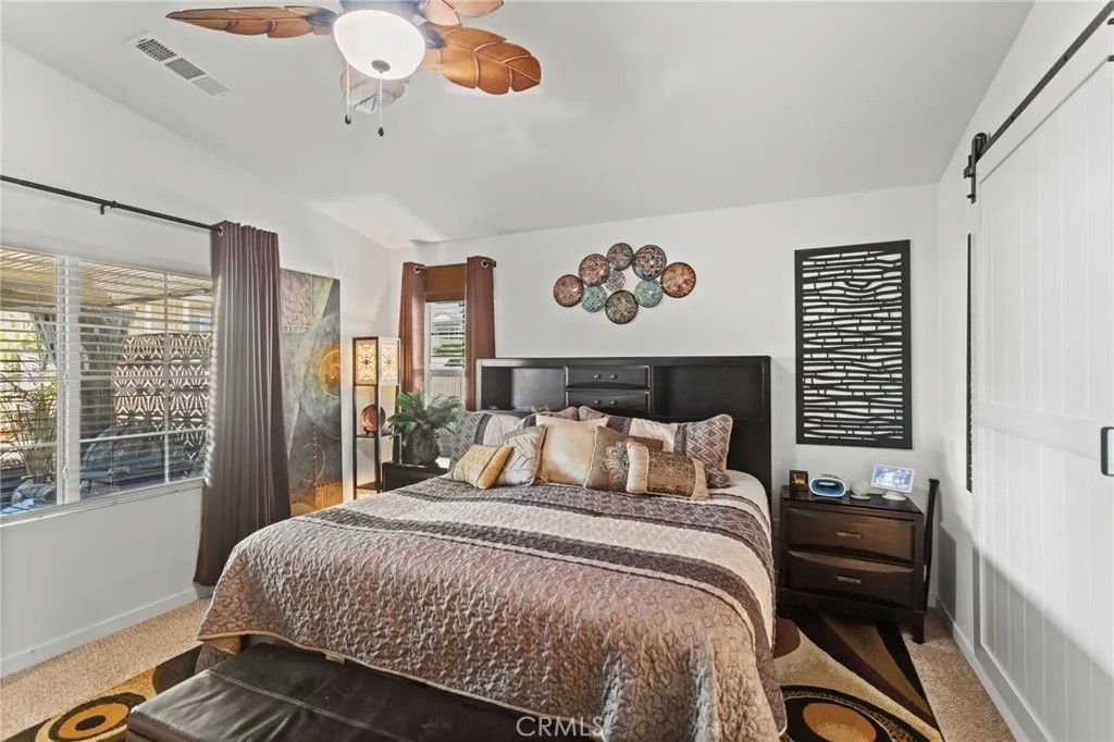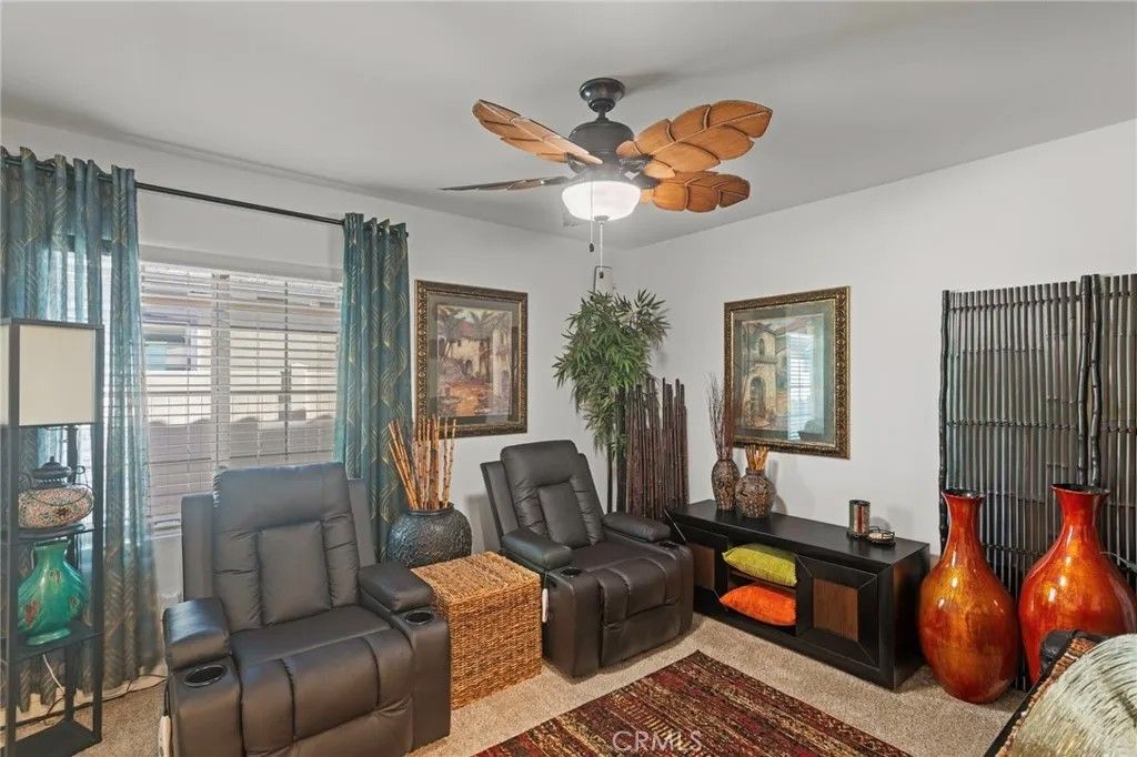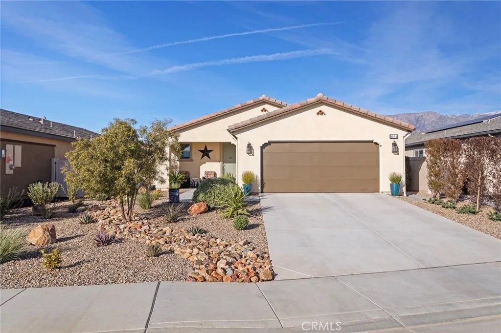 Welcome to this immaculately kept home that is better than a model, with all the improvements already completed for the buyer, located in a vibrant 55+ resort-style community where every day feels like a vacation and set against a stunning mountain backdrop. This nearly brand-new residence offers 2 spacious bedrooms, 2 full bathrooms, and a versatile office nook ideal for working from home or hobbies, along with a beautifully appointed kitchen featuring soft close cabinetry, light countertops, decorative glass backsplash, walk-in pantry, vaulted ceilings, and recessed lighting throughout, creating a bright and inviting space for everyday living and entertaining. The highly upgraded backyard is designed for low-maintenance outdoor enjoyment and includes an Aluma-wood patio cover with accent lighting and ceiling fan, privacy hedges, peek-a-boo mountain views, artificial turf, river rock along the side yard, and a mobile vegetable garden with an integrated watering system, while the front yard showcases drought-tolerant landscaping with an elegant river rock design. Additional highlights include solar panels for enhanced energy efficiency, making this home a perfect blend of comfort, style, and convenience in a premier community offering amenities designed for relaxation, social connection, and active livingtruly a move-in-ready opportunity not to be missed.