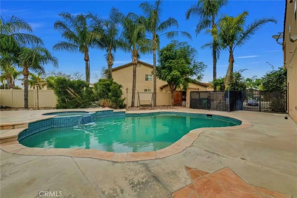 ***POOL HOME!!*** Resort-style living with no HOA! This is the one you have been waiting for. Cul-de-sac location. 12197 square feet lots, 3234 square feet of living space. Walk distance to supermarkets, restaurants, banks, parks, schools, and the Eastvale Community Center. An excellent place for you and your children to play and grow. Close to freeway access. 4 large bedrooms, an additional room upstairs (potentially 5 bedrooms), and a loft that can be used as an office. Huge main bedroom with separate retreat (can be used as an office or theater room). 3 full bathrooms. Granite countertops in the kitchen and all restrooms. Big granite kitchen island. Beautiful real wood floor. New carpet. The whole wall is built in cabinets in the living room, main bedroom, and garage. Two huge walk-in closets in the main bedroom for the husband and wife. Brick fireplace. Built-in media center. Each room and backyard has speakers to create an immersive audio experience. You can control the volume in each room. There is a bedroom and a complete bathroom downstairs. Ceiling fans in the living room and bedrooms. Mirrored wardrobes. Luxurious massage bathtub in the main bathroom. A central bathroom with his-and-her vanities offer couples the convenience of separate, private grooming spaces. Two sinks allow for simultaneous use. Elegant plantation shutters on all windows. Indoor laundry room upstairs. Large backyard with a sparkling underground swimming pool and spa. Large, covered terrace. Big Storage shed in the backyard. Built-in barbecue island. Large grassy areas for children to play. Auto-watered vegetable area. Beautiful patterned concrete panels in the backyard. Lots of fruit trees in the backyard, like orange, avocado, fig, mulberry, and date. Beautiful curbing along the driveway and exterior lighting accents to enhance the front yard's appearance. Great community. Award-winning school districts and park areas. Furniture and decorations are also for sale. There is NO HOA fee. New ADT system. Ready to move in. Wired security cameras around the house. Potential to build an ADU in the backyard. Street parking is available behind the property. This property has a clear title, is free of termites, and is well-maintained. Very quiet neighborhood. This beautifully upgraded pool home offers spaces, comforts, and outdoor serenity that is hard to find and even harder to let go of.