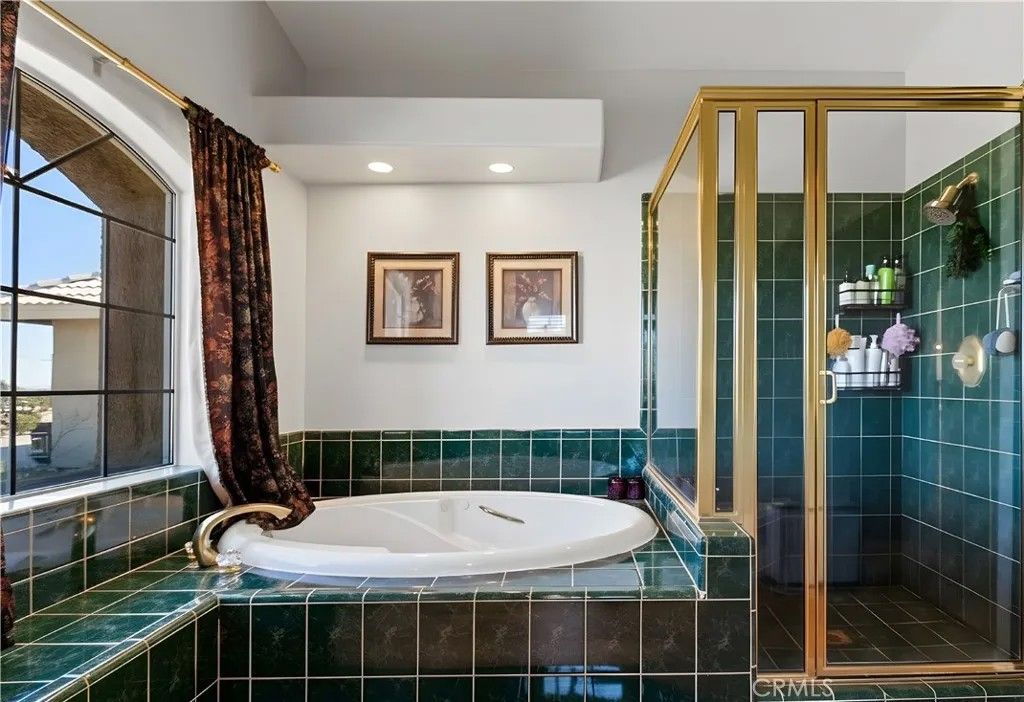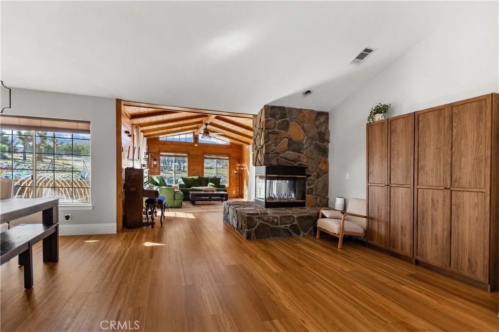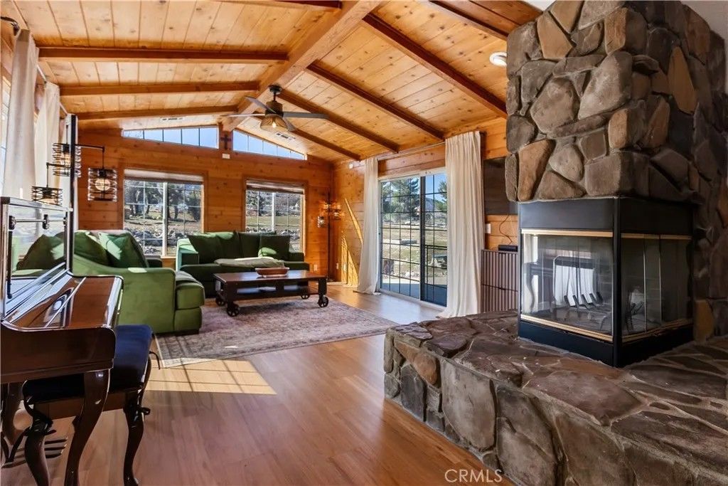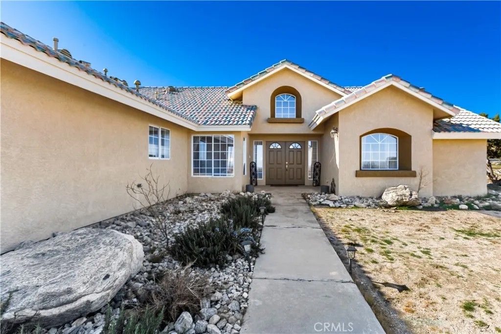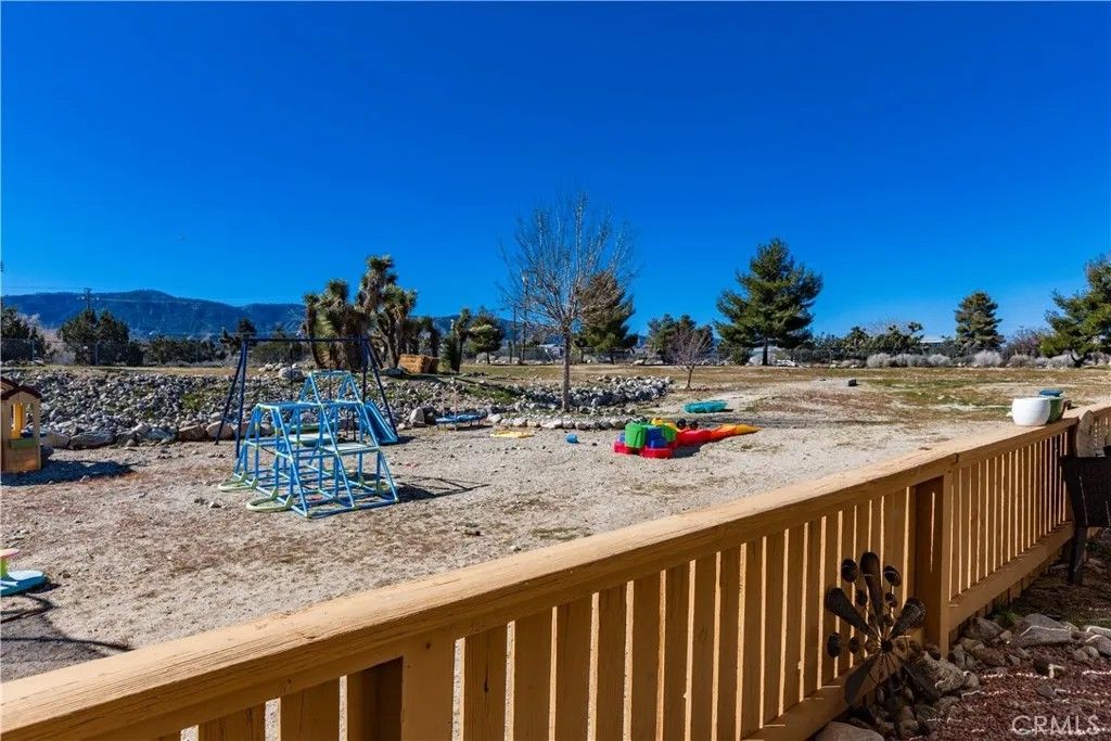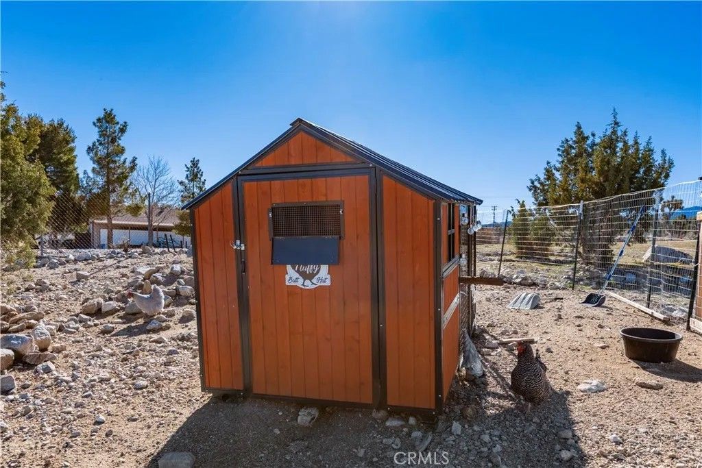 A true gem of a home is awaiting you here in the serene town of Pinon Hills. Situated less than a mile from paved roads with well maintained access to a 2.05 acre property. The 360 degree mountainous views will take your breath away. Coming home to a full fenced property with an electric entrance gate to welcome you to your beautiful sanctuary of a home. Dual AC Units keep this desert home comfortable year round. This 2,818 sq ft home with 4 bedrooms and 2 baths is a turnkey home that has been updated with magnificent touches. New life proof vinyl flooring has been installed throughout the home. New base boards fully finished to complete the home upgrade. Light fixtures have been updated though the home to create a modern design, you will be able to boast about. As you enter the home the large entry way opens up to a dining area and large open floorplan. The Family Room has sliding doors and windows throughout to enjoy the views of the Mountains. The peninsula style fireplace separates the rooms to provide heat to the center of the home. The kitchen and living room are adjoined for a great entertaining space. A breakfast nook looks out to the backyard. The covered back patio is great for barbecuing and dining outdoors. 2 Bedrooms are standard size with sliding door closets. An extra large 3rd bedroom with double doors can also be used as a home office overlooking the front entrance and view of the high desert. The primary bedroom is on its independent wing of the house and has access to the backyard via sliding doors. The massive walk in closet will satisfy your wardrobe needs. The home is equipped to protect against power outages with 2 Tesla Battery Backups. 45 in total solar panels charge the home fully and are on a Transferable Lease with SunRun. Enjoy the perks of future proof rising bills by leasing your own solar equipment. The use of electric fireplaces to minimize propane consumption will reduce the cost of filling the propane tank. The 2 car garage space has an additional workshop space and a utility room with counter top and sink. Plenty of additional storage space. EV Charger Ready for your electric or hybrid vehicle. This massive lot on flat land makes building flexible. The chicken coop is next to new and include hens that lay perfect eggs.