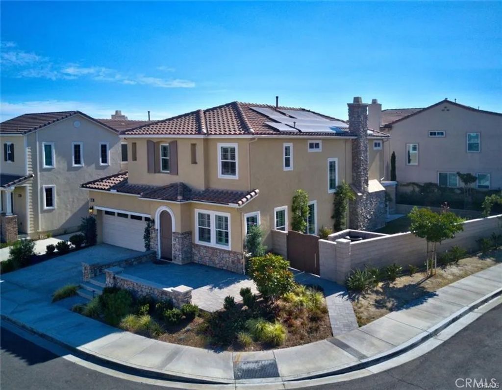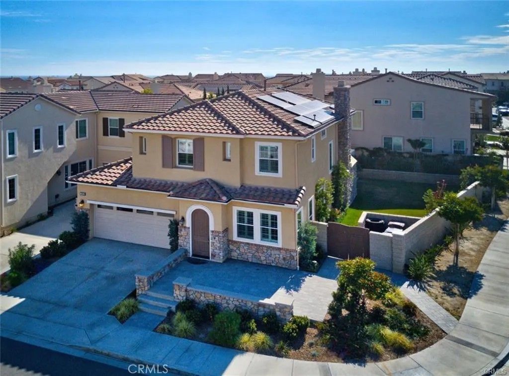 This stunning 4-bedroom Toll Brothers home at the Vista Del Verde is exactly what you've been waiting for! Nestled on a spacious corner lot, this beautifully upgraded residence exudes elegance as you approach. Step through the charming front porch and arched entry into a welcoming formal living and dining room. The rich espresso wood flooring flows seamlessly throughout the first floor, complemented by crown molding and plantation shutters that enhance the home's refined ambiance. As you continue through, youll find a spacious great room featuring a cozy family room with a fireplace and built-in entertainment center, a bright breakfast nook, and a chefs dream kitchen. The kitchen boasts gleaming granite countertops, beautiful espresso wood cabinetry, and high-end stainless steel appliances, including a double oven, gas range, built-in microwave, and dishwasher. A large walk-in pantry, along with ample cabinet and counter space, adds to the homes functionality. French doors open to a covered patio, expanding your living space outdoors. The backyard is perfect for entertaining, featuring a built-in BBQ island with a firepit, along with a large grassy area that offers plenty of room for a pool. Upstairs, the expansive master suite provides space for a home office and includes a luxurious en-suite bathroom with a soaking tub, walk-in shower, double vanity, and an enormous walk-in closet. Two additional secondary bedrooms share a full bathroom with a double vanity, and the fourth bedroom has its own ensuite bathroom. All bedrooms are equipped with plantation shutters and cooling ceiling fans. Plus, enjoy the convenience of an upstairs laundry room! This home is not only stylish and functional but also energy-efficient! A large array of solar panels on the roof, combined with a Tesla Powerwall in the garage, ensures significant energy savings for the future owner. These eco-friendly features provide sustainable power, reduce utility costs, and offer backup energy during outages, making this home as practical as it is beautiful. This home offers the perfect blend of style, comfort, and functionality. Dont miss out make it yours today!
