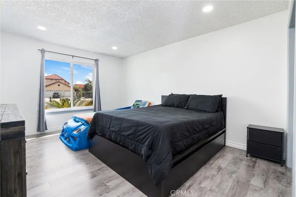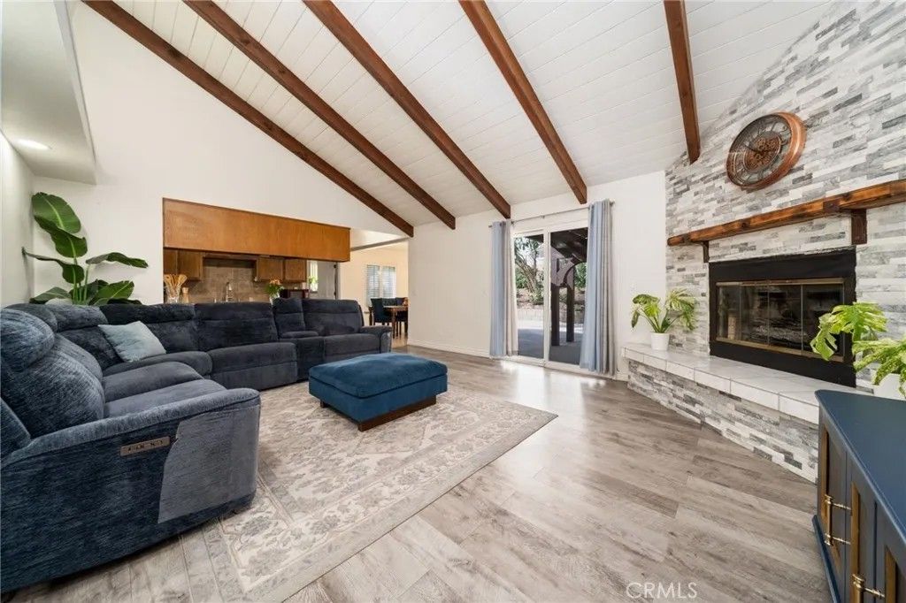 Welcome to this charming single-story Spanish-style home, perfectly situated at the end of a quiet cul-de-sac with desirable RV parking and a spacious driveway accommodating up to six vehicles. Nestled in a family-oriented neighborhood, this home offers convenient access to shopping and transportation while maintaining a peaceful residential feel. Step inside to discover beautiful Spanish arched entryways leading into the formal living and dining rooms, creating a warm and inviting first impression. The expansive family room showcases stunning natural wood open-beam vaulted ceilings and a cozy fireplace, making it the perfect space for relaxing or entertaining. The adjacent gourmet kitchen features gorgeous granite countertops, a newer stove, range, and oven, and flows seamlessly into the main living areas. Throughout the home, youll find rich natural wood moldings and wood-finished doors that add timeless character and charm. The open floor plan offers spacious rooms filled with natural light. The primary suite serves as a private retreat, complete with a walk-in closet and a large bathroom featuring dual vanity sinks, a soaking tub, and a separate shower. Sliding glass doors lead directly to the backyard patio, creating a seamless indoor-outdoor living experience. The backyard is truly an entertainers delightthoughtfully redesigned with a concrete slab, retaining wall, and professional landscaping. Enjoy a tranquil setting surrounded by Texas privets, rose bushes, lavender plants, and sago palms, along with a fragrant greenhouse and sprinkler system. Its the perfect space for BBQ gatherings or relaxing evenings outdoors. Additional upgrades include dual-pane windows, newer central A/C and forced air systems, and recessed lighting throughout. Both bathrooms have been tastefully remodeled with new faucets, countertops, and toilets, completing this beautifully maintained home that blends comfort, style, and functionality.