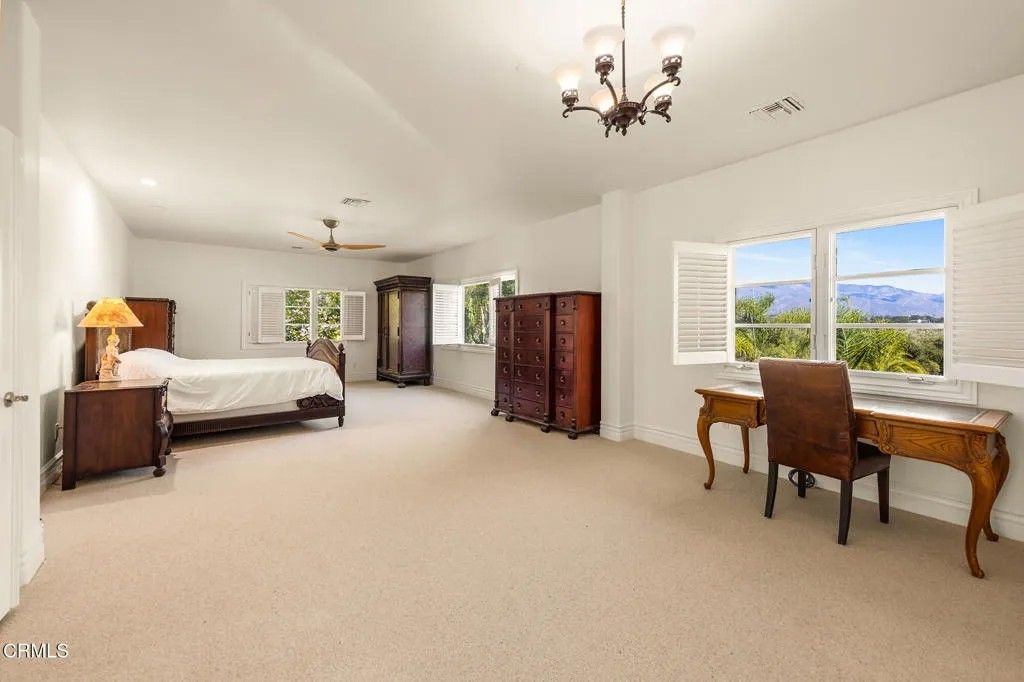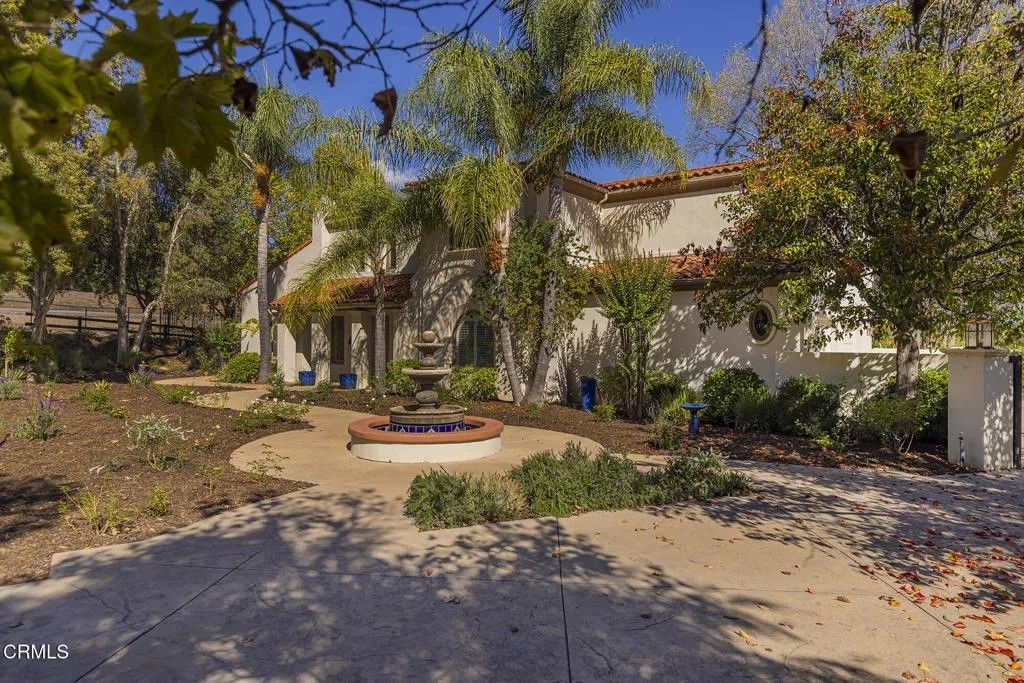 Elegant Mediterranean Estate - Located in the exclusive gated community of Rancho Matilija, this stunning home captures the serene beauty of Ojai with vistas from every angle. Bordered by the Ojai Land Conservancy and Ventura River, the property offers unmatched privacy and direct access to equestrian and pedestrian trails leading to the Los Padres National Forest and surrounding neighborhood paths. Enjoy sweeping views of the Ojai Valley and the iconic Topa Topa Mountains, the home features five spacious bedrooms and five bathrooms, including a primary suite with stunning views, a luxurious en-suite bathroom, and a large walk-in closet. Designed with comfort and style in mind, the open floor plan includes travertine flooring in the entry and kitchen, solid hardwood in main living areas, and three inviting fireplaces. Additional features include a three-car garage and an EV charger.Set on almost 3 acres with a vast variety of plants and trees including: citrus, palm, and olive trees, the backyard offers a tranquil escape with breathtaking views of Ojai's famous Pink Moment. Just minutes from Lake Casitas, downtown Ojai, and top private schools, the property is also within easy reach of Ventura, Carpentaria, Santa Barbara, and Los Angeles.