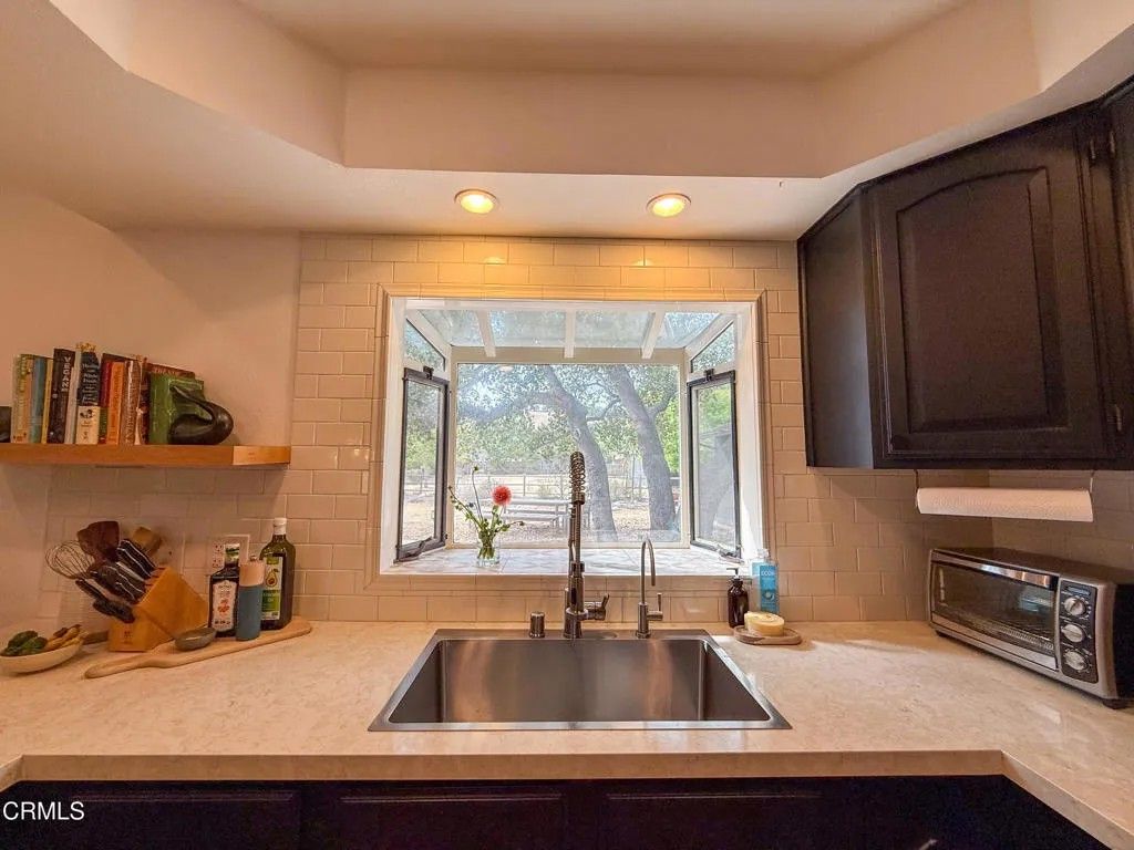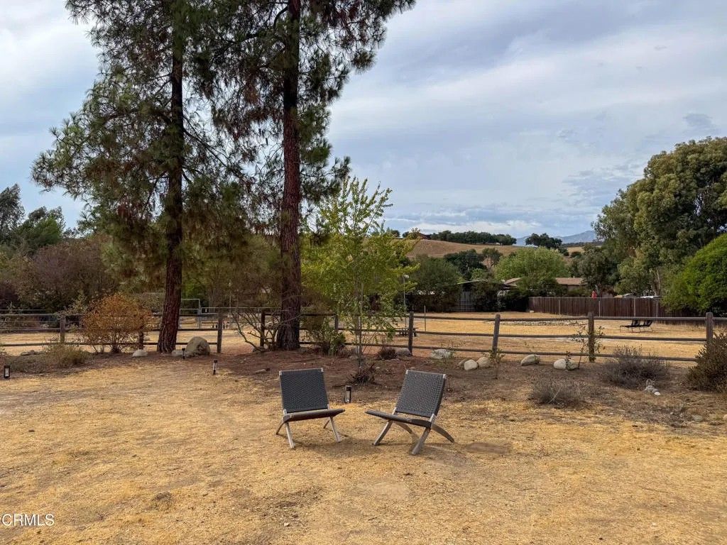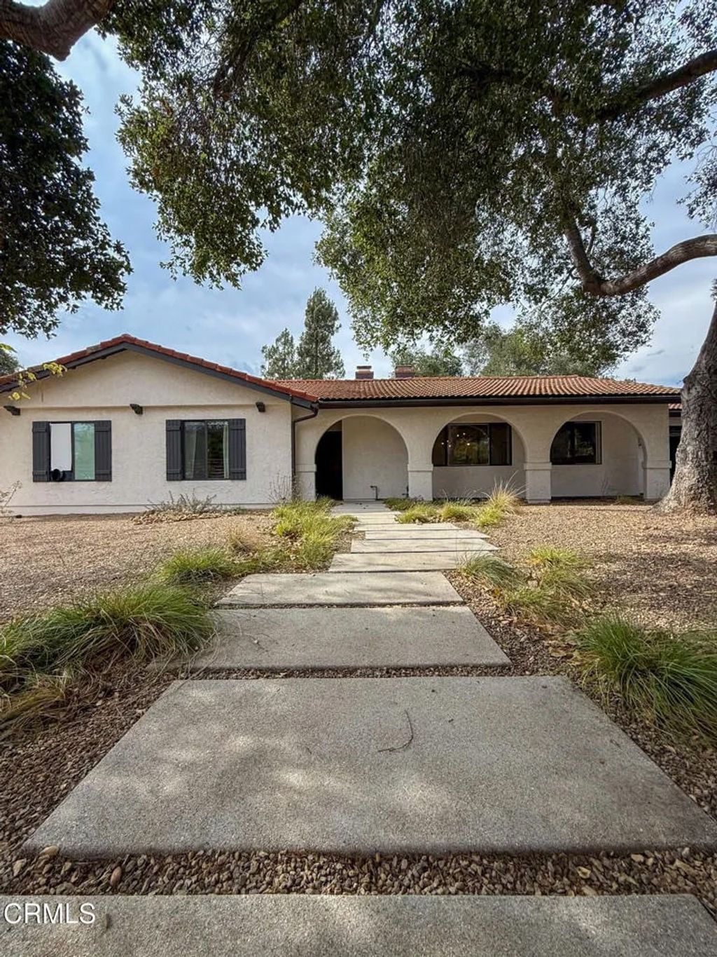 Set on an acre with peaceful mountain views, open skies and mature Oak and Palo Verde trees, this serene ranch-style Oak View property is a rare find. The single-level home is beautifully maintained and move-in ready, featuring a light-filled open-concept kitchen with quartz countertops, spacious living and family rooms with large windows and a fireplace. A primary suite with sliding doors opens to a private patio. Both bathrooms have been tastefully updated, and the home showcases built-in bookcases, wood floors, and thoughtful touches throughout.Step outside and enjoy sky-filled beauty-sunsets, stargazing and tranquil mountain vistas are all are part of everyday life here. The property is fully fenced and gated with an electric front gate, two new sheds (your 'he-shed' and 'she-shed'), raised garden beds, and plenty of room to expand. A detached studio--ideal for an office, music room, or art space--includes its own A/C unit, offering a quiet retreat from the main home.For those who dream big, this property is set on a flat, fully usable acre, offering endless possibilities. Whether your vision includes horses, farm-style living, a guest house, pool, or family compound, this land provides the space, privacy, and inspiration to create your ideal Ojai Valley lifestyle.Additional features include an attached two-car garage and an ideal location for commuters, easy access to the 150 for Santa Barbara or Ventura, minutes to Lake Casitas for weekend boating or fishing and a short walk to the beloved Ojai Valley Trail for walking, biking or horseback riding. A property that blends this much usable land, comfort, and possibility in one place is a true gem. Don't miss your chance, there's nothing else like it on the market today.