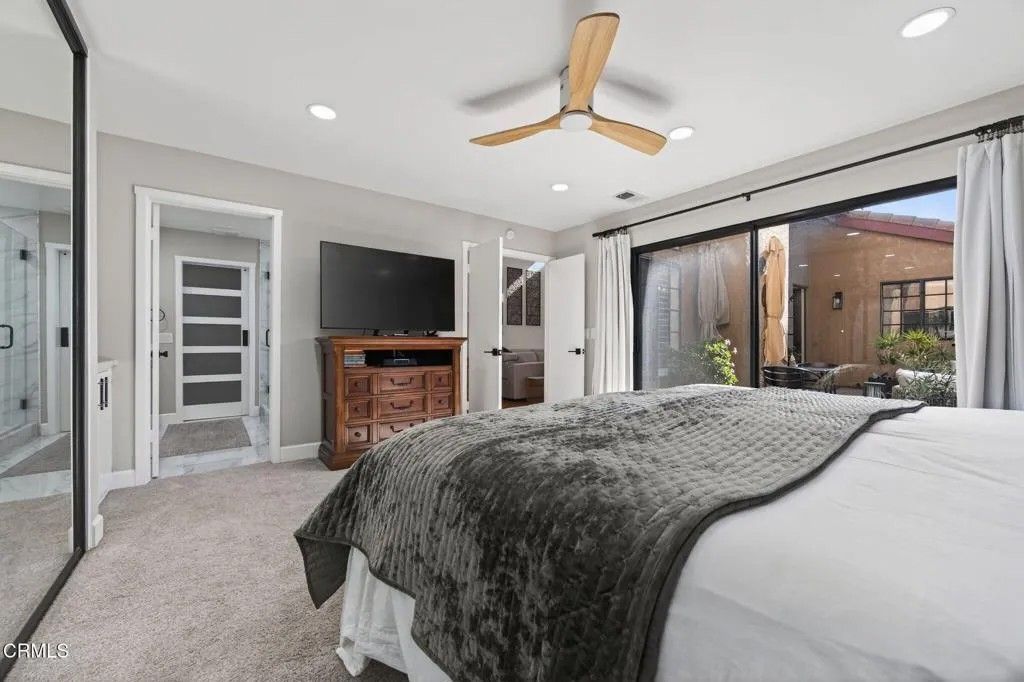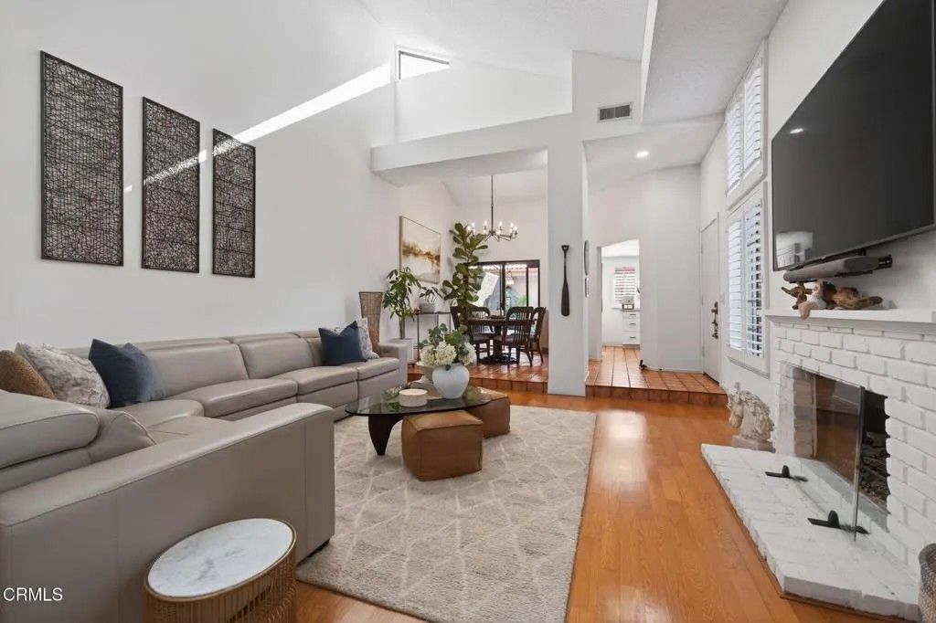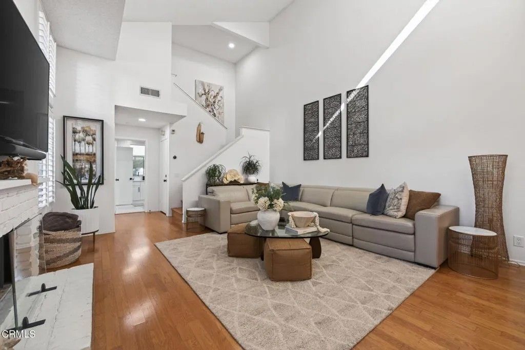 Beautifully maintained 3-bedroom, 2-bath residence located in the highly desirable Deckside Villas community, this immaculate home offers an exceptional interior corner location and reflects true pride of ownership throughout.A gated entry welcomes you into a spacious front patio--an inviting extension of the home and a perfect spot for morning coffee or evening relaxation. Inside, the light-filled main living area features soaring cathedral ceilings and a cozy fireplace, creating an open yet intimate atmosphere. From the comfort of the living room couch, enjoy peaceful sunset views as the sky shifts through warm coastal hues--an everyday luxury that makes this space feel like home.The dining area opens through sliding glass doors to a private back patio, ideal for seamless indoor-outdoor living, entertaining, or unwinding after a long day. The well-appointed kitchen showcases maple cabinetry, Corian countertops, recessed lighting, tile flooring, shutters, and quality finishes that blend functionality with timeless style.The spacious primary suite is conveniently located downstairs and is filled with natural light. It features recessed lighting, a ceiling fan, a large mirrored closet with custom built-ins, and a sliding door that opens directly to the front patio, offering a serene retreat. The remodeled en-suite bathroom boasts a walk-in shower with striking high-end finishes, including black fixtures and hardware, complemented by a quartz vanity countertop.Upstairs, two additional bedrooms include mirrored closets, ceiling fans, and wood flooring, along with a thoughtfully renovated bathroom and dedicated linen cabinetry for added convenience.Thoughtful storage solutions are found throughout the home, including built-in cabinetry in the dining area and a generous under-stair storage closet. Two private patios provide ample space for entertaining, gardening, or quiet reflection. Additional highlights include a two-car garage with built-in cabinets and direct access from the back patio, as well as a private corner location within the community.Residents enjoy access to HOA amenities including tennis and pickleball courts, a pool and spa, and beautifully landscaped grounds. Seabridge Marina is just a short walk away, offering scenic waterfront paths, dining, shopping, and a variety of coastal activities--bringing the best of marina-side living right to your doorstep.
