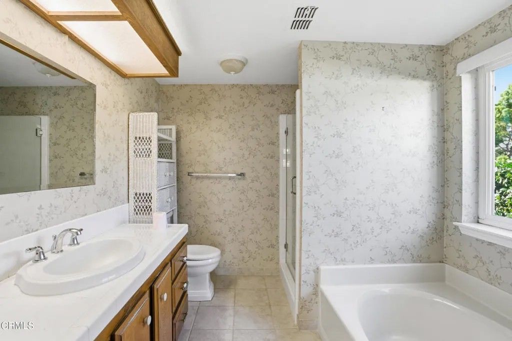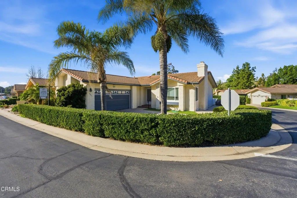 Your serene retreat awaits in this sought after 55+ gated golf course community, where luxury and nature blend seamlessly. This rare corner lot, single story 2 bedroom 2 bath home is perfectly positioned against a breathtaking mountain backdrop, offering more than just a residence, it's a lifestyle. Wake up to sweeping sunrise views over the peaks, enjoy morning coffee accompanied by the sounds of nature, and unwind with golden hour strolls along the scenic trails just in your backyard. A true standout in the community - a two car driveway, corner location, and nearby guest parking. Inside, the well maintained interior showcases neutral wood like flooring and upgraded windows. The vaulted ceilings, and a cozy fireplace create a warm and inviting living space ideal for relaxation. Recent upgrades include a newer water heater, furnace, and insulation. The dining area opens to a private, low-maintenance patio enclosed by a brand-new durable fence, perfect for enjoying the Camarillo climate. Double doors lead to the spacious primary ensuite, offering a private retreat with direct patio access for seamless indoor-outdoor living. A spacious laundry room can be converted into a bonus room or used for storage. Enjoy resort-style living with HOA amenities including a clubhouse, sparkling pool, and scenic walking trails. Hop in your golf cart and cruise to Camarillo Springs Golf Course just around the corner. Easy access to the 101 Freeway with LA and Santa Barbara 50 miles away. Embrace peaceful surroundings, modern comforts, and the ease of 55+ living - your resort lifestyle begins here.