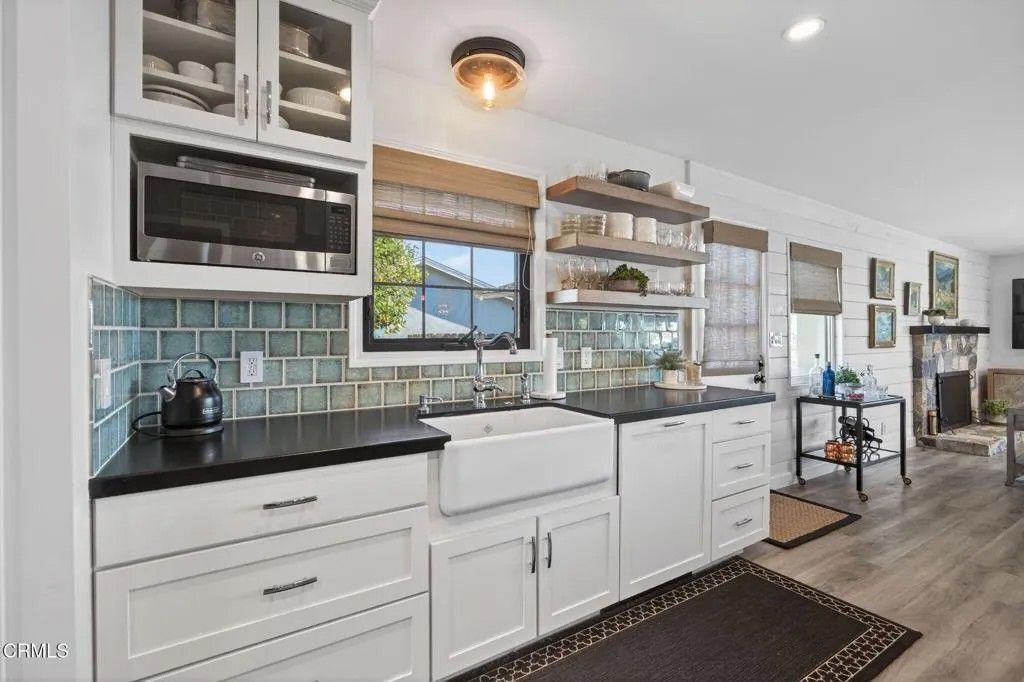 OCEAN VIEWS, ISLAND SUNSETS and SINGLE STORY COASTAL LIVING! Exceptional designer upgrades throughout. Remodeled custom kitchen with shaker cabinets, leathered granite countertops, stainless steel GE Profile and Miele appliances, farmhouse sink, walk-in pantry, pendant lighting and bar seating. Living room features a stone gas fireplace, shiplap accents and recessed lighting. Charming dutch door to front patio welcomes the ocean breeze. Nest thermostat, security system and smart garage opener. Third bedroom currently used as den/office with closet. Updated bath with skylight and designer finishes. Primary suite offers walk-in closet with built-ins. Outdoor fire feature, pavers, artificial turf, drip system and lighting. Newer plumbing, furnace, electrical and whole-house filtration. Nothing to do but move right in ... WELCOME HOME!