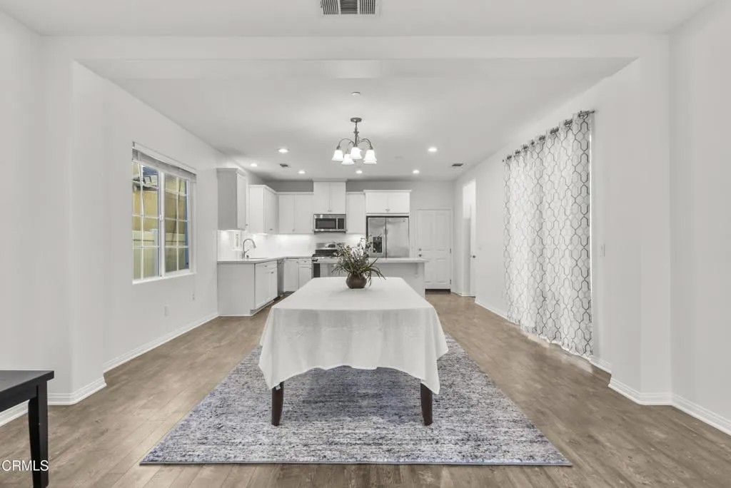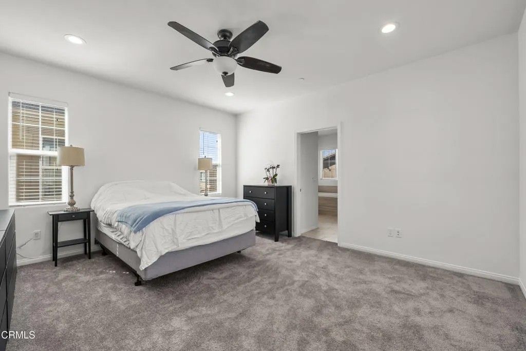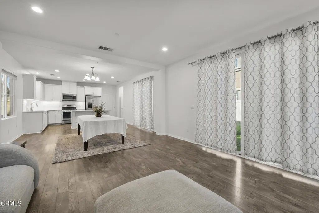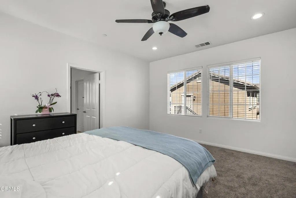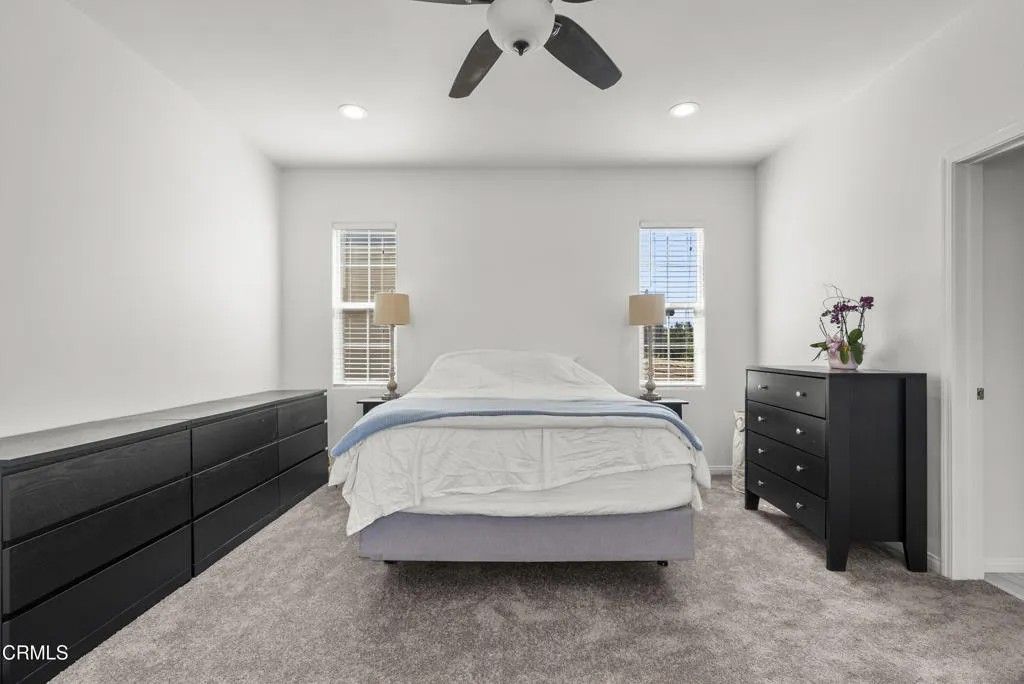 Welcome to 693 Nile River Drive, a beautifully maintained home in the highly desirable Riverpark community of Oxnard that is PRICED TO SELL!!!Built in 2017 as one of the final homes in this sought-after neighborhood, this move-in ready 5-bedroom, 3-bath residence offers the perfect blend of modern design, comfort, and functionality. Freshly painted with updated carpeting on the top level, the home features a bright, open-concept layout filled with natural light.The main level offers a welcoming living and dining space with soaring ceilings and seamless flow into the well-appointed kitchen, complete with white cabinetry, quartz countertops, stainless steel appliances, and a large center island with breakfast bar seating -ideal for both everyday living and entertaining. A full bedroom and bathroom on the first floor provide flexible living options for guests, multigenerational needs, or a private home office. The laundry room is also conveniently located on the main level. Sliding glass doors open to a private side yard, offering a low-maintenance outdoor space.Upstairs, you'll find 3 additional bedrooms, including a versatile loft conversion that functions as a 5th bedroom. The spacious primary suite serves as a relaxing retreat with a walk-in closet, dual vanities, soaking tub, and separate shower.Additional highlights include central air and heat, tankless water heater, recessed lighting with dimmer controls, ample storage, and an attached 2-car garage with overhead storage.Enjoy all that Riverpark has to offer, including parks, sports courts, walking trails, and a vibrant community atmosphere, all just moments from The Collection and newly completed Landing at RiverPark featuring shopping, dining, and entertainment options.
