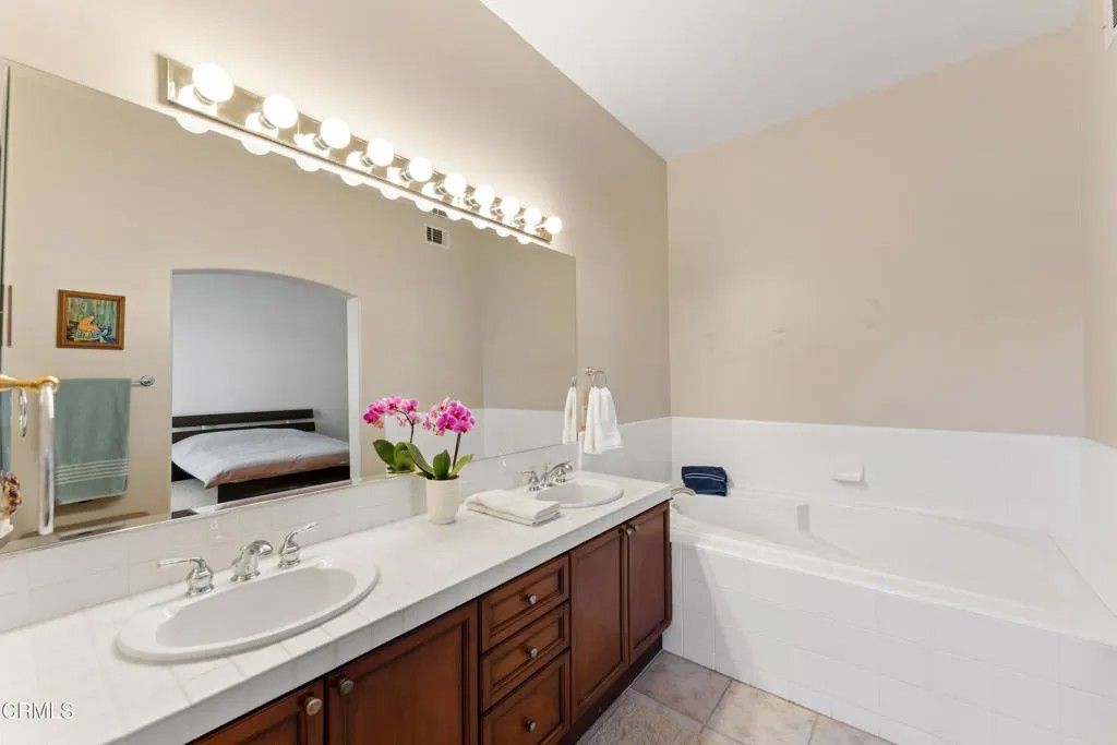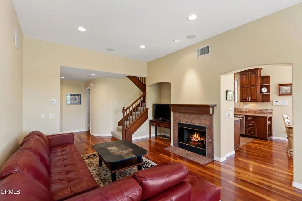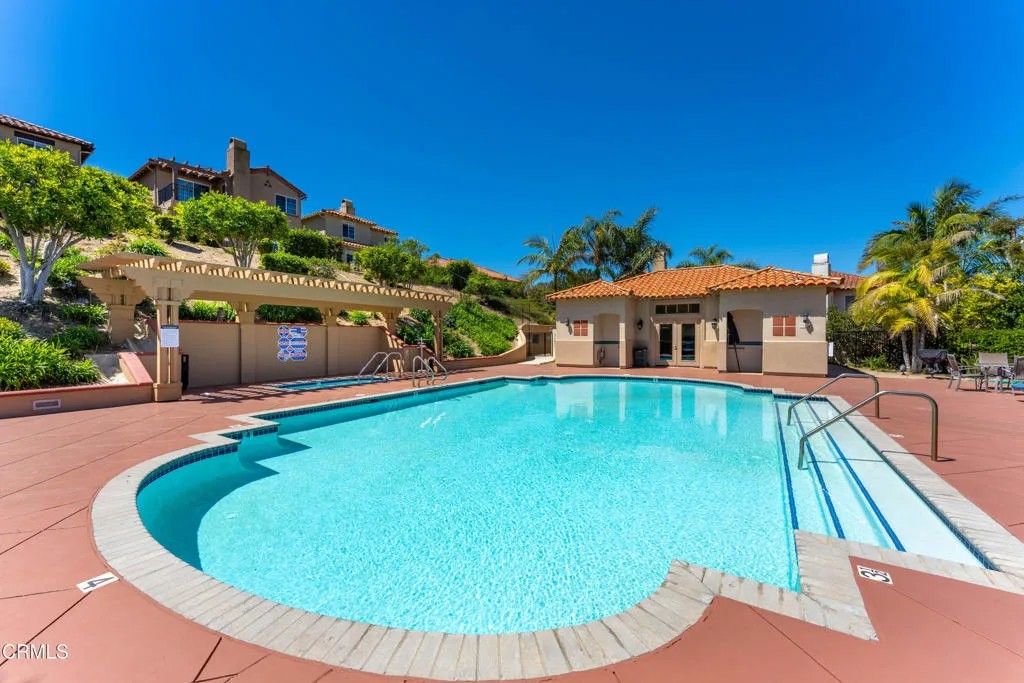 This ideal gated enclave of homes combines privacy, security and proximity to the prestigious Spanish Hills Country Club. Welcome to our Golf Villas two-story residence featuring panoramic mountain views. Rich hard wood floors compliment the beautifully upgraded chef's kitchen open to the breakfast room and patio. Other features include living room fireplace, laundry room, downstairs powder room and 2-car attached garage. The master retreat offers high ceilings, dual-vanity, water closet and soaking tub. Grab this unique opportunity to experience elevated living in a truly picturesque setting.