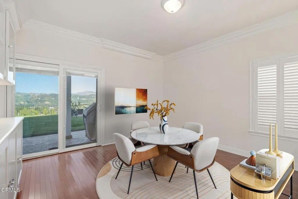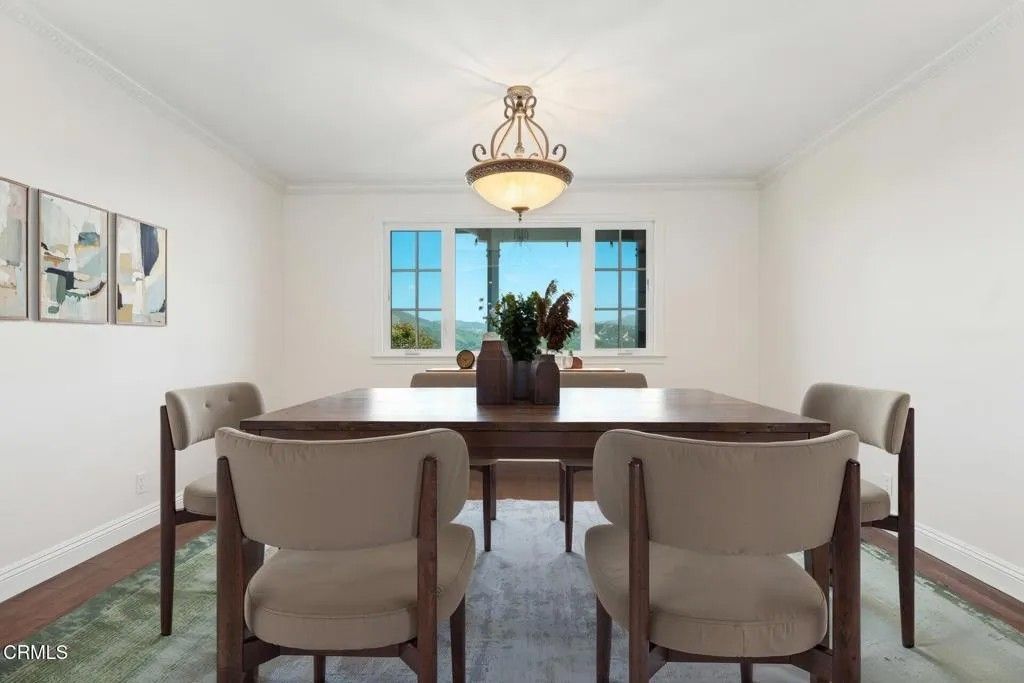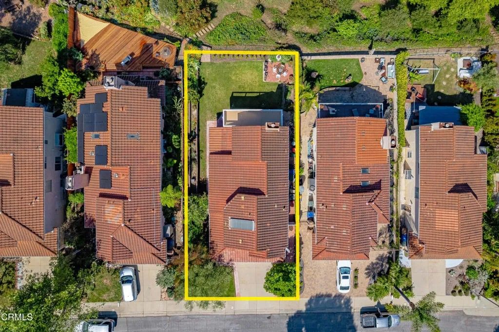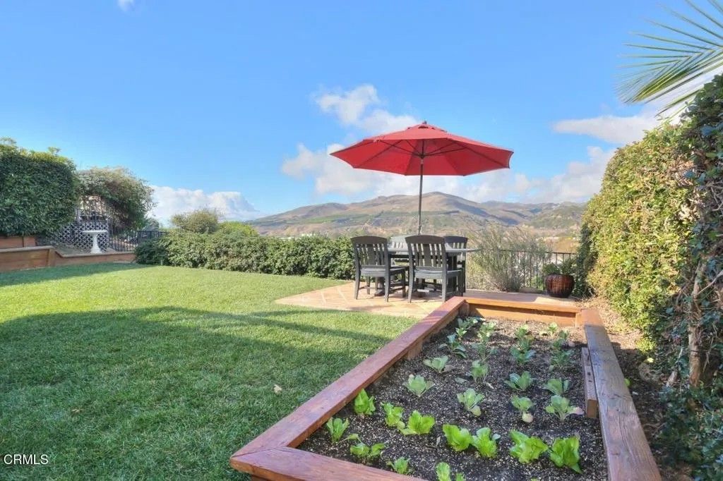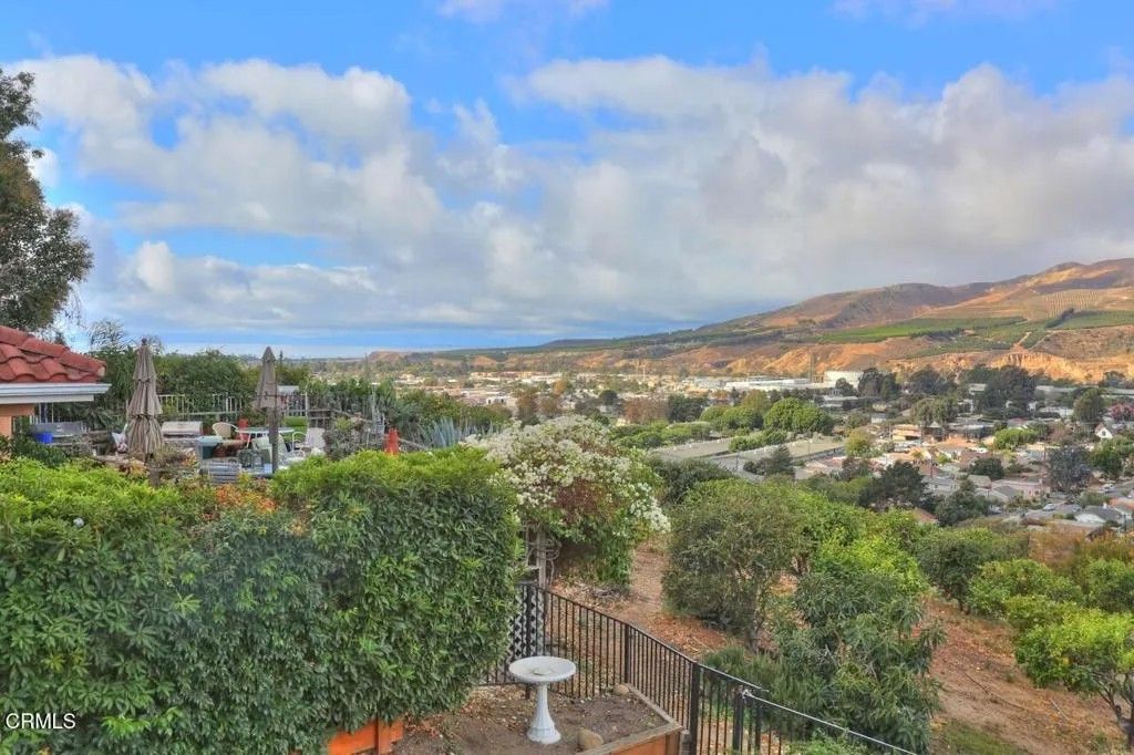 Brock Hills Beauty with Panoramic Views in West VenturaPerched high in the sought-after hills of West Ventura, this beautifully upgraded home offers breathtaking panoramic views of the mountains, ocean, Ventura River Valley, community orchard, and city below. This charming 3-bedroom, 2.5-bath residence spans approximately 1,633 square feet and showcases pride of ownership with over $175,000 in thoughtful remodeling and enhancements.Step inside to discover a light-filled interior featuring hardwood floors throughout both levels, soaring cathedral ceilings in the living room and primary bedroom, and elegant custom details including beam work, wrought iron railings, and designer tile accents. The completely remodeled kitchen is a standout, boasting quartz countertops, new appliances, and modern finishes perfect for everyday living and entertaining.All three bedrooms are conveniently located upstairs, including an inviting primary suite designed for comfort and relaxation with a custom shower and spa-like ambiance. A secondary bedroom features a private balcony and sliding doors framing beautiful ocean views--an ideal setting for a home office or creative space.The private backyard offers a peaceful retreat with scenic vistas, a covered patio with stamped concrete, raised-bed vegetable garden, and included BBQ--perfect for outdoor dining and gatherings. Additional highlights include dual-pane windows, air conditioning, an expanded dining area, and a newly epoxy-coated garage floor.Located in the desirable Brock Hills community, residents enjoy a low HOA fee of $165/month and access to a charming community orchard just below the property. Conveniently situated near top-rated schools, scenic bike paths to the beach or Ojai, and easy access to Highway 33 and the 101 Freeway, this home offers the perfect blend of tranquility, convenience, and coastal living.Don't miss this rare opportunity to own a view home in one of West Ventura's most desirable neighborhoods.