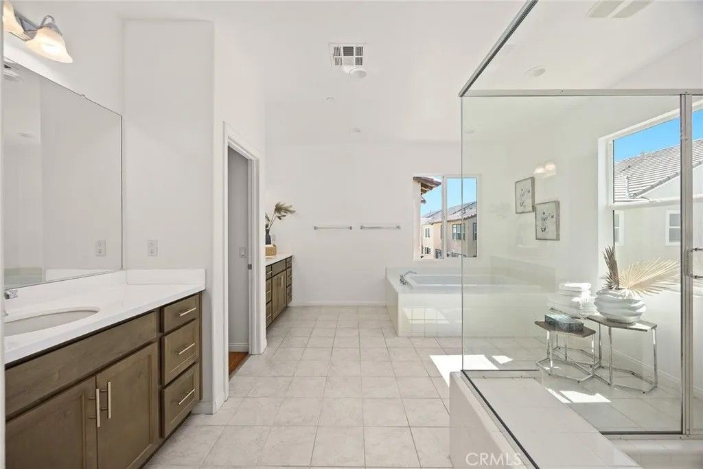 Welcome to 16114 Almond Street, located in the gated Harvest neighborhood of The Preserve in Chino. This two story home features 4 bedrooms and 4 full bathrooms, including a downstairs bedroom and bath ideal for guests or multi-generational living. The home offers quality flooring throughout and has been freshly painted. The open kitchen includes stainless steel appliances, a large island, and walk-in pantry, flowing into the spacious great room. Upstairs offers a laundry room with utility sink and a generous primary suite with dual vanities, separate tub and shower, and walk-in closet. Solar panels are installed and fully paid-off. Enjoy resort style amenities including a fitness center, pool, spa, tennis courts, theater, library, and multiple parks. Located in a well rated school district with easy access to shopping, dining, and major freeways. Don't miss the rare opportunity!!!