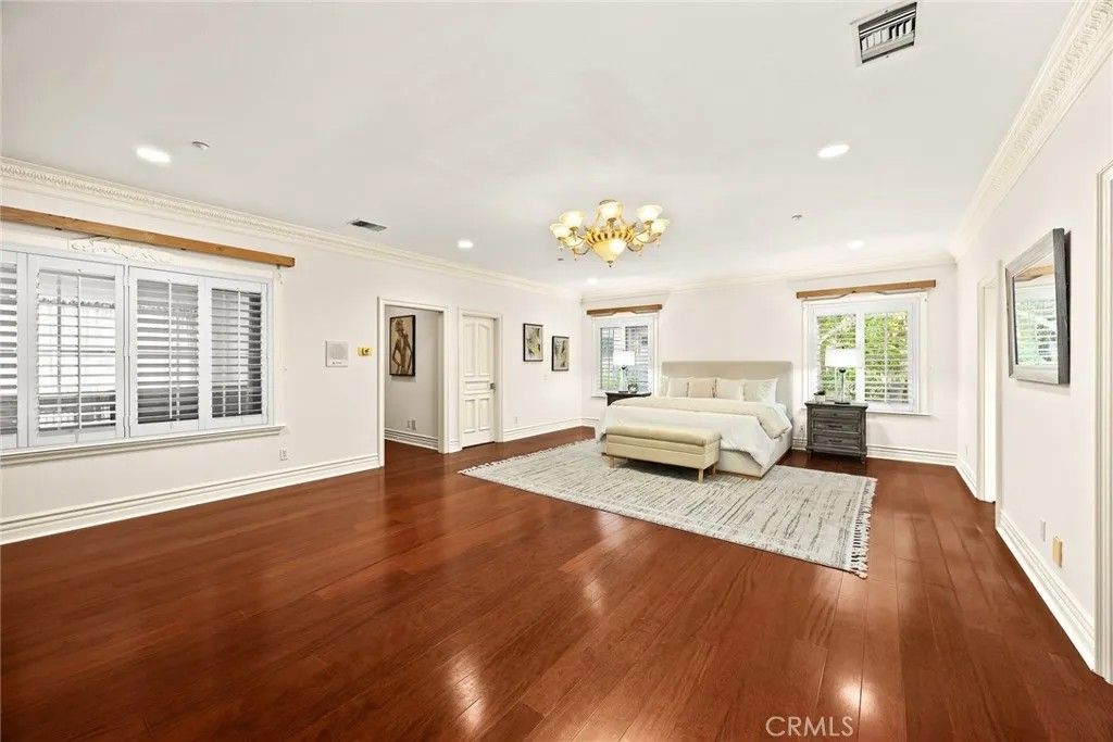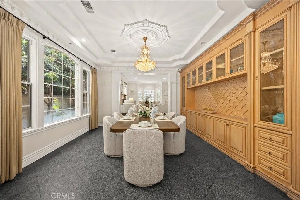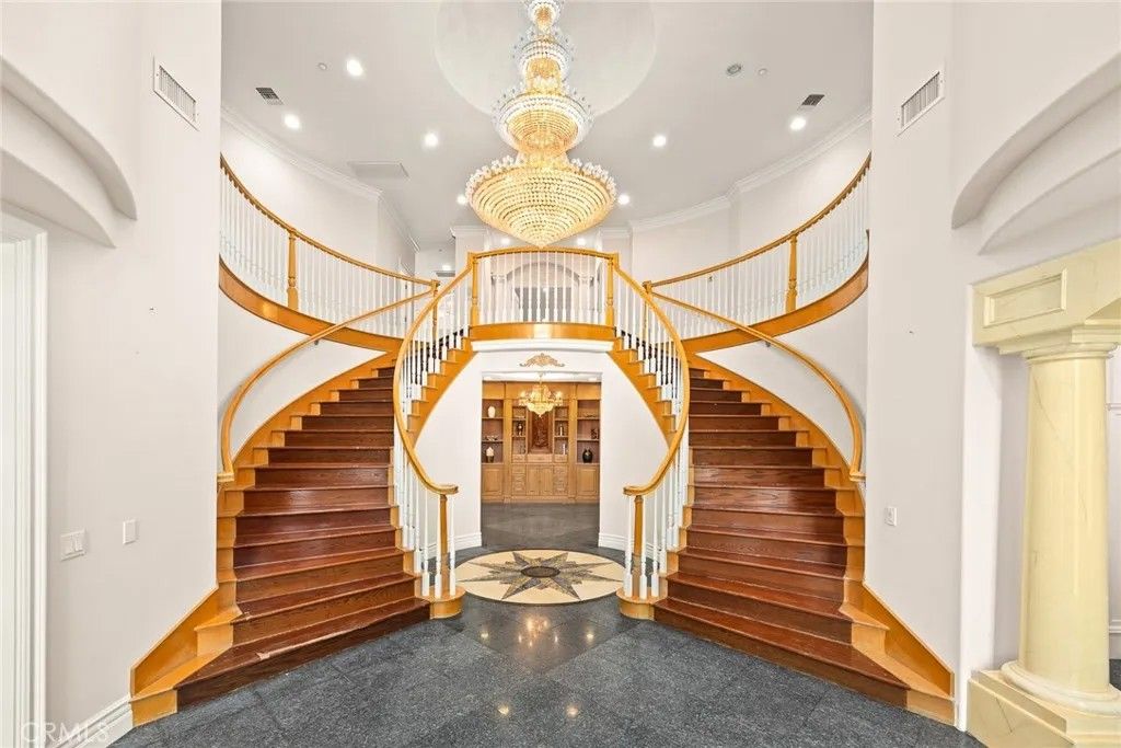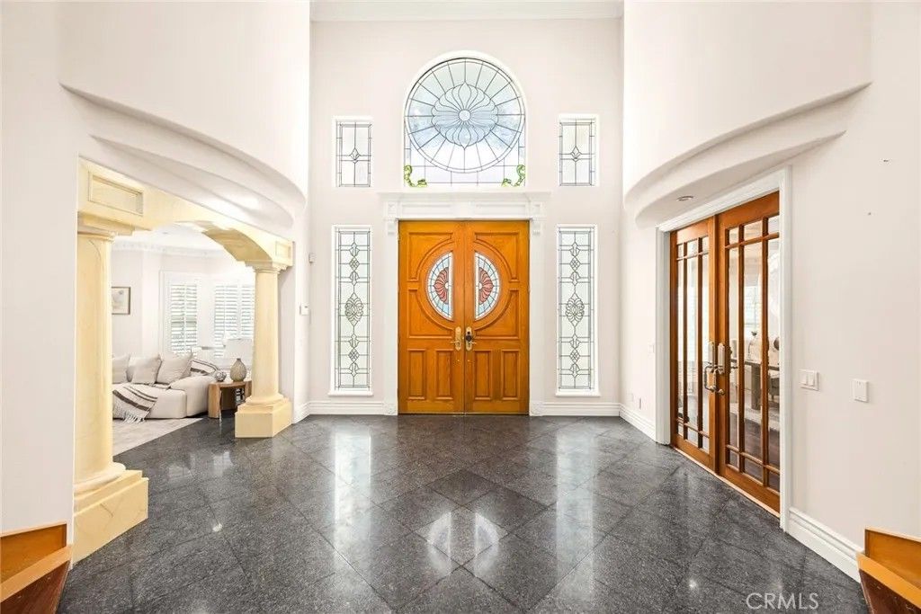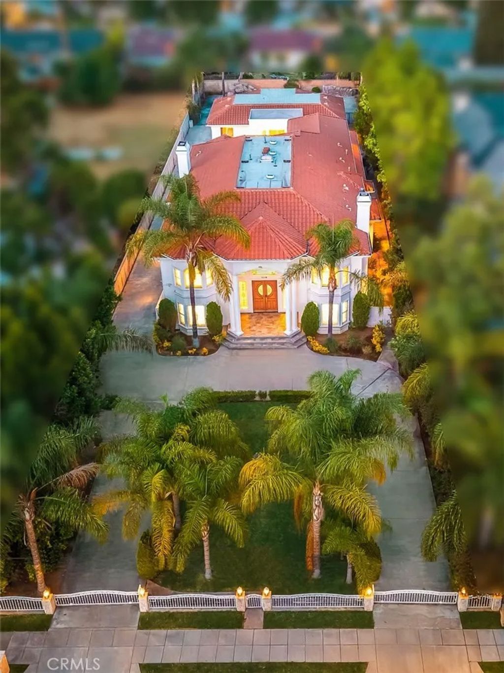 This Gorgeous & Elegant 2 story custom estate located on Beautiful and Quiet neighborhood with distinguished Arcadia School District. It features private security gated, stately 2 column studded entrance leads to a grand foyer under cathedral ceiling featuring a magnificent crystal chandelier. Downstairs of the main house: wood-paneled library; marble-floored living room; large newly remodeled built-in shelf for ample storage spaces . Family room with a newly build wet bar connected to the fully remodeled gourmet kitchen behind dining room and a fully remodeled separate wok kitchen. 2 bedroom suites, plus a 1/2 bath as the powder room for guest. Upstairs: 2 hard wood staircases connected downstairs; 4 bedroom-suites with common area for study or recreation; Jacuzzi tub, steam room, 3 walk-in closets and retreat area inside the master suite against with beautiful view of San Gabriel mountains. Palm trees surround the detached guest house(1500 sqft) with permit for entertainment , Sparkling pool and water fountain. Refinements such as marble, stone, custom-made cabinetry, drapes and built-ins are evident throughout with many stained-glass windows. Front yard features circular driveway and garden with year-round roses and fruit trees. 3-car attached garage plus plenty of car parking space. Walking distance to schools, super-market and multi-cultural eateries. A Great opportunity to own this Luxurious Home !!!