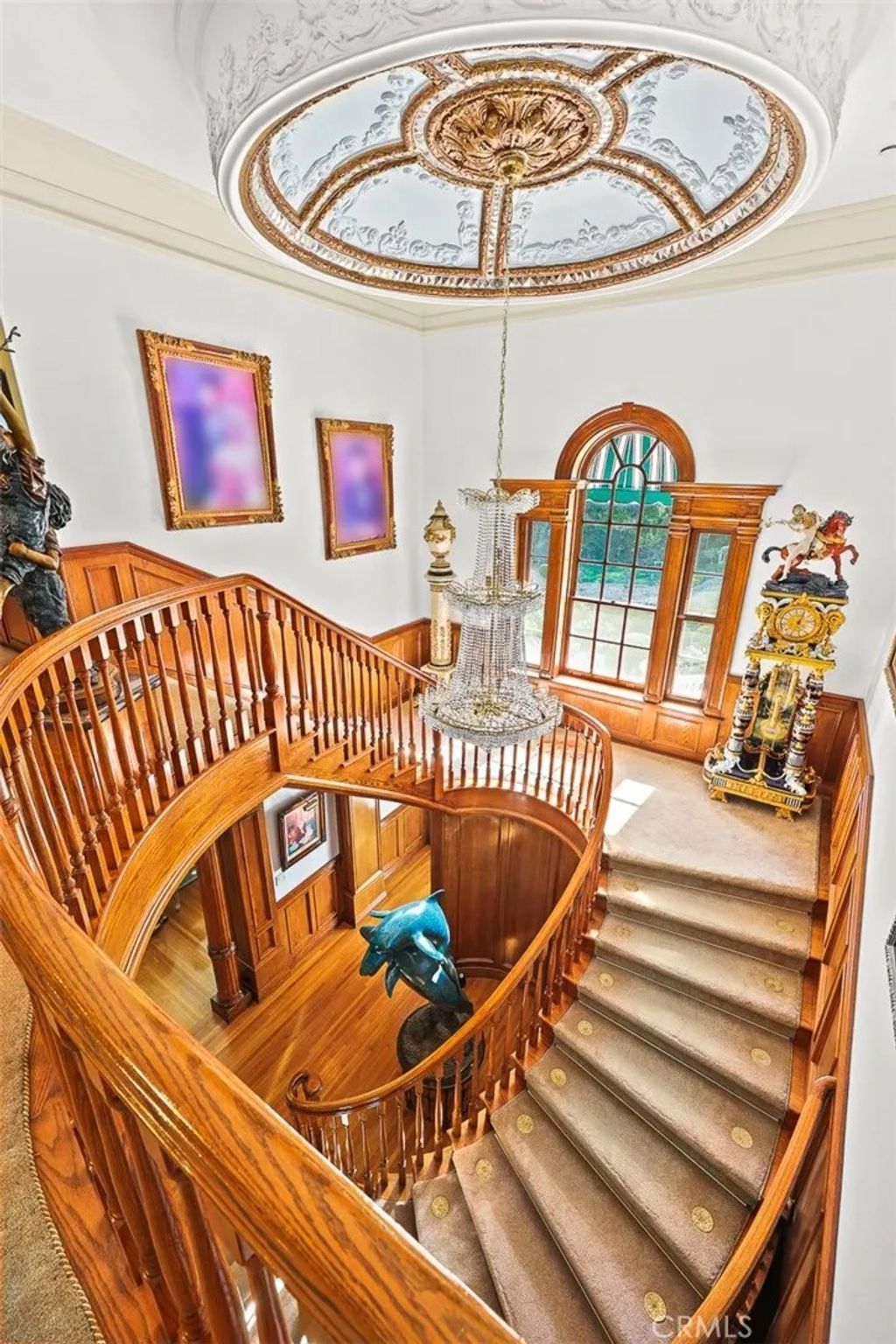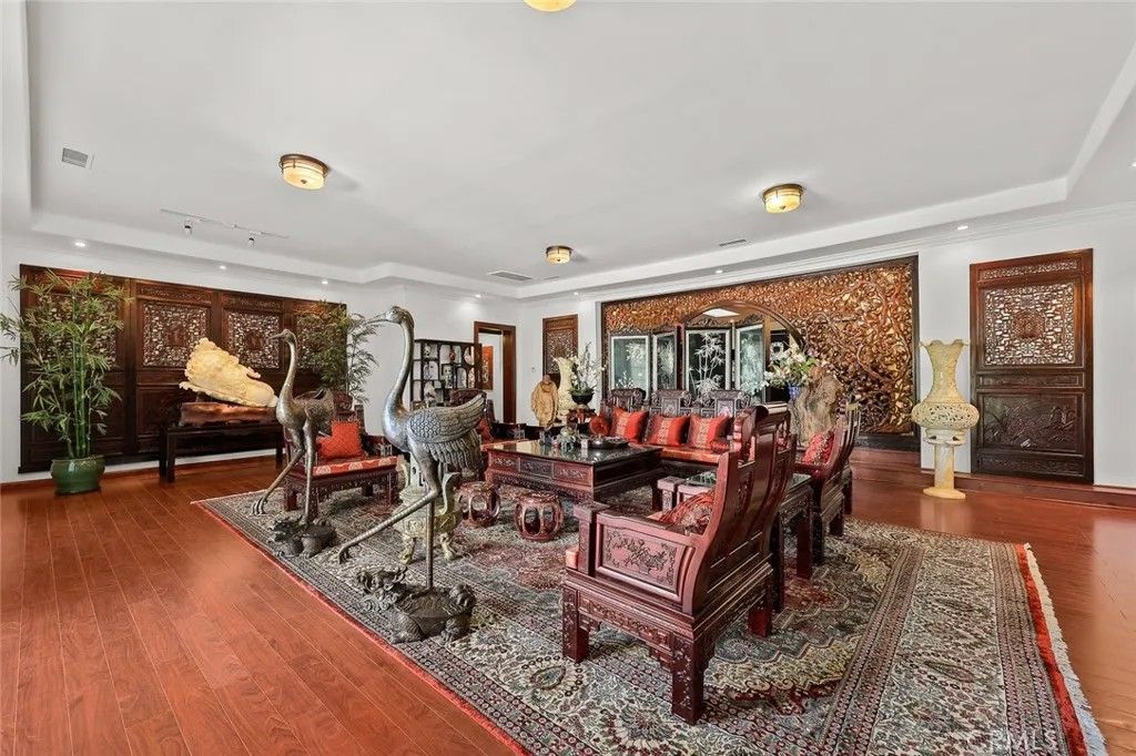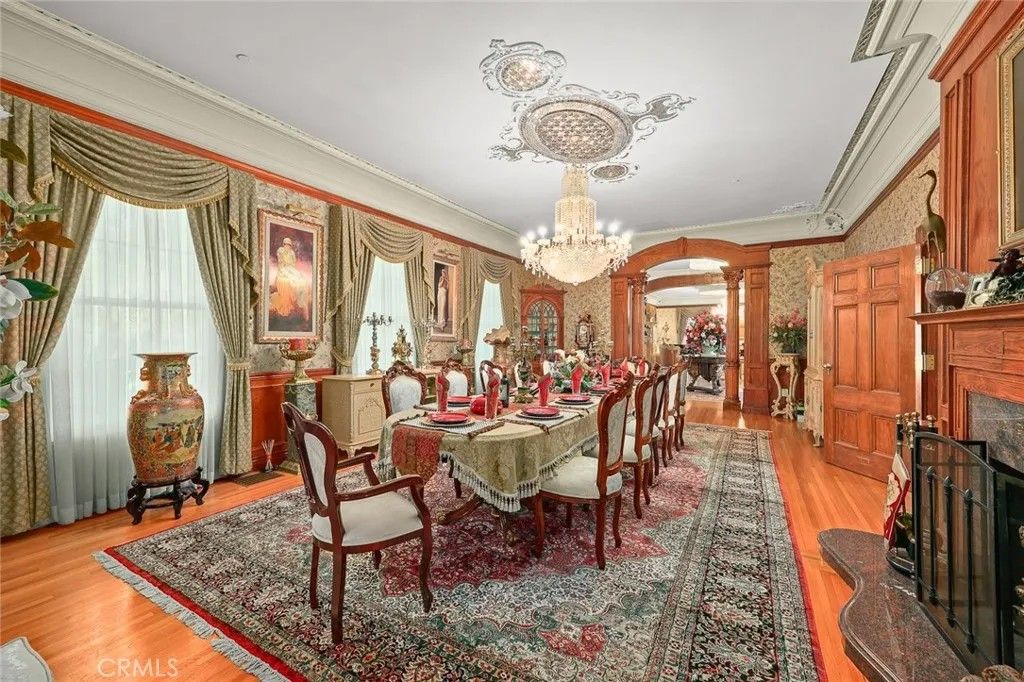 Located in the prestigious estate area of San Marino, this distinguished Georgian Colonial residence offers a rare blend of timeless architecture, refined luxury, and notable historical provenance. Originally constructed in 1918, with historical accounts attributing its origins to Henry E. Huntington, founder of the Huntington Library and Huntington Hospital, the property encompasses approximately 10,458 square feet and has been meticulously maintained, preserving its architectural integrity while incorporating modern amenities. Sited on an expansive 2.29-acre parcel, the property offers exceptional land value and usability, complemented by a long, private driveway with ample on-site parking capable of accommodating large gatherings with ease. Set behind wrought-iron gates and mature landscaping, the residence enjoys exceptional privacy and a strong sense of arrival. The grand interior features soaring 12-foot ceilings, elegant chandeliers, rich wood detailing, and graciously scaled formal spaces, with an elevator and sweeping staircases providing access to all levels. Designed for both formal entertaining and comfortable daily living, the residence offers a thoughtfully balanced floor plan. The primary suite serves as a private retreat with a jacuzzi tub, walk-in shower, expansive walk-in closet, and a separate sitting area, while six additional ensuite bedrooms provide ample comfort and privacy. Formal living areas include a grand dining room, stately library, conference room, and a private cinema, complemented by a fitness room, massage and barber room, multiple wet bars, and an extensive wine cellar. The grounds are designed to feel serene and impressive, featuring multiple balconies and terraces ideal for entertaining, along with resort-style amenities including a pool with waterfall and lighting, tennis court, cabanas, koi pond, and a Japanese-inspired tea house. Garden pathways, a gazebo, and secluded seating areas further enhance the landscaped grounds. Additional improvements include a six-car garage, maids quarters with two ensuite bedrooms, and a spacious two-story guest house. Fireplaces throughout the home and zoned central air conditioning provide year-round comfort. Located within the award-winning San Marino School District, this exceptional estate presents a rare opportunity to acquire a property of this scale, land value, privacy, and historical character in one of Southern Californias most desirable communities.