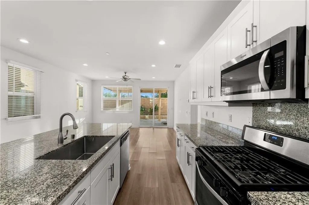 Situated on a quiet cul-de-sac in the heart of Eastvale, this well-designed two-story residence offers approximately 2,895 square feet of living space with 4 bedrooms and 3 bathrooms. A desirable main-level bedroom and full bath provide flexibility for guests or multigenerational living. The thoughtfully planned interior features an open layout that connects the main living areas, creating a comfortable and functional flow for everyday living. The kitchen serves as a central gathering space, featuring an oversized island and ample cabinetry, and opens to the adjacent family roomideal for entertaining or casual relaxation. Upstairs, a spacious loft provides versatile use options such as a home office, media area, or playroom. The primary suite offers generous proportions, dual vanities, and a walk-in closet, while the additional bedrooms provide comfortable accommodations. The backyard includes a covered patio, offering a low-maintenance outdoor retreat. Additional highlights include an upstairs laundry room and direct access to the attached garage. Located within the CoronaNorco Unified School District, this home enjoys convenient access to nearby parks, shopping centers, dining, and major freeways including the 15, 60, and 91, making commuting throughout the Inland Empire and beyond both efficient and convenient.