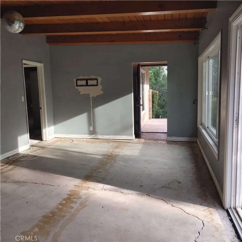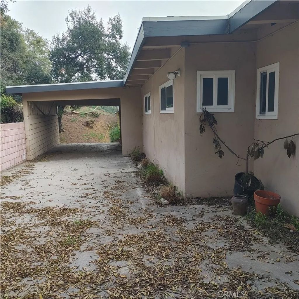 Opportunity knocks with this single-family fixer tucked away in the desirable hills of Glendora, offering privacy, space, and significant upside. Situated on a large lot with a private drive and no HOA, this property presents an excellent value-add opportunity for investors or buyers looking to customize their dream home. The expansive lot includes an easement area with potential for RV parking and/or future ADU development (buyer to verify). By the carport is a 16 foot long workshop shed. Fresh exterior paint and dual-pane windows provide a solid starting point, while a peek-a-boo city lights view can be easily restored with selective tree trimming. Inside, the home features granite kitchen countertops, natural wood beam ceilings, and a dramatic dual-sided, floor-to-ceiling fireplace serving both the living and dining rooms. The carpet has been removed throughout, revealing all rooms are ready for your choice of new flooring. The cement floors have visible cracks in most rooms, it's a fixer and needs TLC. The interior rooms are also ready for your handy painting skills. The 2 original bathrooms retain classic tile with two walk in showers and are in good overall condition. By the second back door there is a huge laundry room with a sink and a pantry. This is a true fixer-upper with strong bones, character, and location, ideal for renovation or redevelopment. A rare chance to create value in a sought-after private hillside setting. Walk through video available.
