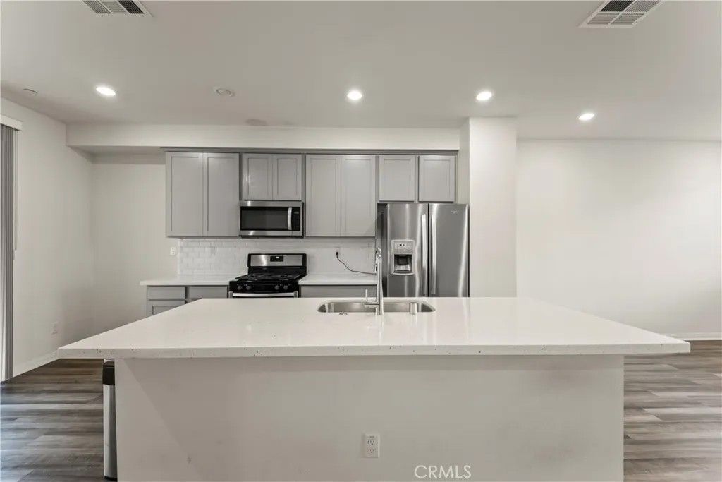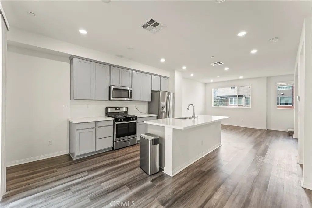 Modern Northridge Residence in Planned Community Built in 2020, this stylish 3-bedroom, 3.5-bath tri-level home offers 1,657 sq.ft. of beautifully designed living space in a desirable planned unit development in Northridge. The lower level features a private bedroom and full bath perfect for guests, a home office, or multi-generational living. On the main level, enjoy an open-concept layout with a stunning granite kitchen, rich mocha cabinets, and stainless steel appliances including a refrigerator, dishwasher, microwave, and freestanding oven. The oversized granite island with USB ports provides additional seating and prep space. The third level offers two ensuite bedrooms. The primary suite includes a luxurious bath with dual sinks, while the secondary bedroom features its own private full bath. Energy-efficient features include seller leased solar panels, dual-pane windows, a smart 2-zone AC controller, and a tankless water heater keeping comfort high and utility costs low. This Mosaic home is located minutes from the 118, 101 and 405 Freeways and convenience all in one place welcome home! Low HOA of $104 monthly