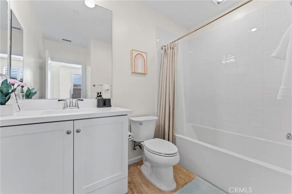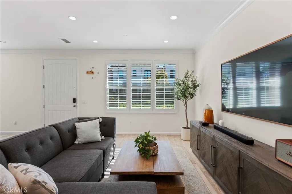 (Major $120,000 price reduction! Exceptional opportunity-seller is highly motivated and ready to make a deal.)Welcome to this absolutely stunning and rarely available Entrata Plan 2 condominium in the prestigious Orchard Hills community of Irvine. Perfectly situated along the picturesque greenbelt, this beautifully maintained 2-bedroom, 2.5-bath residence with a tech loft offers a unique and highly desirable layout with no neighbors above or below, providing exceptional privacy and comfort. As you step inside, you are greeted by a bright and inviting open-concept great room featuring elegant wood-like tile flooring and plantation shutters, creating a warm and sophisticated atmosphere. The thoughtfully designed kitchen is the heart of the home, complete with a spacious center island, upgraded quartz countertops, abundant cabinetry, custom decorative backsplash, and premium stainless-steel appliances, all highlighted by two stylish pendant lights. Step outside to the private outdoor atrium, a peaceful retreat perfect for weekend BBQs, morning coffee, or intimate evening gatherings under the California sky. Upstairs, youll find a generous tech loft, ideal for a home office or study area, along with two spacious en-suite bedrooms and a conveniently located individual laundry closet. The luxurious primary suite offers French doors that open to a large private balcony, where you can enjoy breathtaking mountain and greenbelt views. The spa-inspired primary bathroom features dual vanities, a soaking tub, a separate shower, and a large walk-in closet. Additional highlights include an oversized 2.5-car garage, offering incredible flexibility for a home gym, workshop, or additional storage. Residents enjoy access to resort-style community amenities, including two pools, a clubhouse, playground, and sports courts, all within the highly acclaimed Irvine Unified School District, serving Canyon View Elementary and Northwood High School. As you walk through this home, youll quickly notice the many thoughtful details and meticulous care throughout, reflecting the homeowners dedication to creating a warm, welcoming, and well-loved living space. This beautiful home truly offers the perfect blend of comfort, style, and locationa rare opportunity that wont last long.