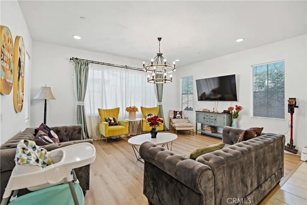 Beautiful and spacious home featuring 5 bedrooms and 4 bathrooms, including a convenient first-floor bedroom and full bathroom, perfect for guests, extended family, or a home office.The home offers a bright and open floor plan with upgraded flooring in the living room, an upgraded kitchen countertop, and modern ceiling lights and updated lighting throughout the entire home, creating a stylish and comfortable living space. The functional kitchen and open living areas are perfect for both everyday living and entertaining. Upstairs features generously sized bedrooms, including a spacious primary suite designed master bedroom for comfort and privacy. A suite and two other good sized bedroom with a den. A 3-car garage provides ample parking and storage space. Conveniently located near shopping, parks, schools, and major freeways, offering both comfort and convenience.