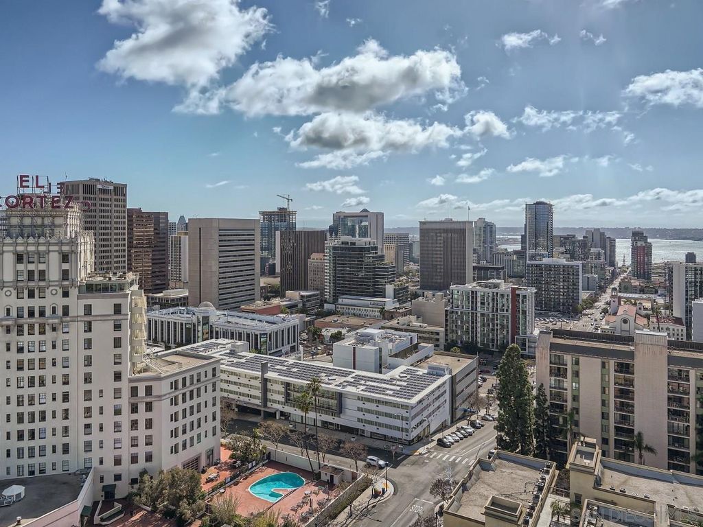 WOW-the 21st Floor facing WEST*This "Discovery" Beauty Boasts VIEWS, VIEWS and VIEWS...Over 200 degrees from the Coronado Bridge to El Cortez Hotel to San Diego Bay & Pt Loma to Balboa Park and Mountain Peaks to the East*You can even watch the planes descending into Lindbergh from your Private Balcony with Wonderful Ocean Breezes*Extremely Open Floorplan with Floor to Ceiling Windows & Gleaming Hardwood Floors*Separate Reading/Viewing/Office Rm off Living Rm*2 side by side assigned parking spaces (285/286)*Outstanding Community Facilities...10th Floor: Pool/Spa/Gym/Social Area...2nd Floor: Courtyard/Business Center/Conference Rm*Separate Storage Area (25sqft)*Enjoy Free Shuttle (FRED) to Petco/Seaport Village/Gaslamp/Etc