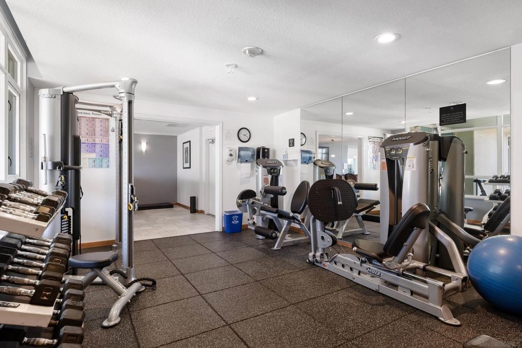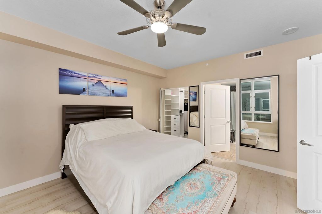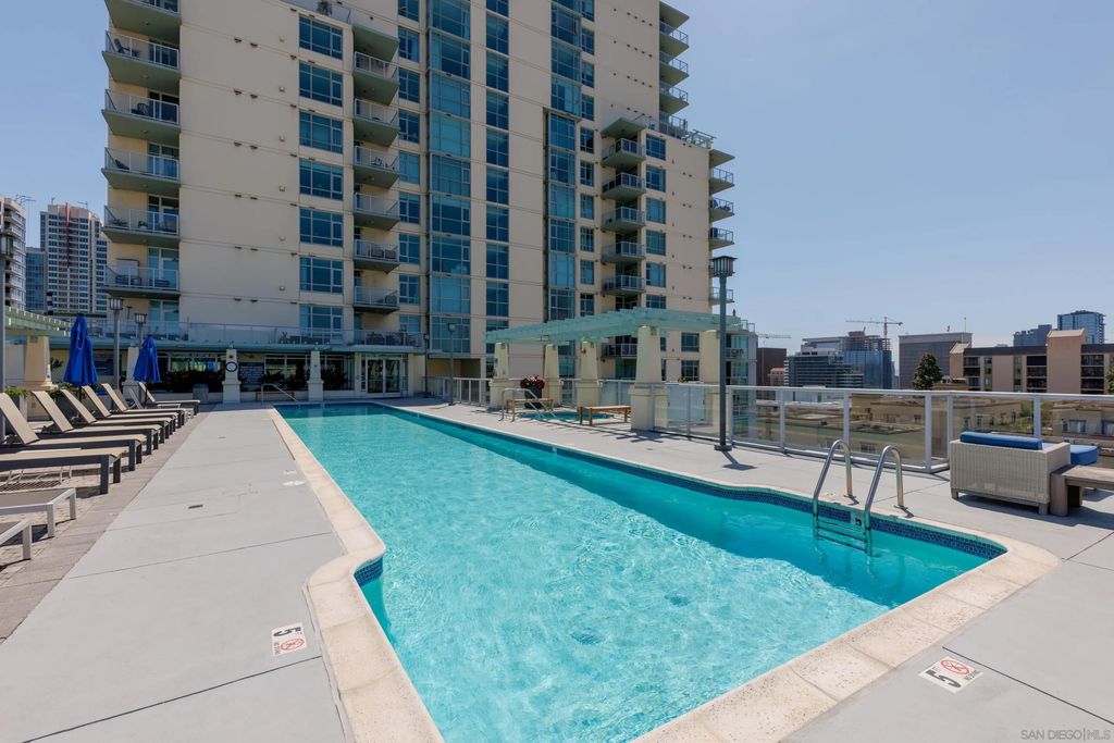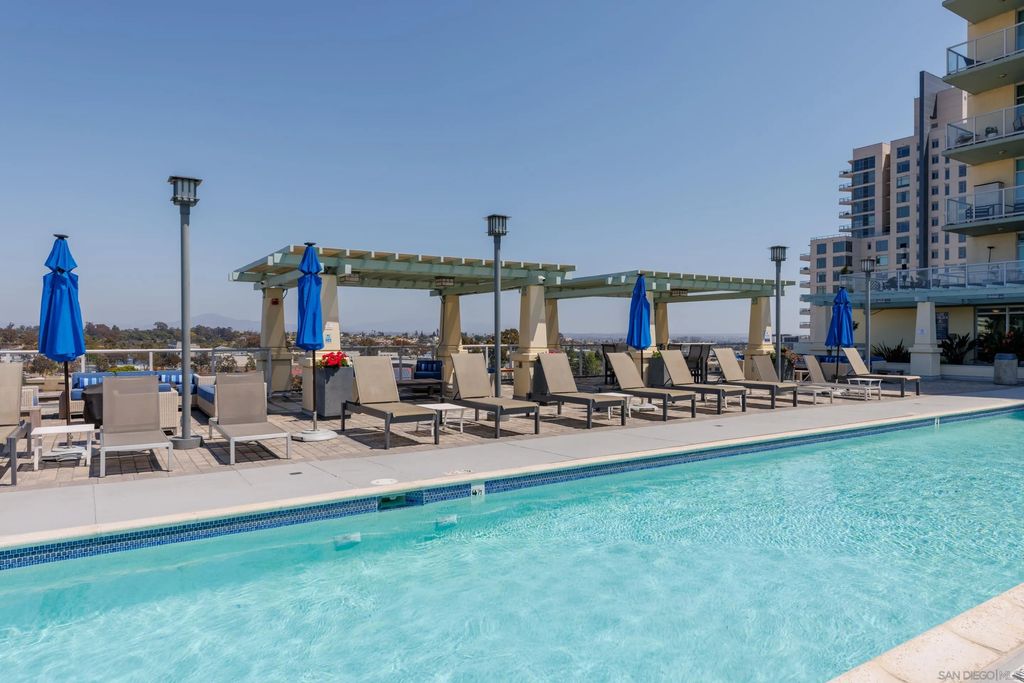 Bright, Quiet, and Updated"”Refined Downtown Living at Discovery Welcome to Unit 701 at Discovery in Cortez Hill, a beautifully refreshed corner residence offering natural light, interior-facing tranquility, and modern style. Situated on the quiet side of the building, this 2-bedroom, 2-bath home enjoys peaceful courtyard and soft city views through floor-to-ceiling windows and French doors that open to a private balcony. Recent upgrades include brand new luxury vinyl plank flooring, fresh designer paint, and newly painted cabinetry that gives the space a clean, contemporary feel. The open-concept living and dining area features a cozy fireplace and a built-in mini wine fridge, while the functional layout includes an in-unit washer/dryer, assigned parking, and a separate storage unit. The spacious primary suite includes a generous walk-in closet with custom built-ins, and both bedrooms are comfortably sized with great natural light. Discovery offers full-service amenities with a recently remodeled rooftop pool and spa, upgraded fitness center with new equipment, stylish lounges, firepits, and 24-hour concierge and security. Residents also benefit from a professionally managed, well-established HOA and a yearly renewable guest street parking permit from the City of San Diego. Located in the peaceful, tree-lined neighborhood of Cortez Hill"”close to Little Italy, Balboa Park, and downtown hot spots"”this move-in-ready home offers the best of urban living with a sense of calm. Welcome to Discovery at Cortez Hill, where modern comfort meets refined downtown living in this beautifully updated 2-bedroom, 2-bath corner residence. Located on the 7th floor, Unit 701 features brand new luxury vinyl plank flooring, fresh designer paint, and a light-filled layout that offers both style and functionality. Enjoy floor-to-ceiling windows, a private balcony with peaceful city and courtyard views, and a split-bedroom design ideal for privacy or remote work. The spacious primary suite includes a generous walk-in closet with custom built-in shelving, perfect for streamlined storage. Discovery is a full-service luxury building offering a recently renovated amenities floor, including a resort-style rooftop pool and spa, upgraded fitness center with new equipment, stylish lounge areas, and firepits for relaxed evening gatherings. With 24-hour concierge, security, and secure parking, every detail is designed for convenience and peace of mind. Located in the charming, tree-lined neighborhood of Cortez Hill, you're just minutes to Little Italy, Balboa Park, and the vibrant energy of downtown. Move-in ready with modern upgrades"”discover elevated urban living at Discovery.