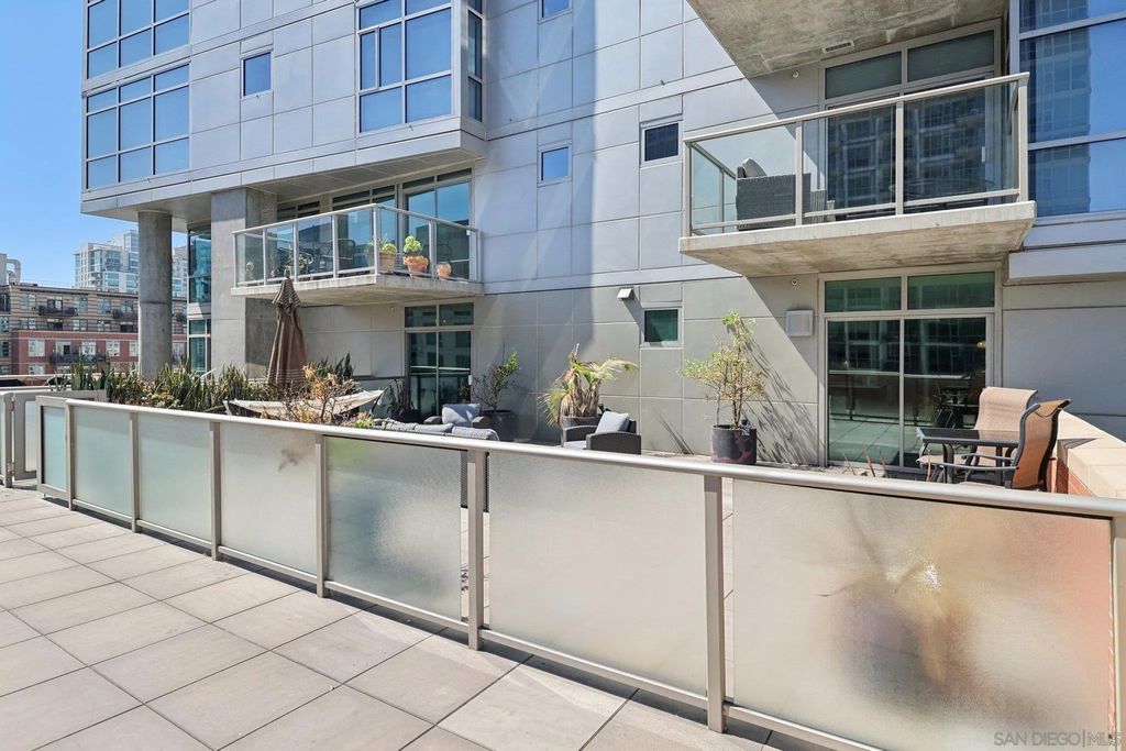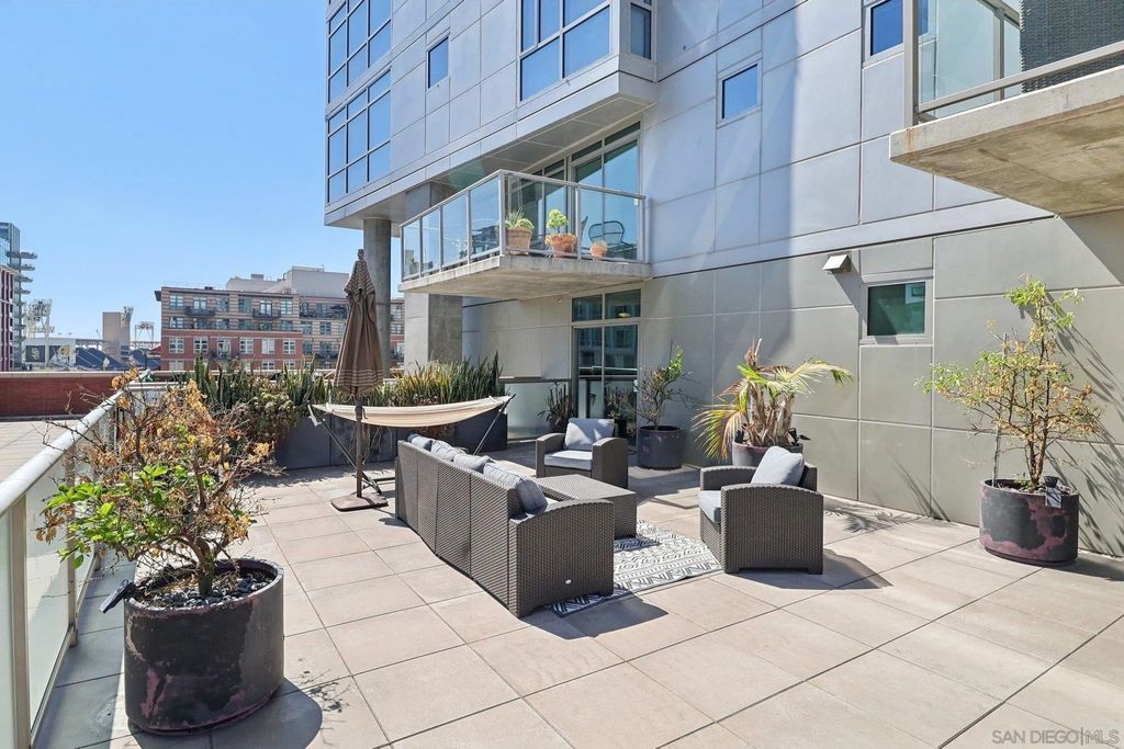 Welcome to this entertainer's dream in the heart of downtown! A truly one-of-a-kind corner unit boasting an expansive 750 sq. ft. private patio, perfect for soaking in the morning sun, relaxing in the afternoon shade, and entertaining under the city lights. With over 1,858 sq. ft. of combined indoor/outdoor living space, this home is larger than many 2-bedroom units and offers a rare blend of luxury, space, and functionality. Step inside to find an updated kitchen and bath, soaring floor-to-ceiling windows, and high ceilings that flood the home with natural light and frame spectacular city skyline and bay views. The open floor plan includes a spacious living area with a large screen and projector setup, an extra nook ideal for a home office or den, and ample storage throughout. Additional features include upgraded stainless steel appliances, 2 parking spaces located across from one another, and a private storage room. All this, just 2 blocks from Petco Park and 3 blocks to the historic Gaslamp Quarter. Must see to appreciate!