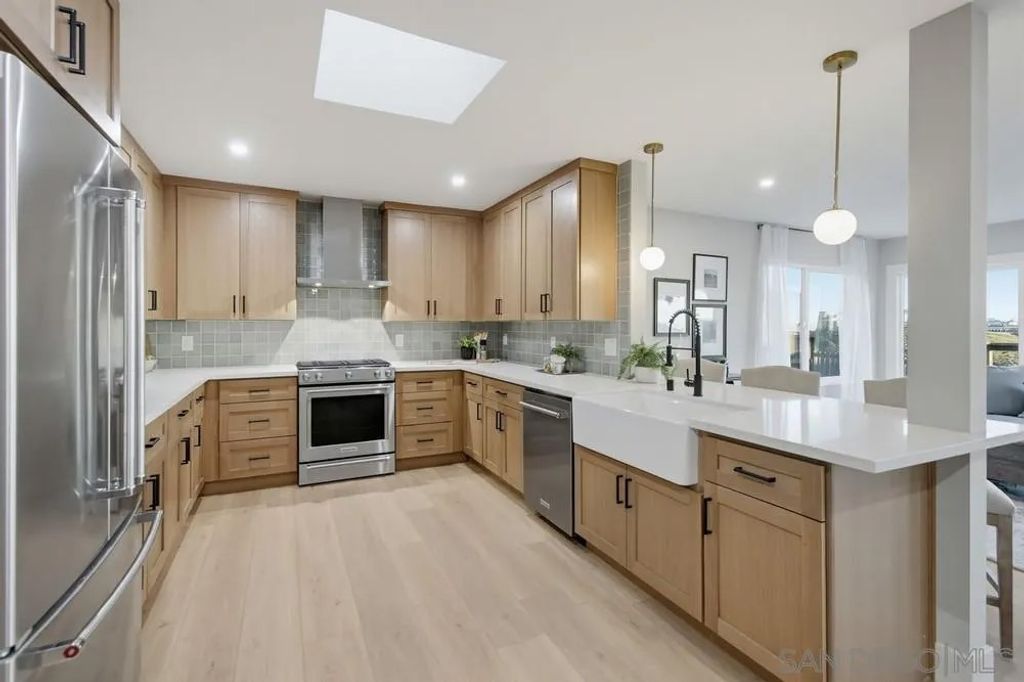 Perched along a quiet, coveted street in prestigious Bay Park, enjoy commanding views of the breathtaking canyon, University of San Diego, bay, ocean, and Point Loma from an elevated, oversized 1/4-acre estate. This exquisitely reimagined residence has been curated from top to bottom, blending refined craftsmanship with timeless sophistication. Every detail has been elevated, including a new roof, dual-pane windows and sliders, new air conditioning system, wide-plank flooring, an upgraded foundation, and a new sewer lateral. The sun-drenched, designer kitchen is a true centerpiece, showcasing custom cabinetry, quartz countertops, bespoke tilework, and sleek, high-end appliances, all flowing seamlessly into a dramatic, view-framed family room overlooking your backyard paradise. The outdoor grounds are equally refined, featuring professionally designed drought-tolerant landscaping, a newly constructed view deck, and an elegant pergola"”ideal for private relaxation or upscale entertaining against a backdrop of sweeping coastal vistas. Both bathrooms have been transformed into spa-level retreats with custom designer tile, premium fixtures, and elevated finishes throughout. A rare Bay Park offering, combining privacy, panoramic scenery, and modern luxury on an expansive lot, just moments from beaches, fine dining, and downtown San Diego.