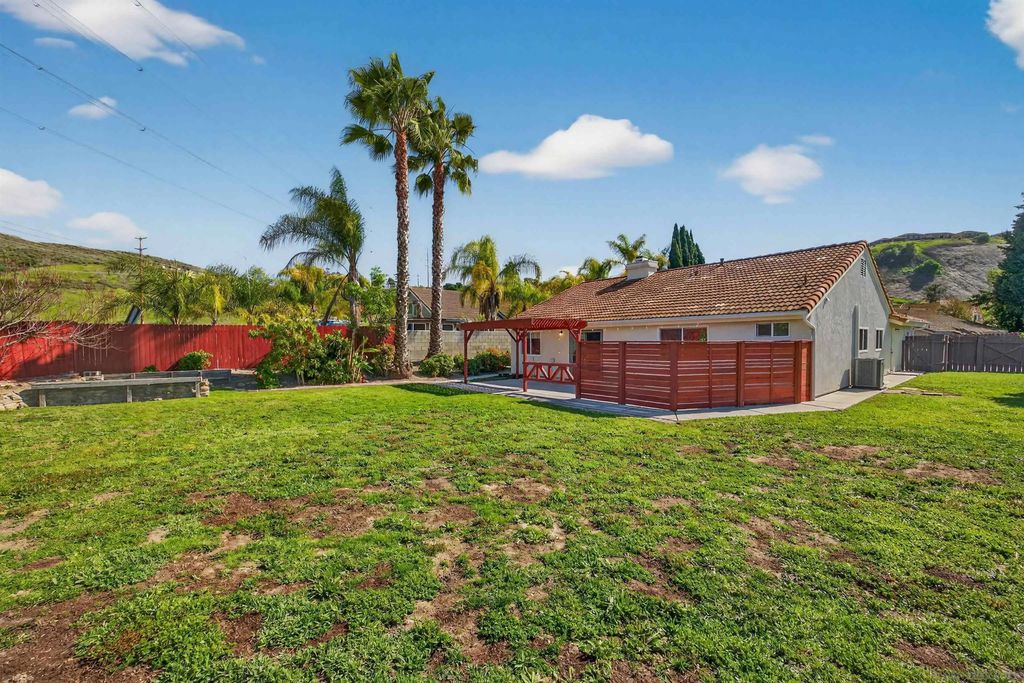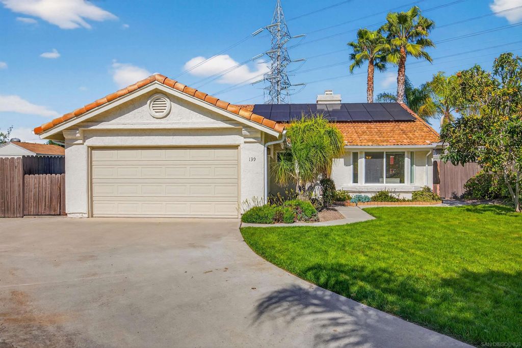 WHAT'S NEW?? Well - a ton of things in this home! NEW roof, PAID solar, NEW gutters, NEW HVAC, NEW furnace, NEW lighting, NEW outside drainage, and even more new stuff! This single-story, single family home is on a set-back lot on a HALF ACRE and HOA gives permission for ADUs. The driveway alone can pack in nearly 6 cars - lots of privacy with this layout. The 4 bedrooms are perfect for parents and kids while the single-story makes it ideal for extended family, as well. Vaulted ceilings in the main living space create a wide open and bright vibe. There is even a 2-way fireplace so you can have a cozy dinner and bop over to the family room for some cozy tv time. A small casita in the backyard has electricity and would be ideal for working out, an office or a fun playroom for the kids! And yep - you ARE allowed to park your RV there! Only 15 minutes from the Oceanside Pier - you gotta come see this house!