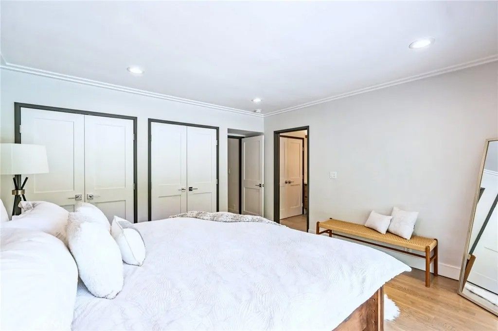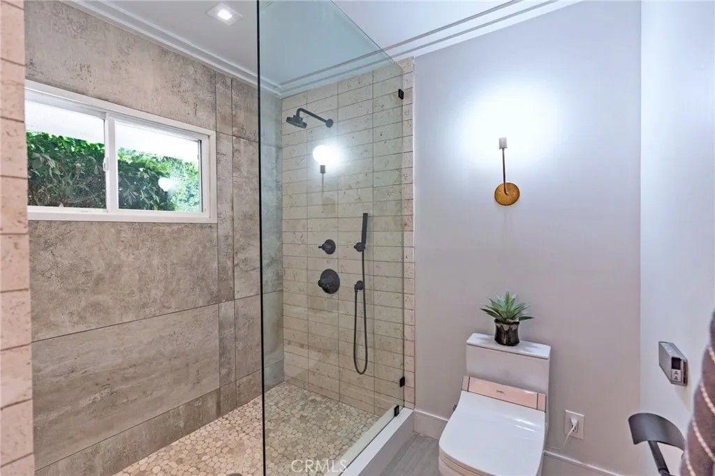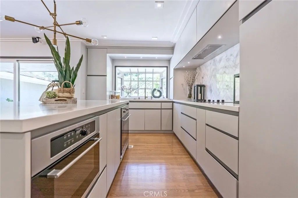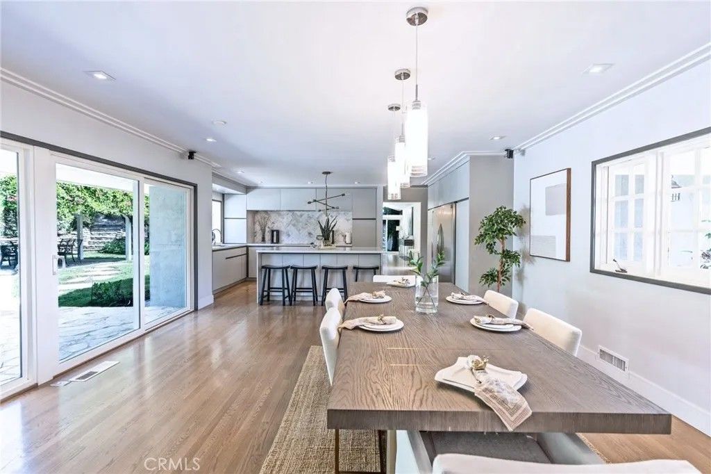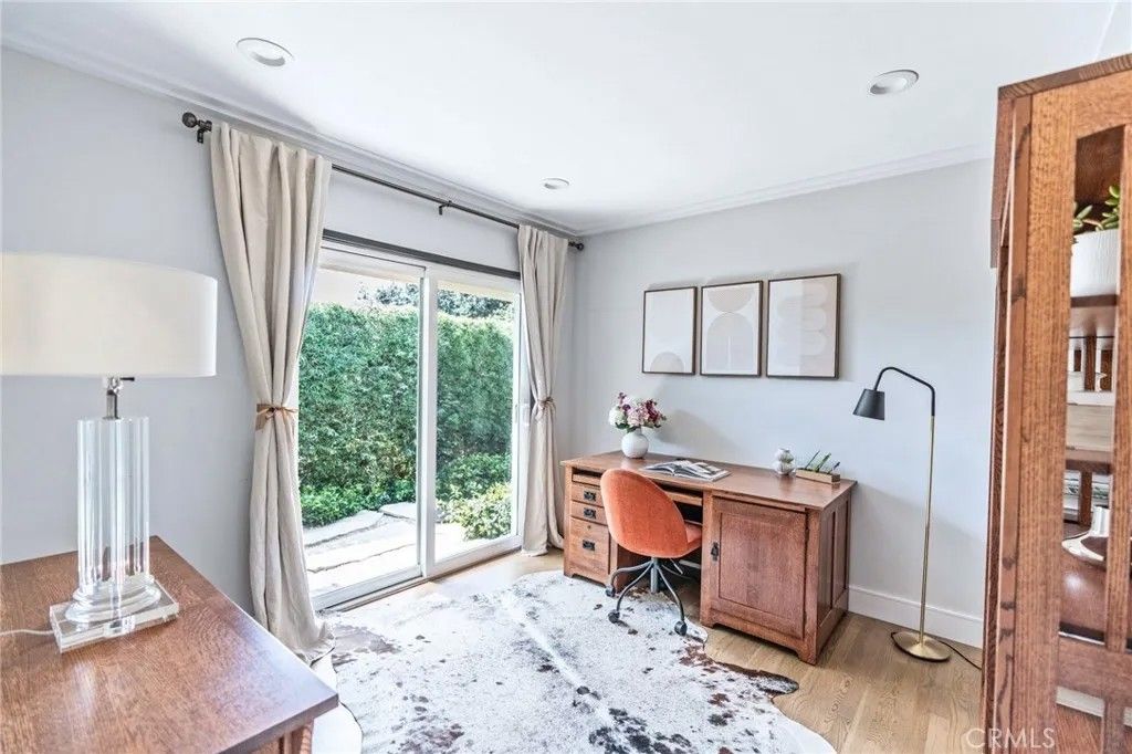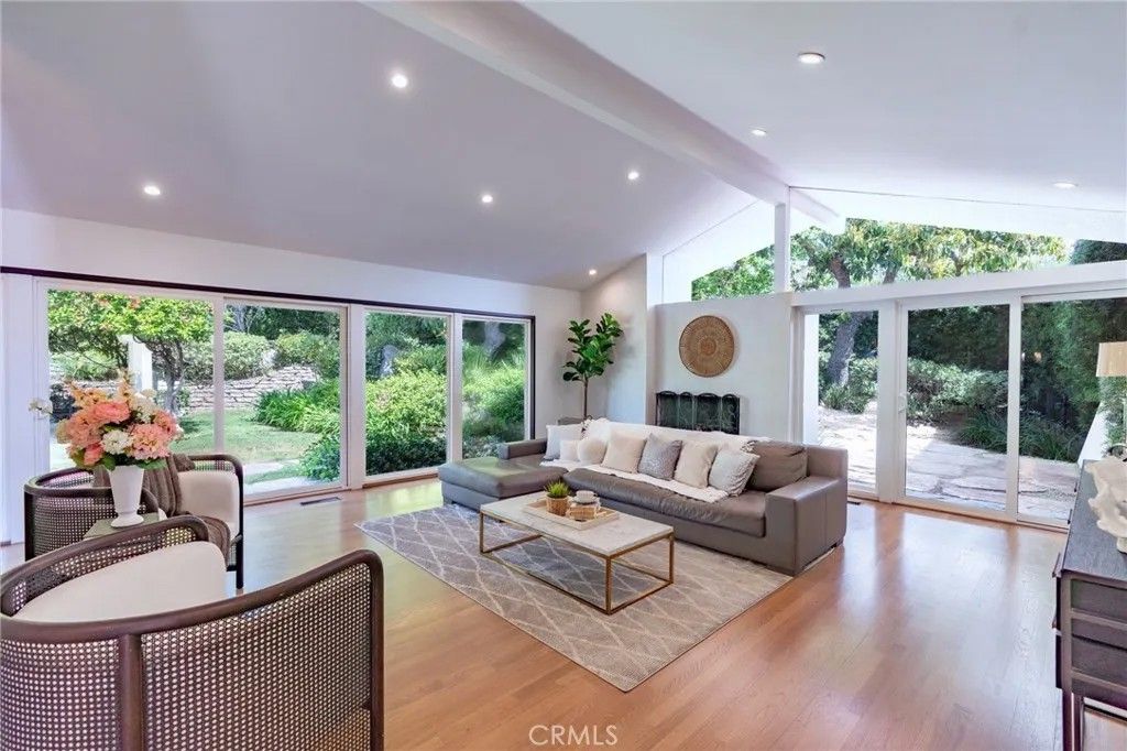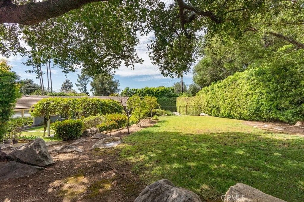 Tucked away on a serene cul-de-sac in Pasadena's coveted Eaton Canyon neighborhood, this beautifully renovated home sits on nearly half an acre of meticulously landscaped grounds offering the rare combination of total privacy and effortless indoor-outdoor living. With a custom solid-wood entry door and walls of glass that draw the lush surroundings mature trees, manicured hedges, and mountain views seamlessly inside, the home makes an immediate impression. The vaulted living room anchors the home with a dramatic concrete fireplace, while the open-concept great room flows into a well-appointed kitchen featuring stainless steel appliances, a panel-ready double refrigerator, flat-panel cabinetry, purified water, and an oversized quartz island. A formal dining area with dual wine coolers completes the space. The home offers three bedrooms, three baths, and a sun-filled office that easily serves as a fourth bedroom. The primary suite features dual vanities, a generous walk-in shower, and direct pool access. A second bedroom enjoys its own dual-sink bath. Outside, the terraced backyard is an entertainer's dream: flagstone patios, built-in BBQ, wet bar, flat lawn, fruit trees, a basketball court, and a gated pool and spa all wrapped in exceptional privacy. Additional highlights include a three-zone HVAC system, dedicated laundry room, and abundant storage throughout. Turnkey and move-in ready, with easy access to shopping, dining, and major freeways this is Pasadena living at its finest.
