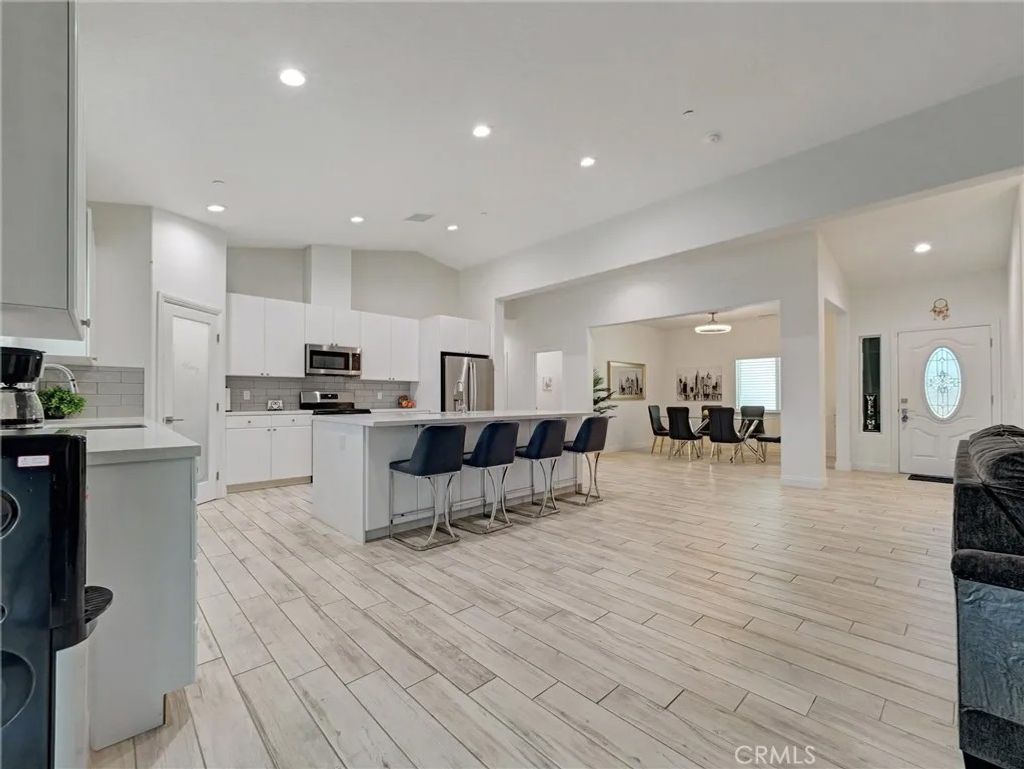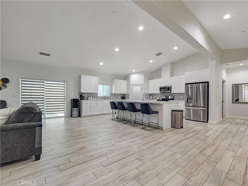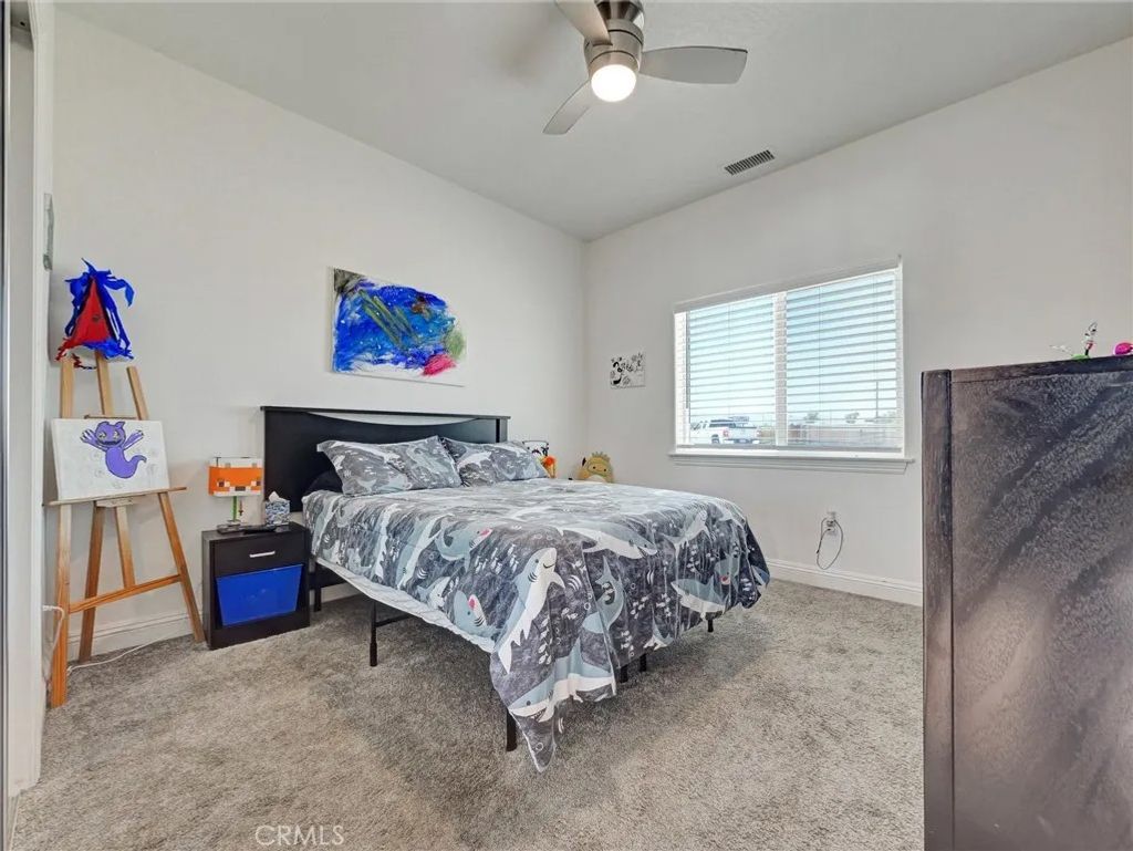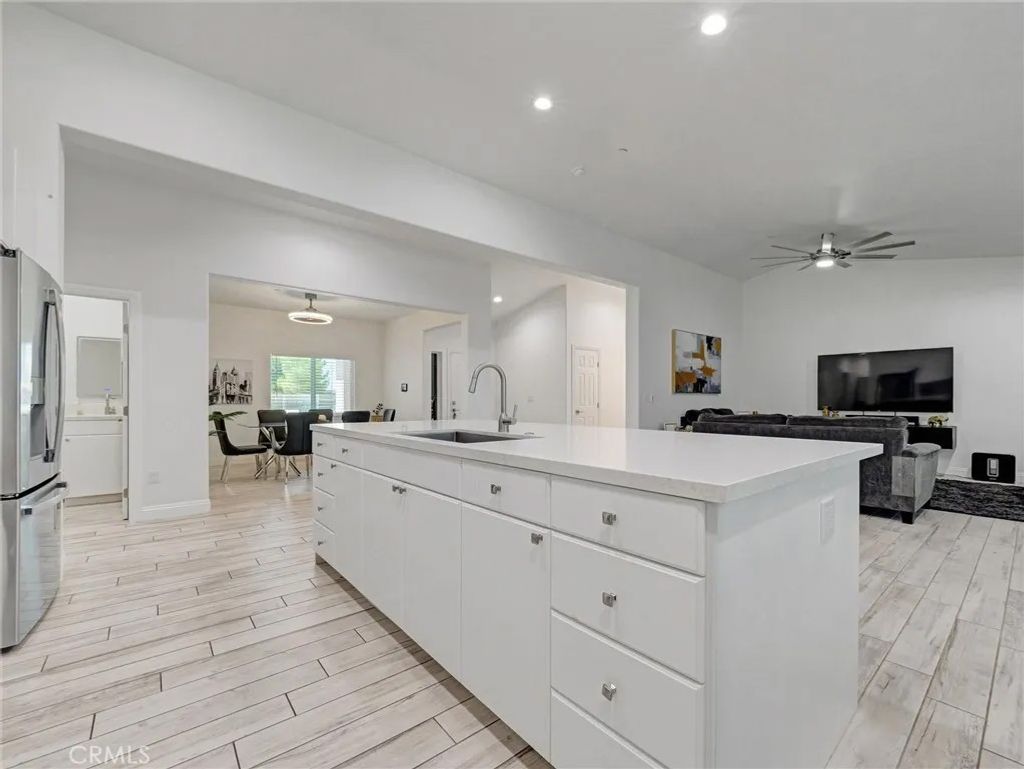Welcome Home. A beautifully crafted 2024-built home offering modern luxury, comfort, and convenienceall centrally located in one of Hesperias most desirable neighborhoods. This brand-new residence is ideally situated just minutes from the freeway, local schools, shopping centers, dining, theaters, fishing spots, and Victor Valley College. Step outside and youll immediately notice the upgraded exterior, featuring a widened driveway, extended walkway to the front door, and brand-new vinyl fencing that adds both privacy and curb appeal. Inside, an expansive open-concept floor plan welcomes you with sleek tile flooring throughout and a warm, contemporary design. The chefs kitchen is a true showstopper, boasting European-style wooden cabinets with a high-gloss lacquer finish, quartz countertops, two culinary sinks, an enormous island with bar seating, stainless steel appliances, and abundant pantry spaceperfect for cooking, entertaining, and everyday living. The living area centers around a cozy fireplace adorned with a custom stackstone facade, creating the perfect gathering space for friends and family. Retreat to the spacious master suite with vaulted ceilings, dual vanities, a walk-in closet, and a spa-like custom tiled shower with backsplash and pan. Additional highlights include an oversized laundry room with upper cabinetry, ceiling fans in every bedroom, and fully insulated garage walls for added comfort and energy efficiency. Enjoy peace of mind and lower utility bills with paid-off solar panels, a tankless water heater, and the latest energy-efficient construction technologies. Dont miss the opportunity to own this exceptional new home in a prime location.