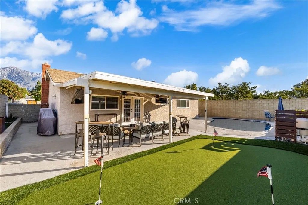 Tucked at the end of a quiet cul-de-sac, this charming 3-bedroom, 2-bath home offers the perfect blend of relaxation and recreation in a great Rancho Cucamonga neighborhood. Tucked at the end of a quiet cul-de-sac, this charming 3-bedroom, 2-bath home offers the perfect blend of relaxation and recreation in a great, family-friendly Rancho Cucamonga neighborhood. Inside, youll find a bright and inviting layout with natural light flowing through the living spaces. The spacious kitchen features updated cabinetry, ample counter space, and room for everyone to gather, ideal for home-cooked meals, morning coffee, or holiday baking. The cozy family room, complete with a beautiful fireplace, creates a warm and welcoming spot for movie nights or relaxing with loved ones. Down the hall, the bedrooms offer comfortable retreats, and the primary suite provides a peaceful space to unwind at the end of the day. Step outside to your private backyard paradise, complete with a sparkling pool, covered patio, and your very own putting green for a little friendly competition. With RV parking on the side, theres plenty of space for all your toys and extra storage too. Located close to Terra Vista Town Center, parks, and award-winning schools, this home checks all the boxes for comfort and convenience. A fun and functional home full of charm with a backyard built for making memories. Come see why life on Balsa Street feels just right!