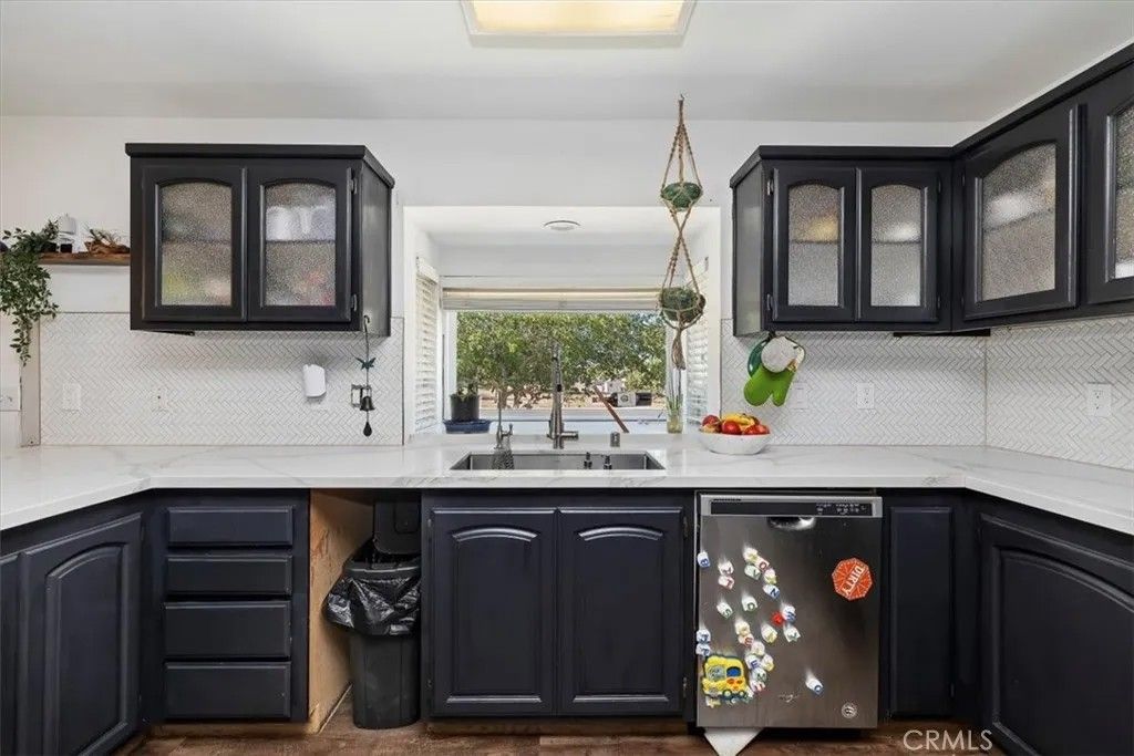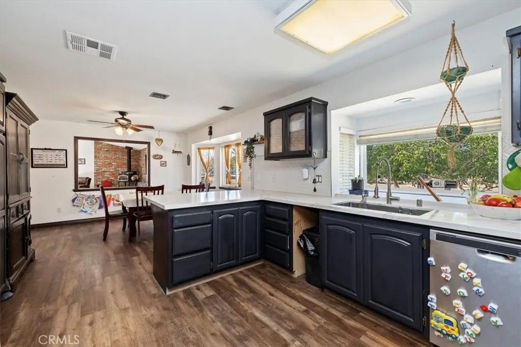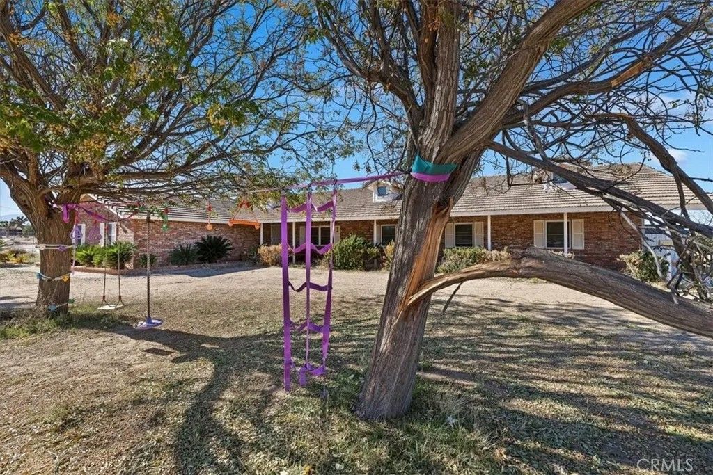 Welcome to this stunning ranch-style home, perfectly situated on a sprawling 98,010 sq ft lot with breathtaking desert mountain views. This spacious 4-bedroom, 2-bath property offers 2,388 sq ft of open living space, featuring beautiful laminate flooring throughout. The modern kitchen boasts quartz countertops, a chic herringbone tiled backsplash, a Puragain whole-house water filtration system, and stainless steel appliancesideal for gatherings and culinary creations. The inviting family room includes a cozy wood-burning stove, perfect for relaxing evenings. The large main bedroom offers plenty of space and an attached spa-like bathroom with a separate soaking tub, tiled shower, and dual vanity, creating a luxurious retreat. The three-car garage has been transformed into a versatile mancave, providing plenty of space for hobbies or entertainment. The expansive driveway can comfortably accommodate multiple RVs, boats, or off-road toys, with direct access to dirt paths for outdoor adventures. Enjoy ample room to add a pool, an ADU, or customized upgrades. The desert landscape creates a picturesque backdrop, offering tranquility and stunning mountain vistas. Don't miss your chance to own this exceptional propertyschedule a visit and make this home yours today!