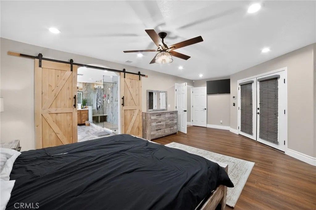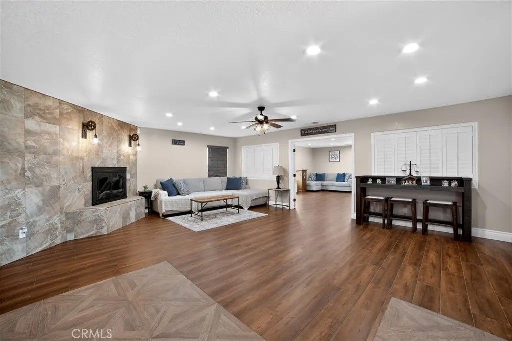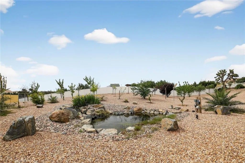 Welcome to modern ranch-style living at its finest. This expansive single-story home offers 4 bedrooms and 2.5 bathrooms across approximately 3,921 square feet of living space, all situated on an impressive 1.9-acre lot. The property features a spacious 3-car garage equipped with custom cabinetry, two additional refrigerators for extra storage, and a mini-split system. Inside, youll find three walk-in closets, a well-appointed laundry room with custom cabinets and a sink, and three central A/C units for year-round comfort. The home is topped with high-quality roof tile and connected to public gas service, recently installed sprinkler system along with low voltage mood lighting along with surround sound under the patio. Outdoors, the property truly shines with approximately 23,000 square feet of newly installed concreteideal for parking multiple vehicles, RVs, or recreational equipment. Enjoy serene landscaping with waterfall features, a relaxing backyard pond, and over 30 fruit trees. A large natural grass area, chicken coop, and fully fenced perimeter with two automated gates provide both functionality and privacy. Additional highlights include upgraded bathrooms and a modernized electrical system throughout, making this property a perfect blend of comfort, space, and convenience.
