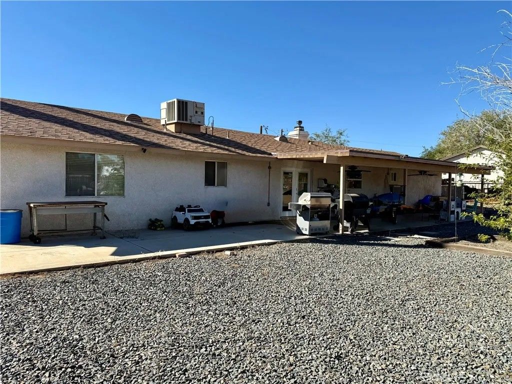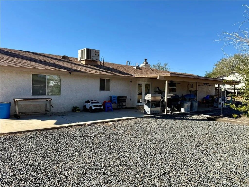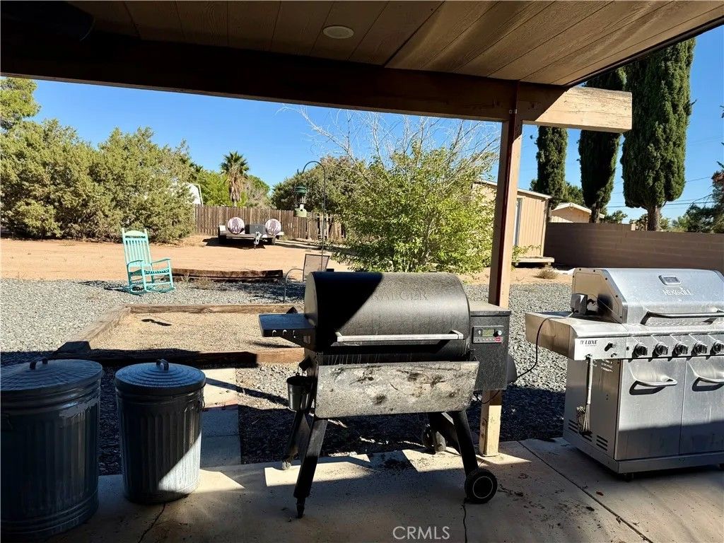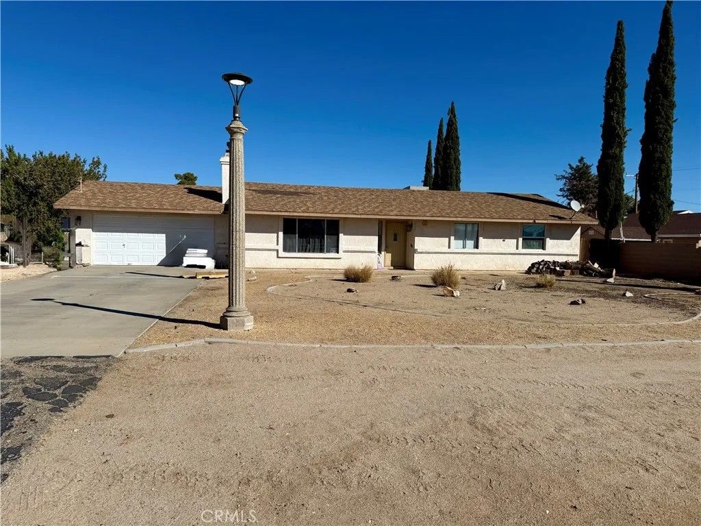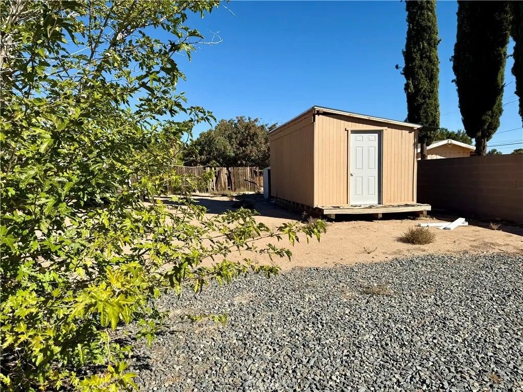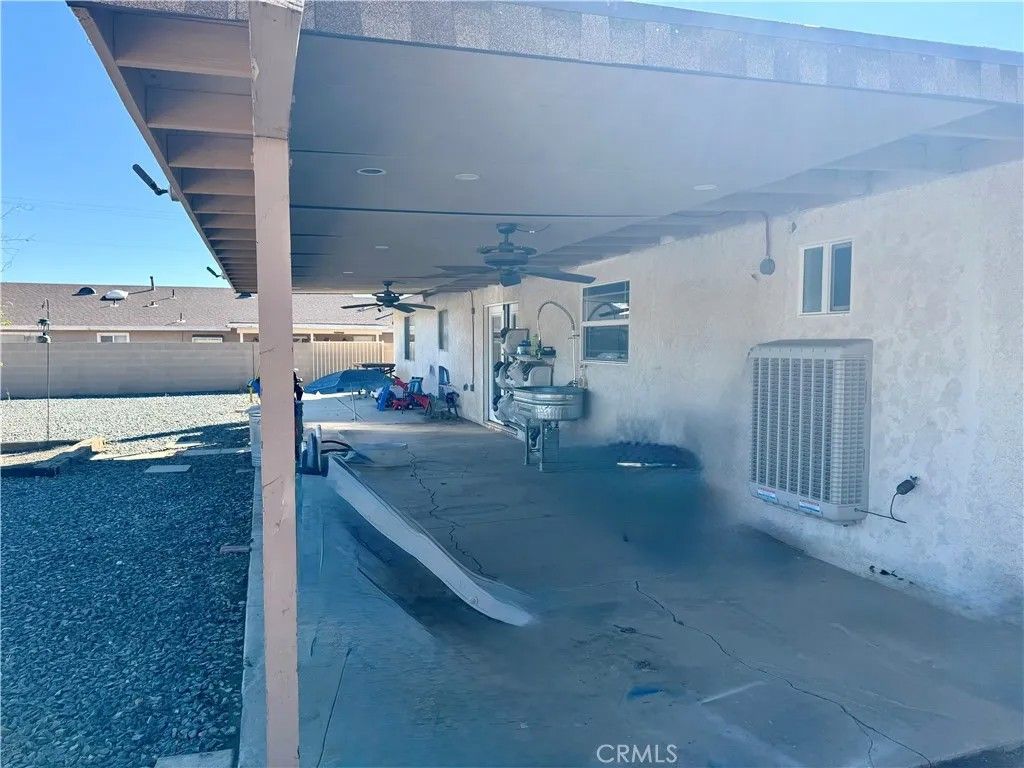 Beautiful Hesperia Home recent upgrades 3 bedroom 2 baths, kitchen with a lot of newer cabinets, coriander counter tops, stainless steel appliances microwave, stove, dishwasher, inside laundry room newer washer and dryer included tile floors newer inside paint, nice living room with a fireplace, French door from dining area to outside cover patio a lot of concrete, central air and heat plus a widow evaporative cooler, rock landscaped, nice shed for storage fenced back yard
