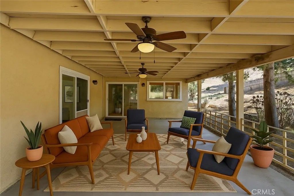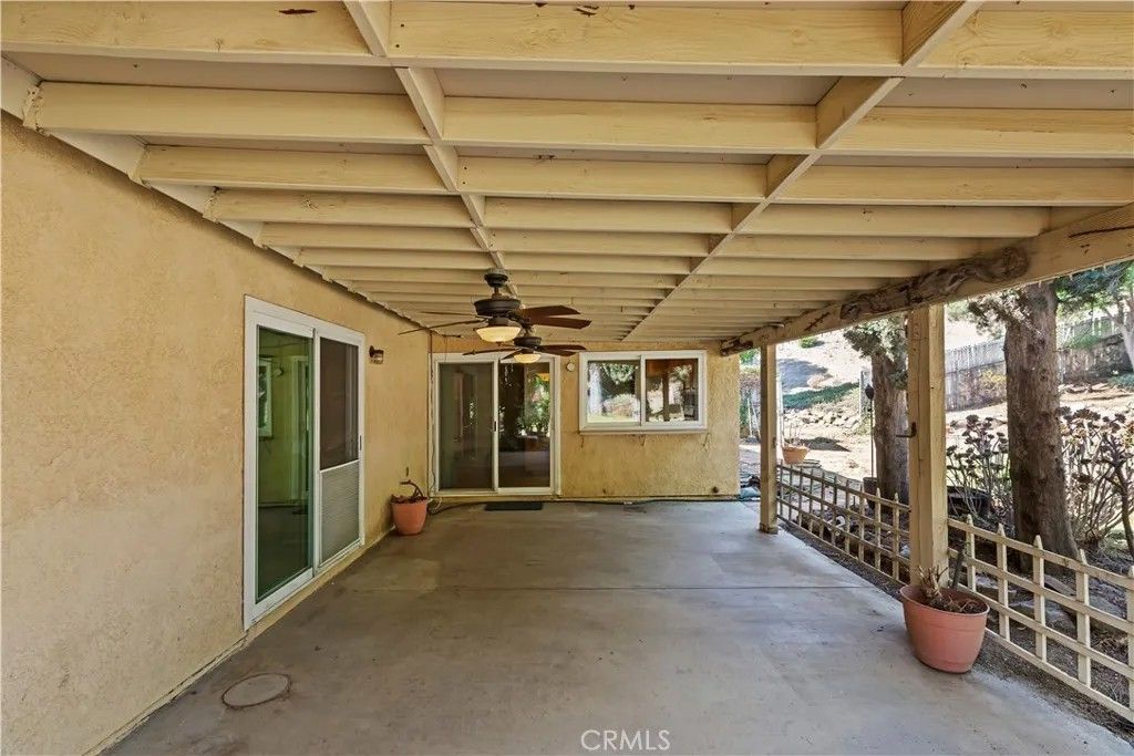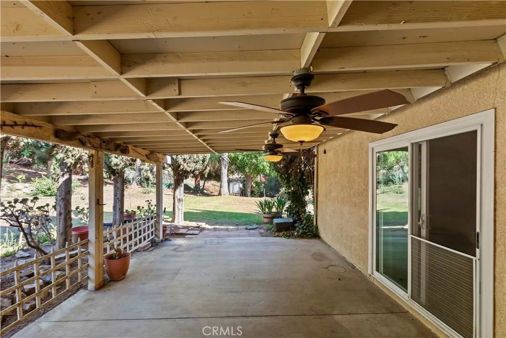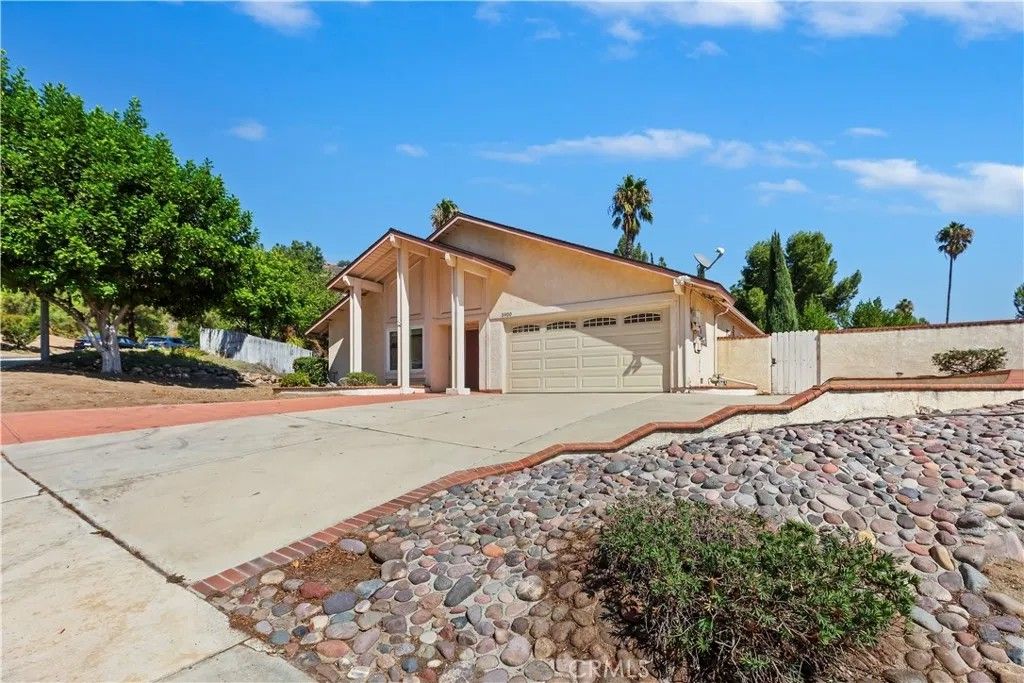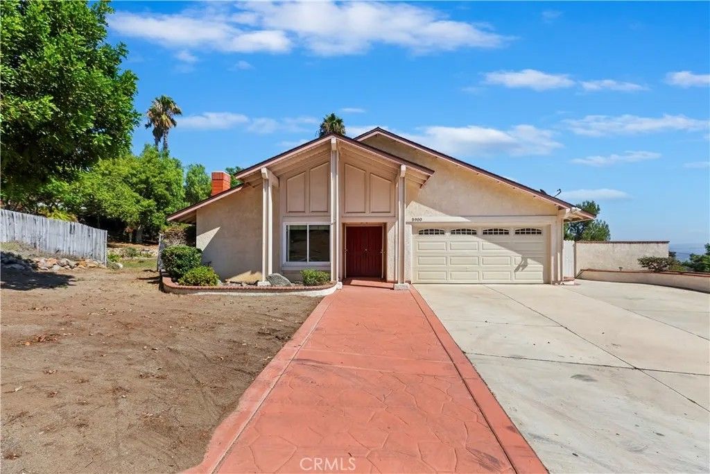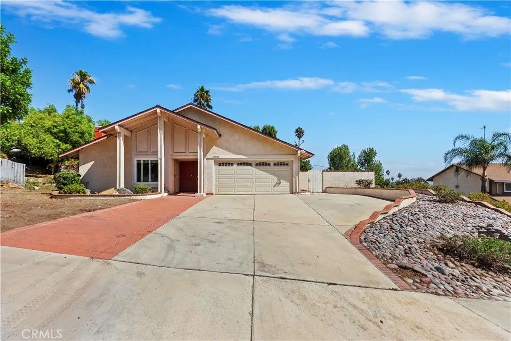 Welcome to 5900 Winncliff Lane, a charming single-story ranch-style home located on a quiet cul-de-sac in a well-maintained neighborhood of estate properties on large lots in Jurupa Valley. Enjoy wide-open spaces and peaceful surroundings while being just minutes from great shopping, dining, and freeway access. This inviting home features updated double-pane vinyl windows, freshly shampooed carpets, and has been professionally cleaned and is move-in ready. Inside, youll find vaulted wood-beam ceilings, a warm brick fireplace, and abundant natural light. The kitchen offers granite countertops, ample cabinetry, and a large window overlooking the backyard, while the built-in office with rich wood shelving makes for a perfect workspace or library. Step outside to a fully covered concrete patio with a pergola, ideal for relaxing or entertaining. The backyard is private and expansive, with a gentle slope away from the property that enhances both privacy and scenic appeal. Theres ample space for a pool or garden, a large storage shed, and a wide side gate with possible RV parking for added convenience. Combining comfort, functionality, and breathtaking mountain, valley, and city-light views, this ranch-style retreat offers an exceptional opportunity in one of Jurupa Valleys most desirable settings.