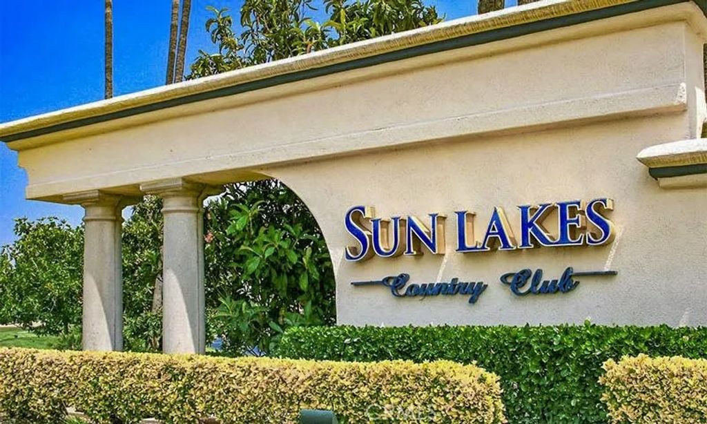 PRICE REDUCTION Now is the time to take advantage of this price reduction. This home has upgrades galore, starting with 18 porcelain tile in the entry, hall, kitchen, bath and laundry, with upgrade carpets, professionally installed plantation shutters, ceiling fans throughout, quartz countertops and splash guards, and white Euro cabinets, new garbage disposal, new water heater and circulation pump. Your entry has a professionally designed front courtyard where you can enjoy your morning coffee and mountain views, and the back yard has a full-length covered patio with outdoor fan and a professionally installed bar and barbeque set, which you can enjoy entertaining your friends and family. In addition, the owner has had a new roof installed and has had the eves, trim and gutters recently professionally painted. Bathrooms have been modernized with new mirrors, back splashes, new lighting and new sink hardware. With your favorite beverage, set back and enjoy the view of Mt. San Gorgonio from your front courtyard. When youre finished relaxing, come and play the 18-hole professional course here at Sun Lakes and partake in the enjoyment of playing on a well maintained and picturesque golf course. If this course seems to be challenging then play the Executive 18-hole golf course that offers similar breathtaking views and challenges. If golf isnt your bag then how about playing tennis on the renovated tennis courts near the South Club house. If tennis isnt your interest, how about playing pickleball on the renovated pickleball courts near the North Club house. If tennis or pickleball isnt your cup of tea try relaxing at the large pool and spas located at the main club house, north club house, or the in-door pool and spa at the South Club house. Theres a saying here at Sun Lakes Country Club if youre bored, its your fault because if you have a interest, there probably is a club you can join. Having tried out the different facilities ranging from golf, tennis, pickleball, bocce ball, weight rooms, hobby rooms, entertainment center, exquisite on-site restaurant and sand wedge sandwich shop, and now you need to relax This model (Sunflower) has a 2-car expanded garage (for your golf cart storage). Even more exciting, Sun Lakes doesnt have any Melo Ross as does all new construction in Banning and Beaumont areas!