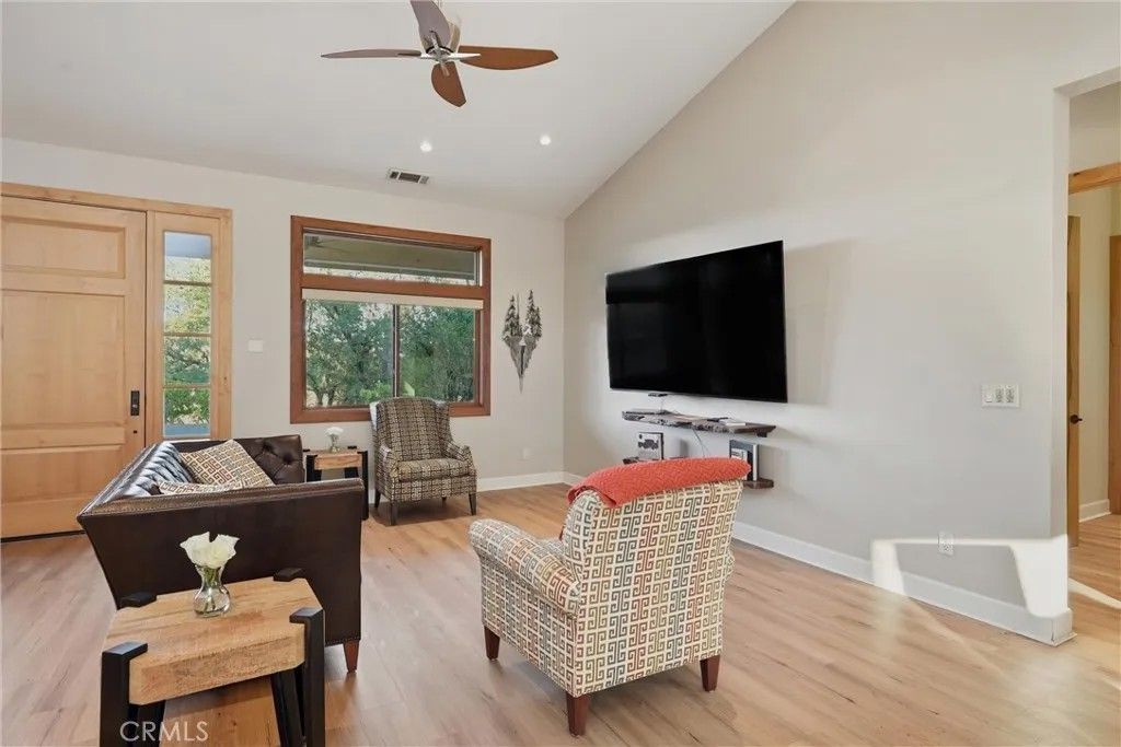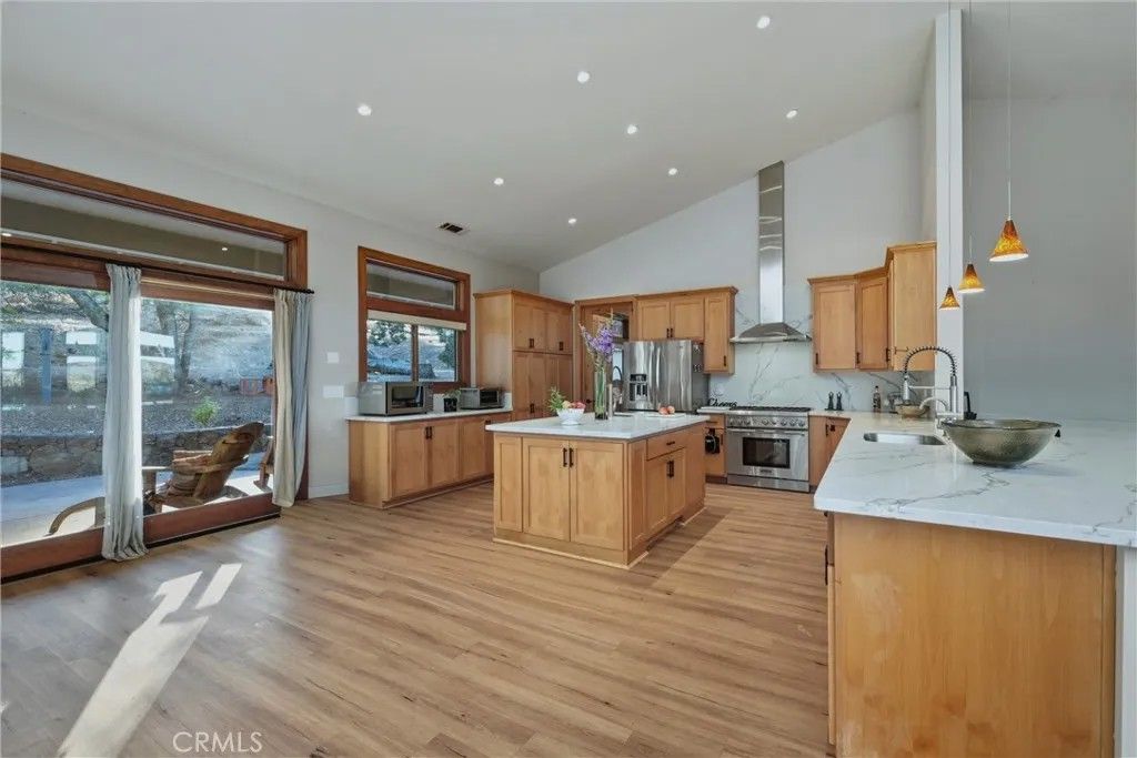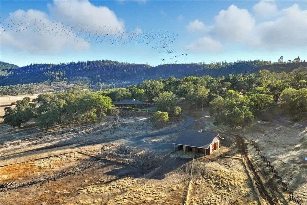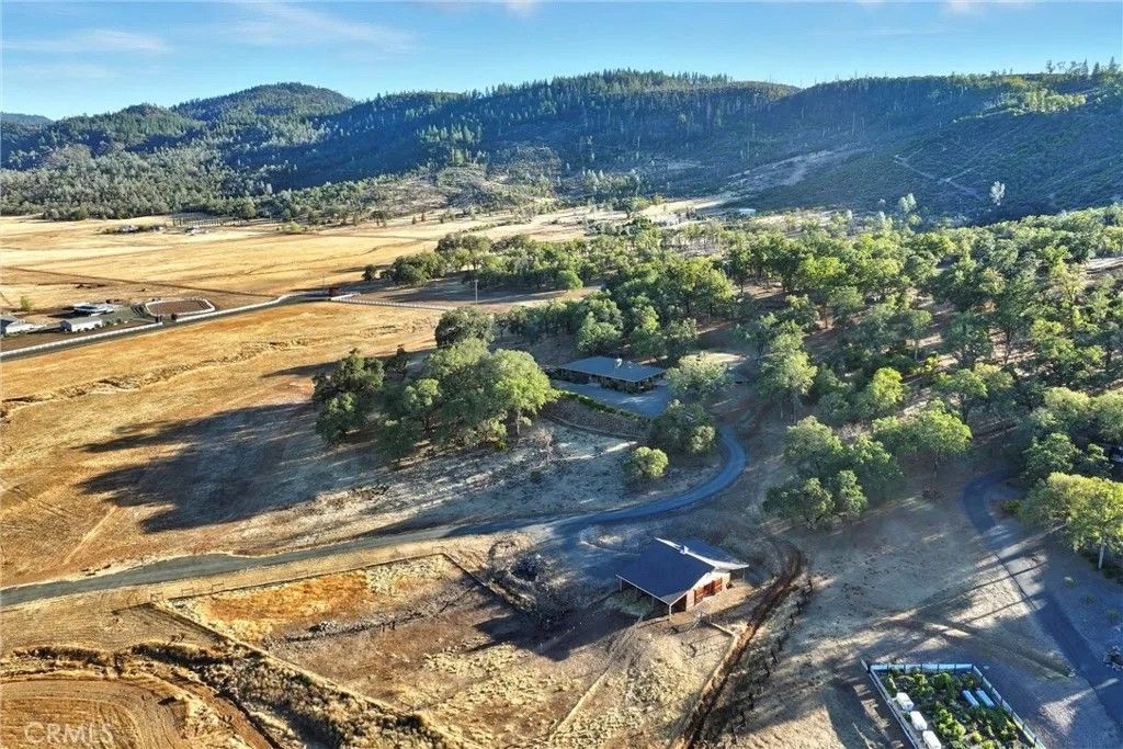 Welcome to this stunning single-level modern stucco home, perfectly situated on 23.57 acres of serene land adorned w/beautiful oak trees & breathtaking meadow views. This exceptional property offers a harmonious blend of contemporary design & natural beauty, creating an ideal sanctuary for relaxation & enjoyment. As you enter, youll be greeted by a spacious open floor plan accentuated by soaring ceilings & elegant heated vinyl plank flooring. The integrated chef's kitchen is a culinary dream, featuring a sleek European-style hood, & an impressive center island w/built-in seating, wireless charging, & a wet sink. The large bar counter, adorned w/stylish pendant lighting. Adjacent to the kitchen, the dining room provides a formal space for meals, showcasing custom lighting & stunning views through slider doors that lead to the expansive private backyard. The luxurious main bedroom suite boasts 10' ceilings, a large slider/picture window door that opens to the side yard, & an exquisite spa-style bath. Enjoy the sunny walk-in custom tile shower, dual sink vanity, & a private toilet room, along with a spacious walk-in closet. Two additional bedrooms are located on the opposite side of the home, each with slider doors. These bedrooms share a hall bath with dual sink areas & a custom tiled tub/shower. The interior laundry center is thoughtfully designed w/a washer, dryer, built-in linen closet, & sink. The property also boasts a 32-panel solar system w/two Tesla Power Wall 3s, providing home backup. Outdoor living is a highlight of this estate, featuring sprawling wrap-around patios & walkways that extend around the entire home, offering ample space for relaxation and gatherings. The property includes a 3.5-acre fenced area (no-climb, 6-foot fencing) with walking paths & an enclosed chicken coop. Additionally, youll find a fully finished (1,200sqft) de. garage w/ample parking around the home. The lower portion of the estate features a 1,700 square foot Barn Pro's barn equipped w/3 horse stalls, a tack room, & a lg open main room w/power & water. A spiral staircase leads to the upper hayloft. The barn also includes a carport for ranch vehicle storage & offers a turnkey space for horses/animals, complete with cross-fenced lower pen areas for grazing & added protection. Located in the upscale Black Oak Hill Estates community in Lake County, CA, this property is just 1 mile from Middletown and only 16 miles from the Calistoga and Napa County area.